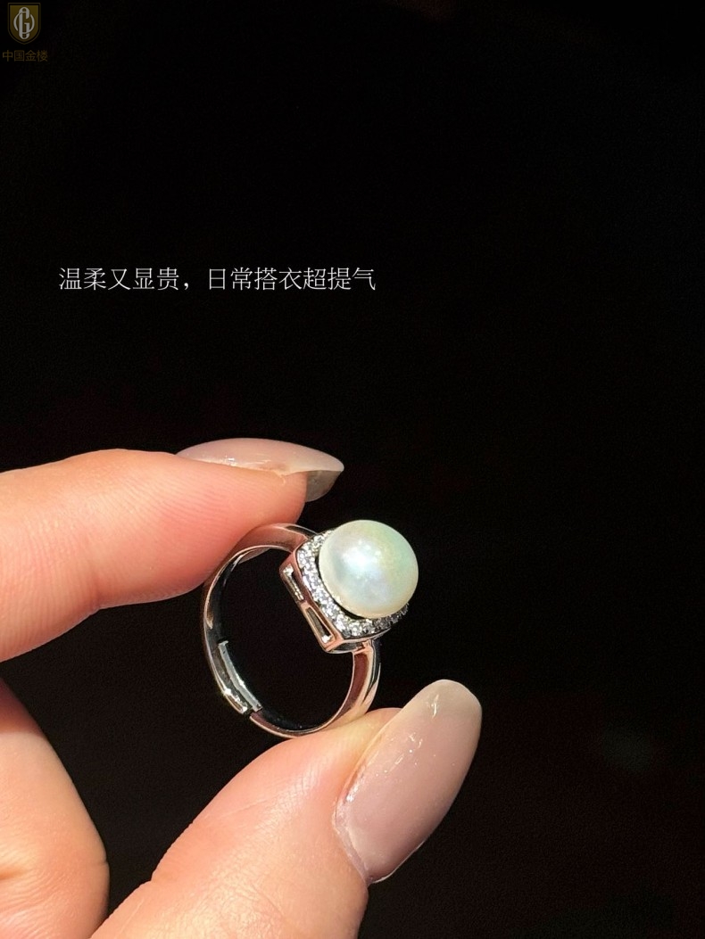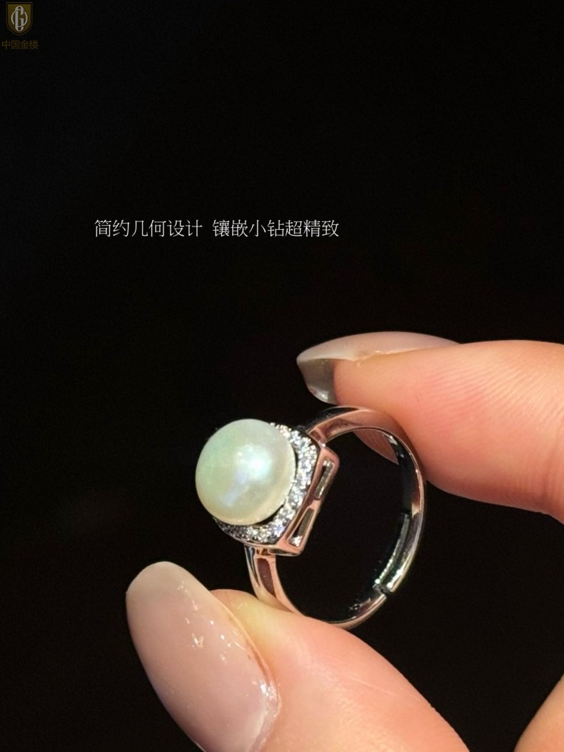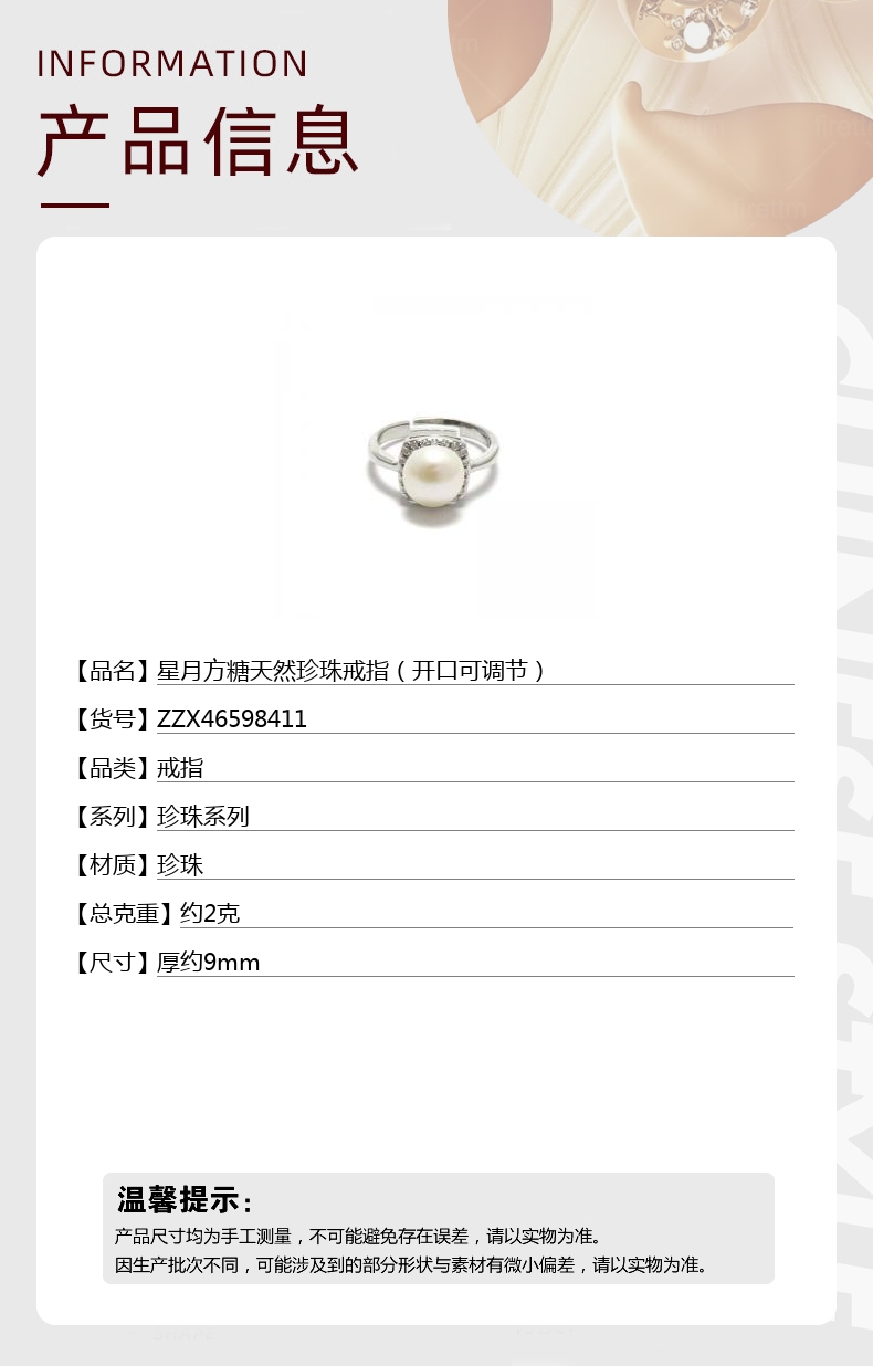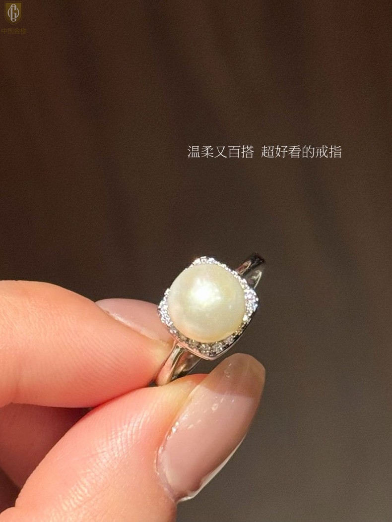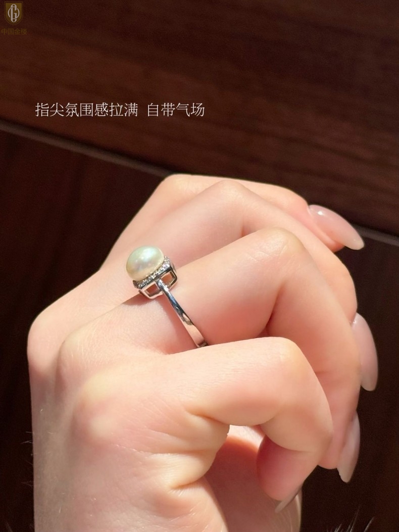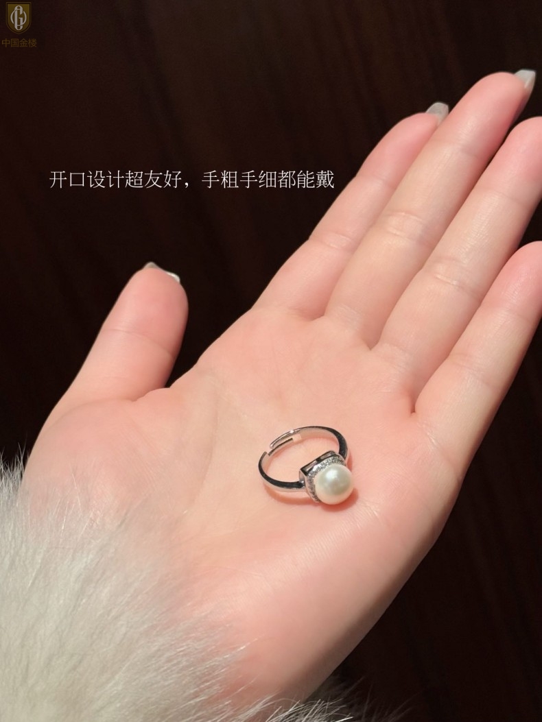 【品名】中国金楼星月方糖天然珍珠戒指(开口可调节)