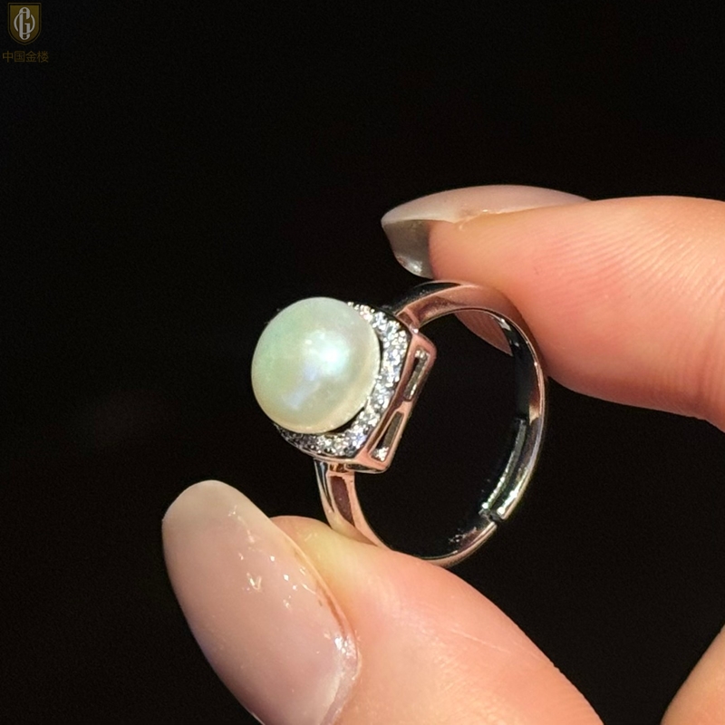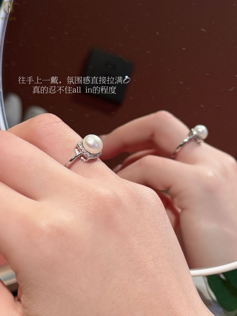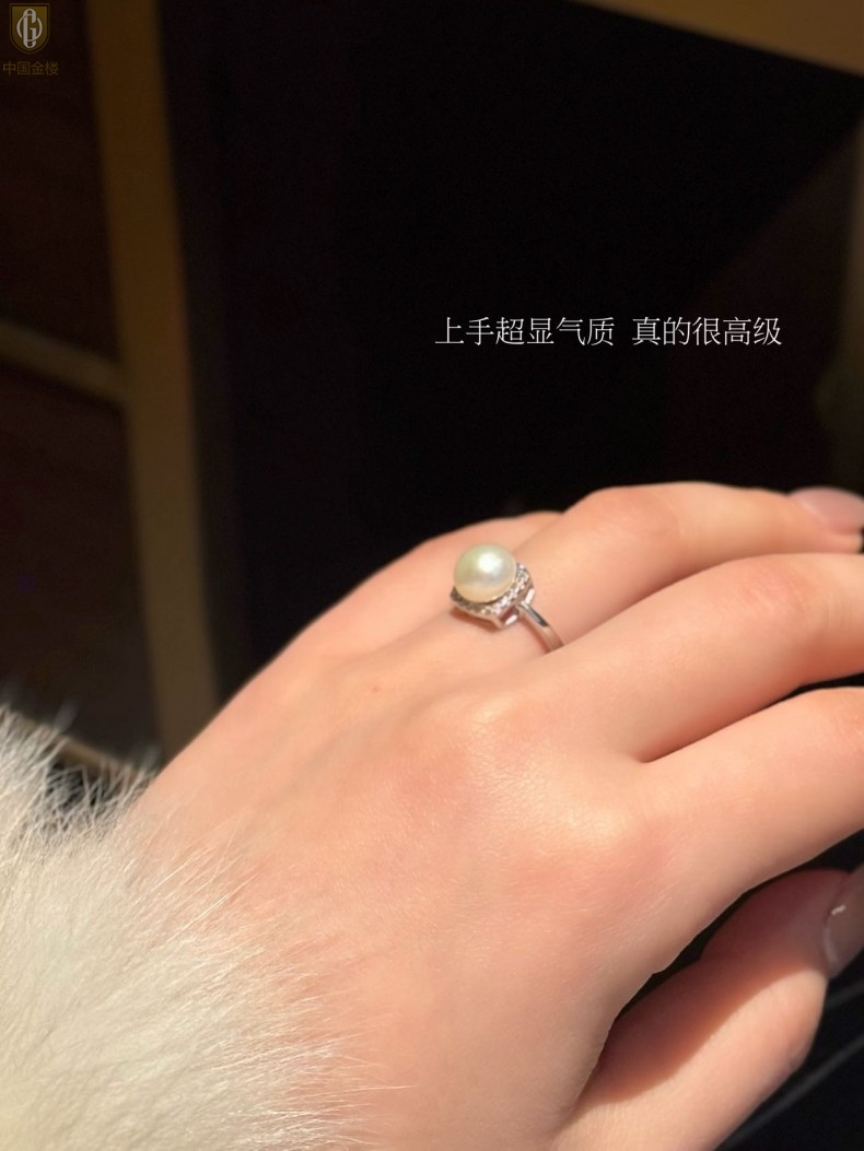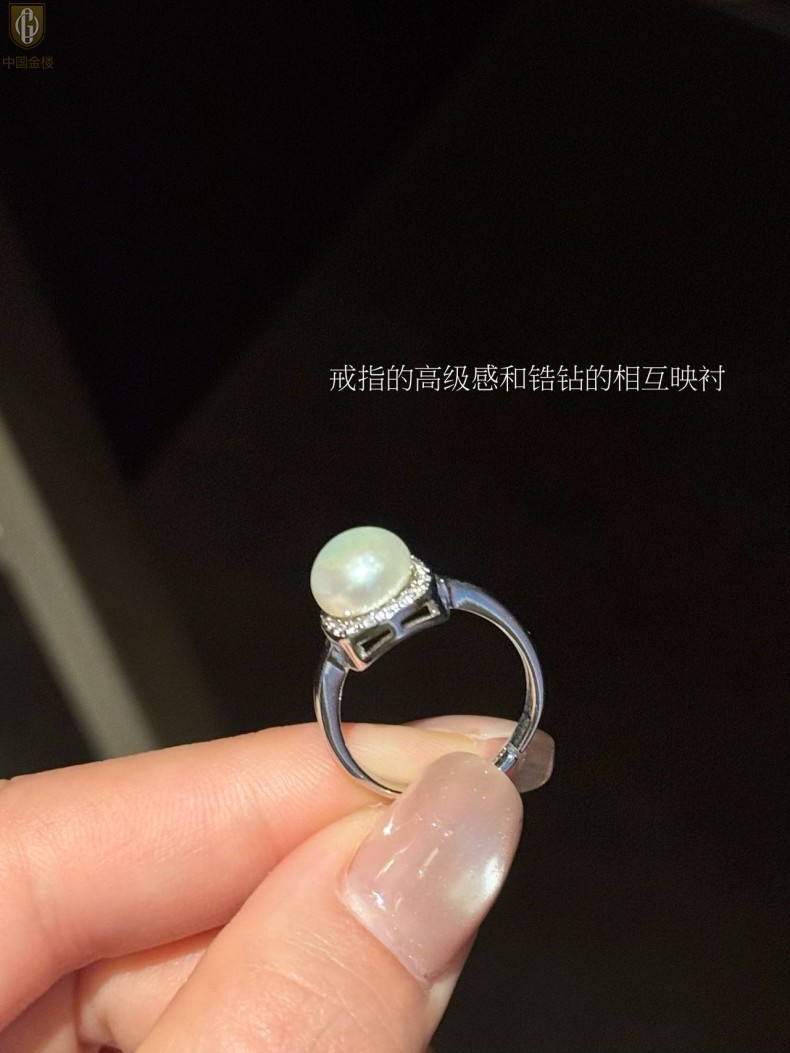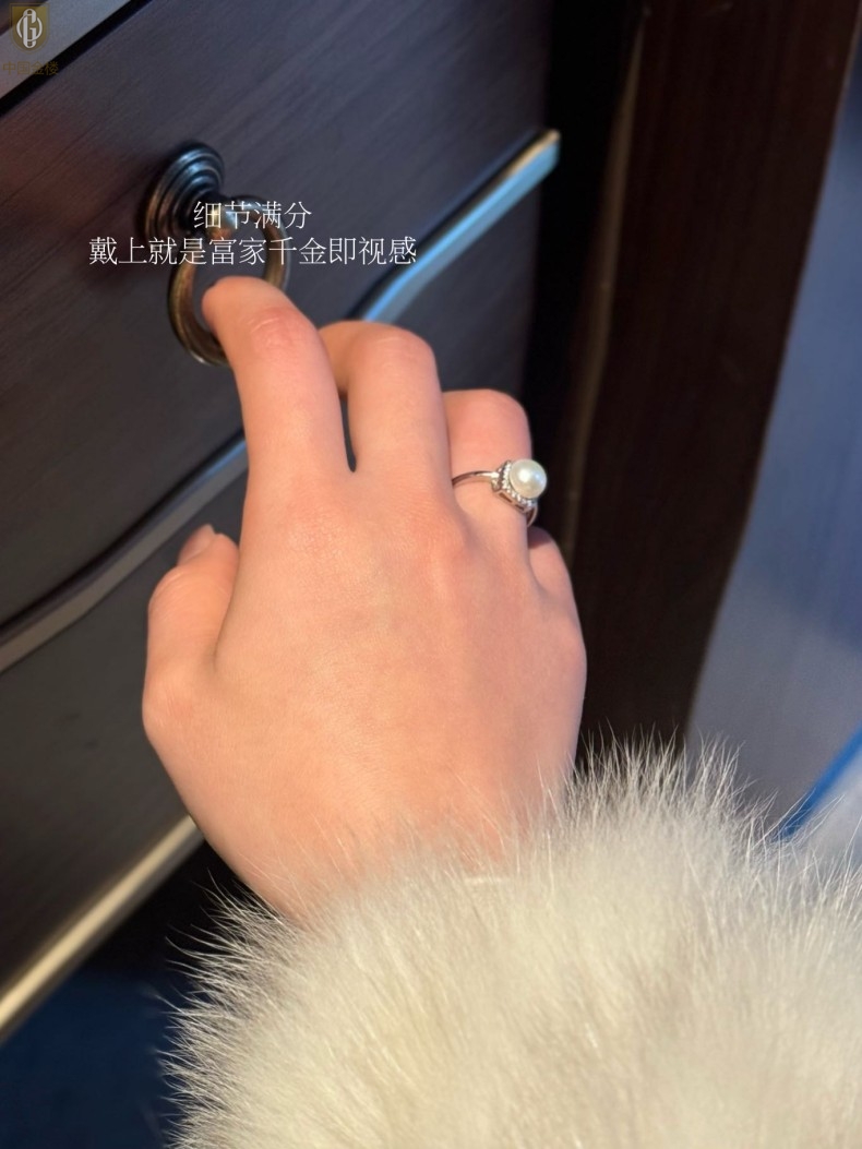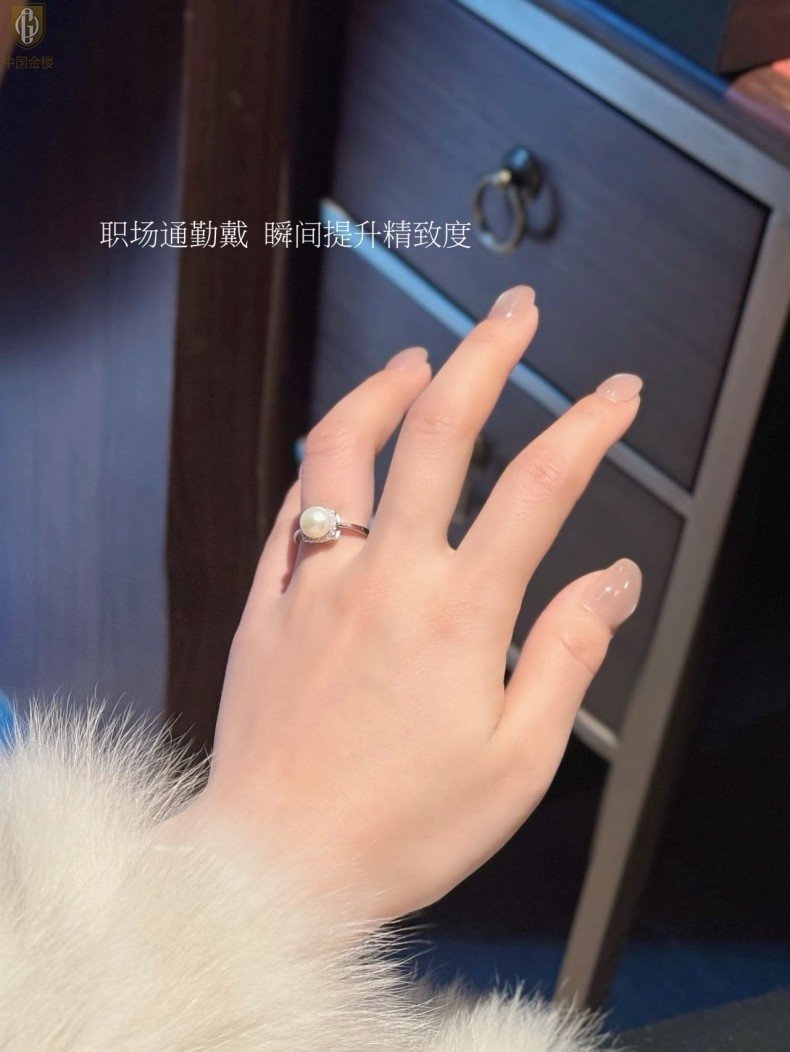 【品名】中国金楼星月方糖天然珍珠戒指(开口可调节)