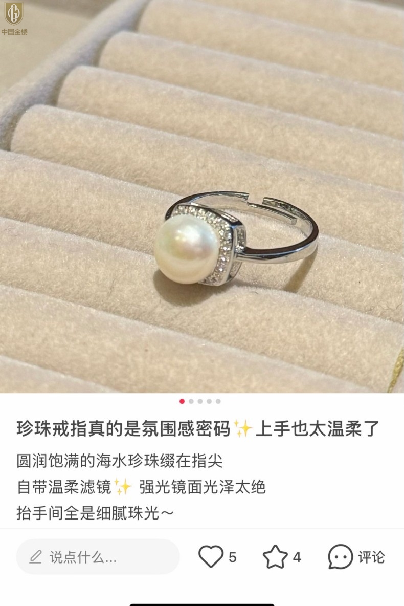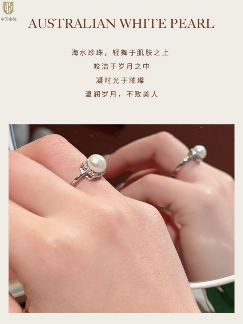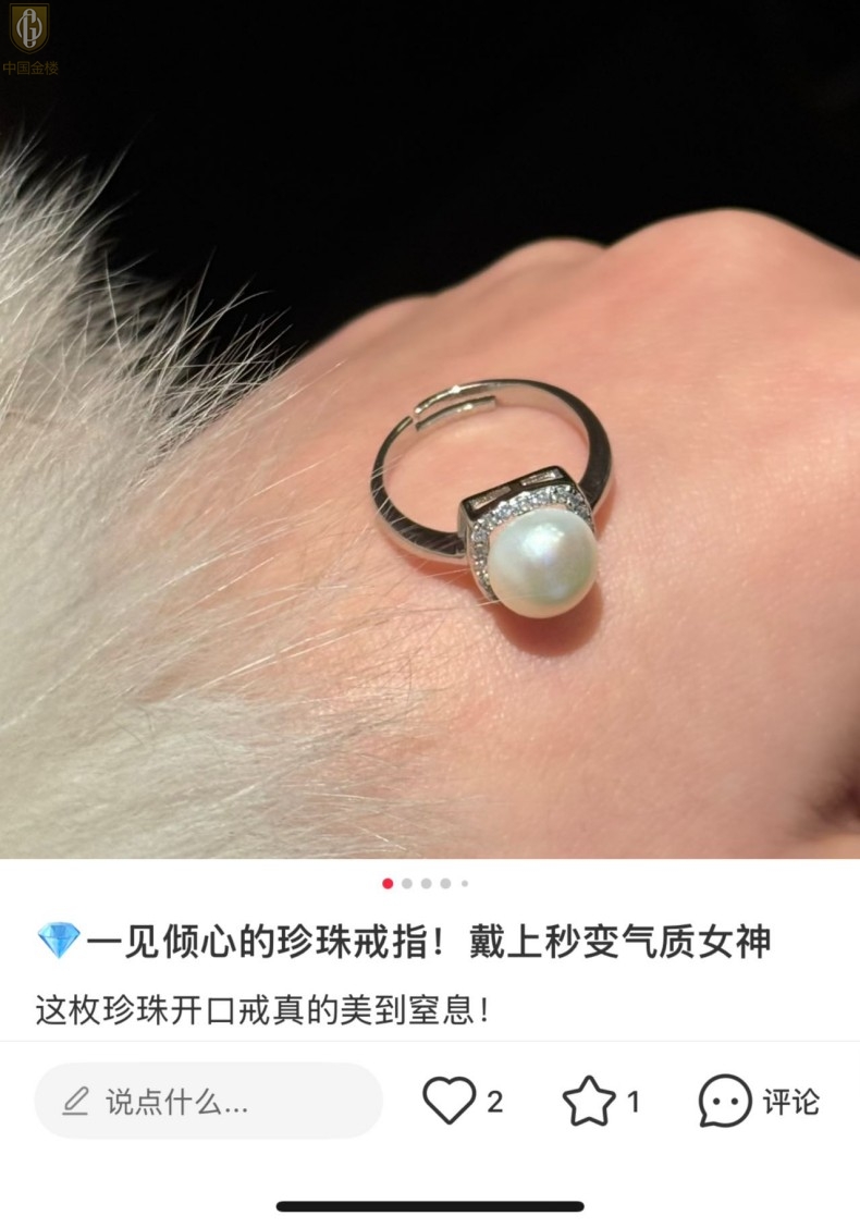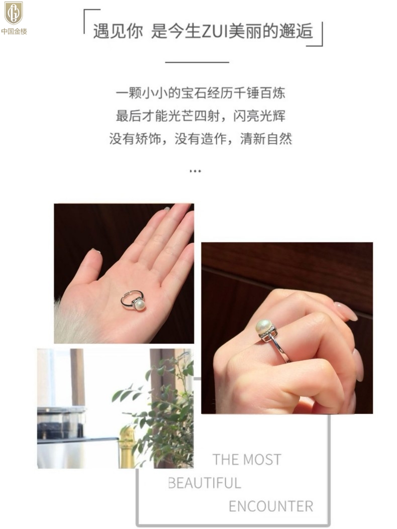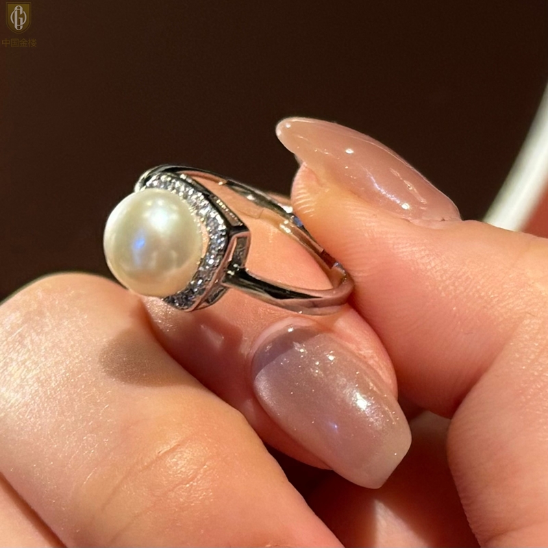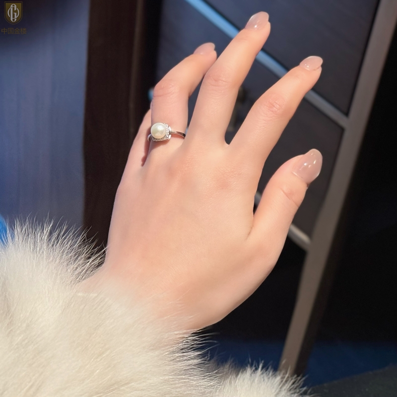 【品名】中国金楼星月方糖天然珍珠戒指(开口可调节)