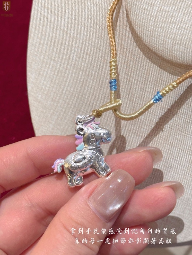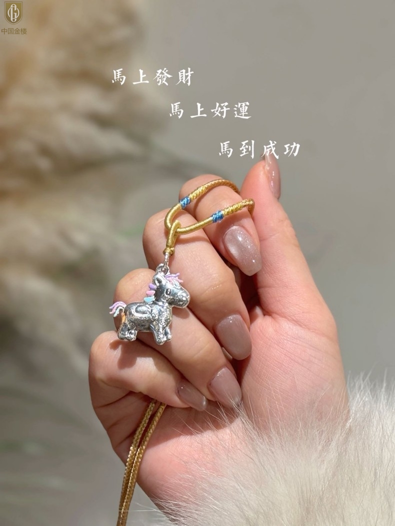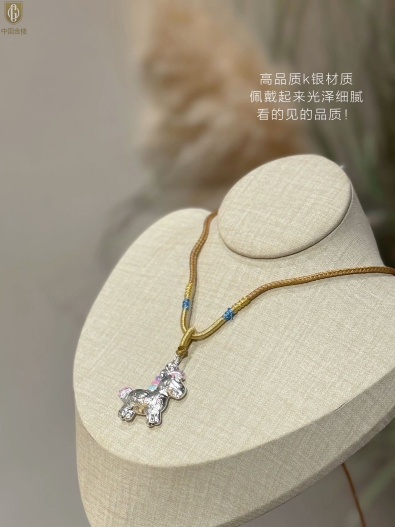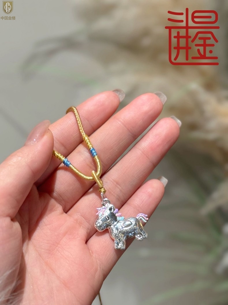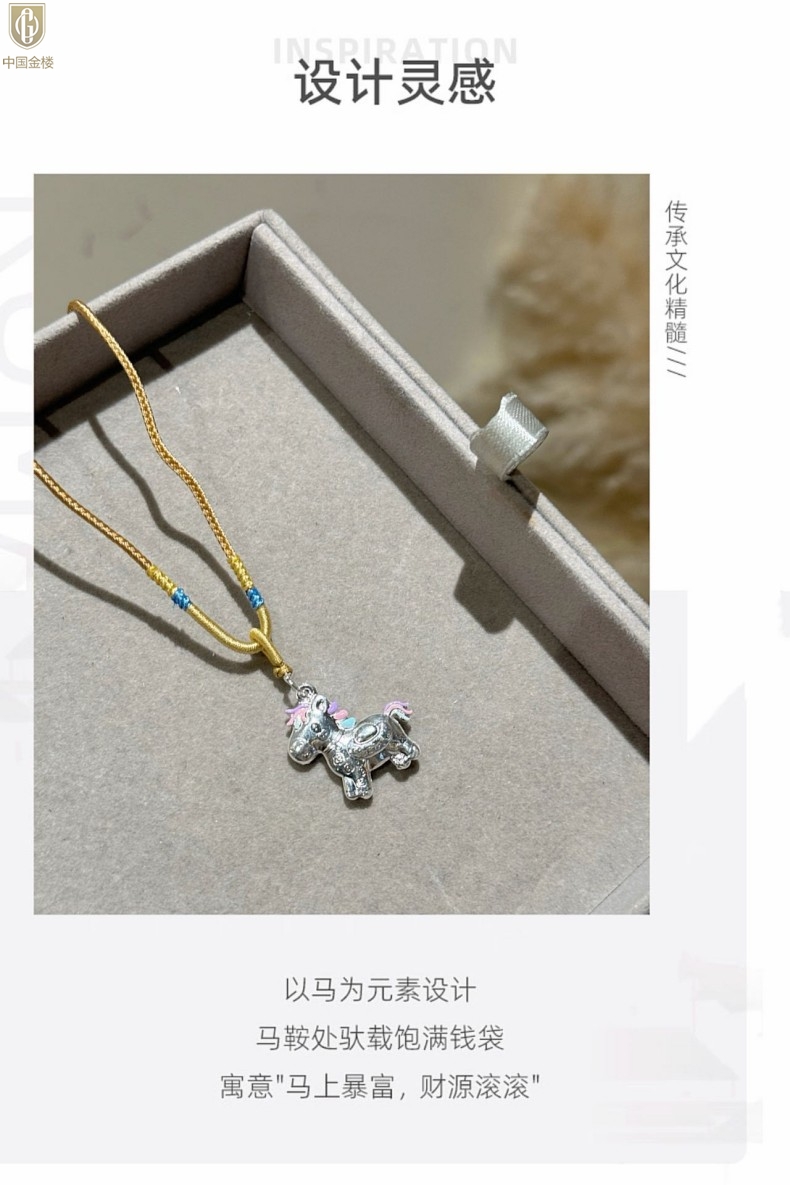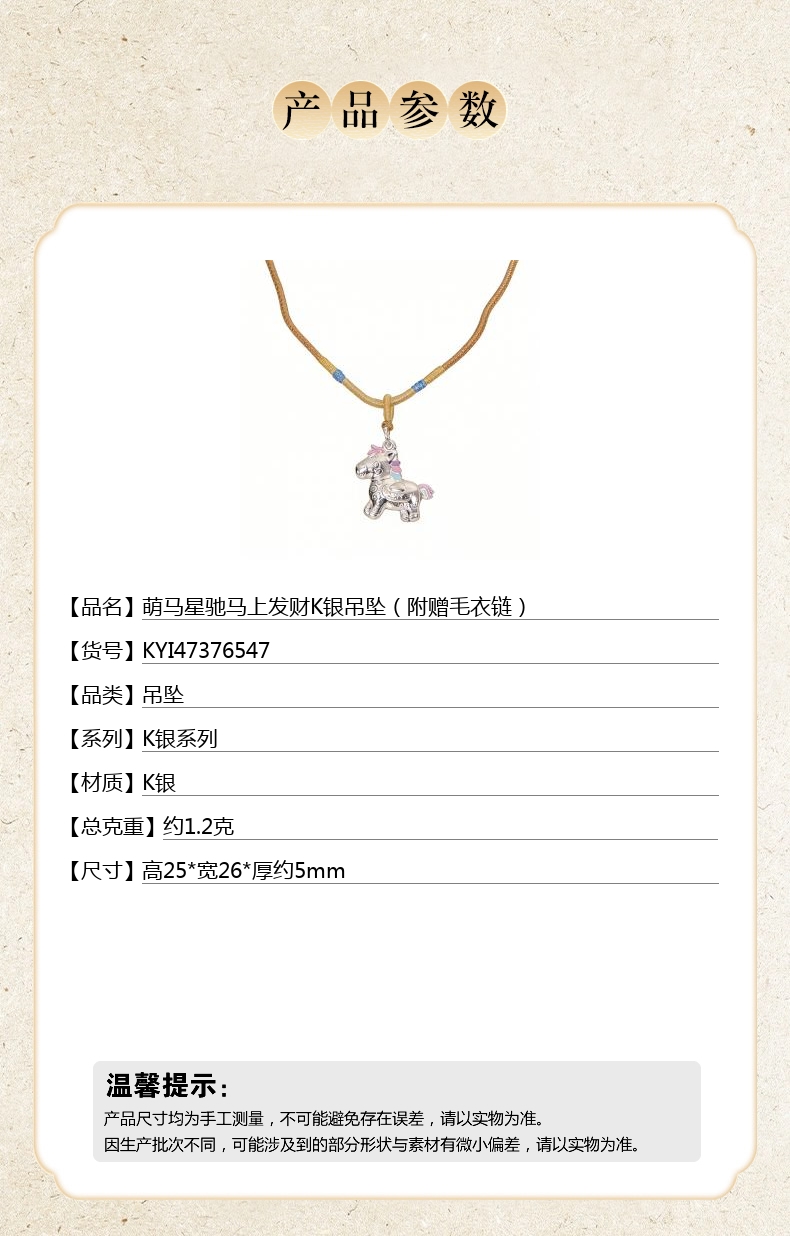 【品名】中国金楼萌马星驰马上发财K银吊坠(附赠毛衣链)