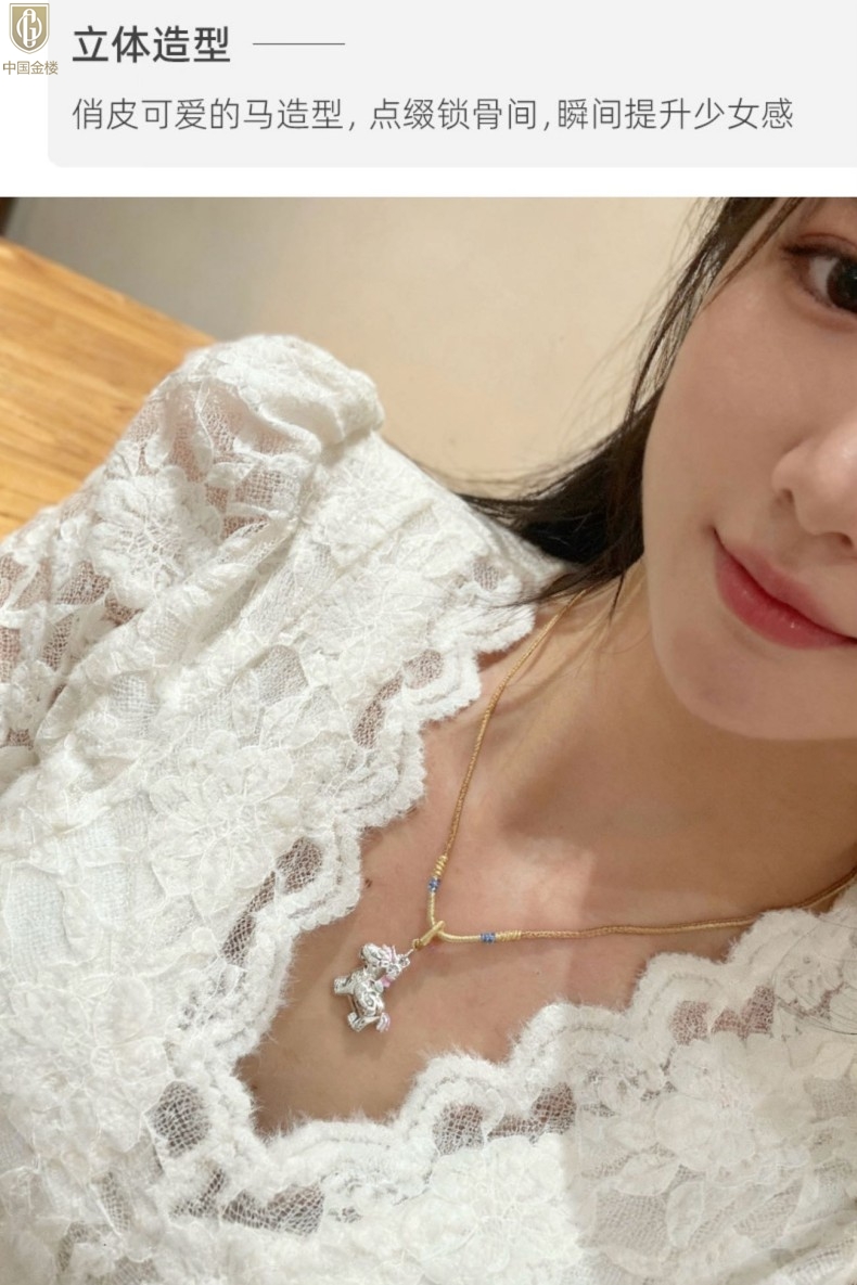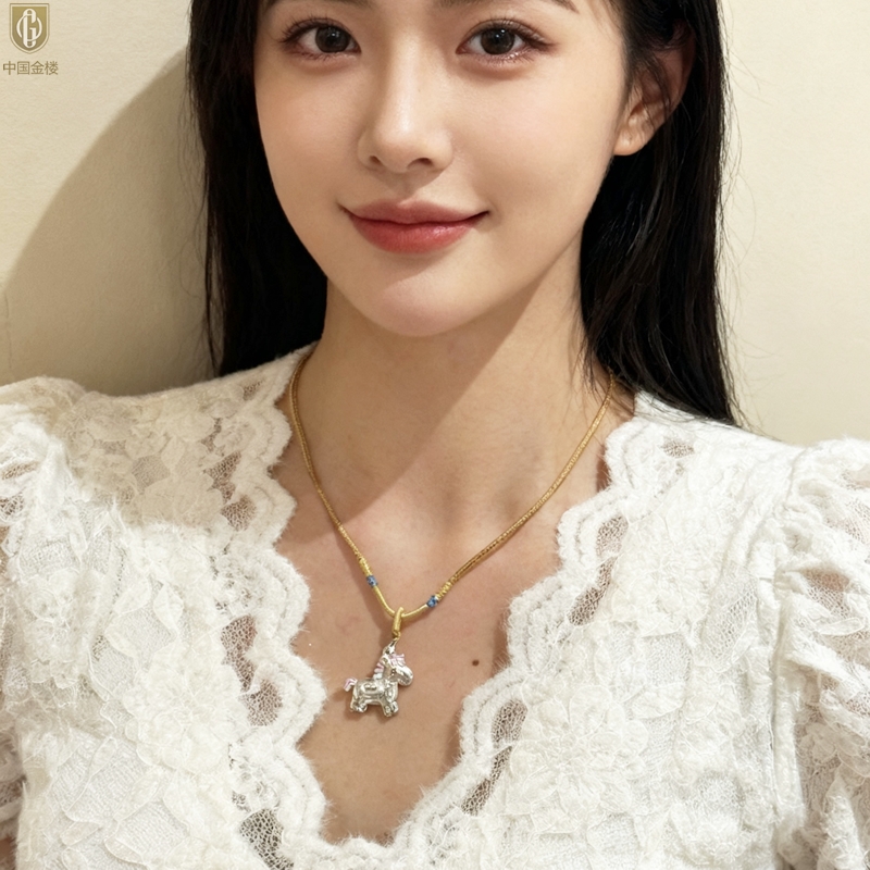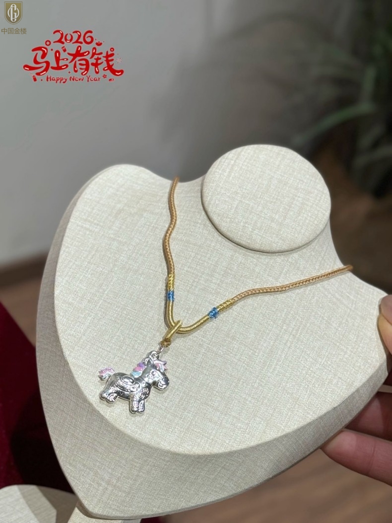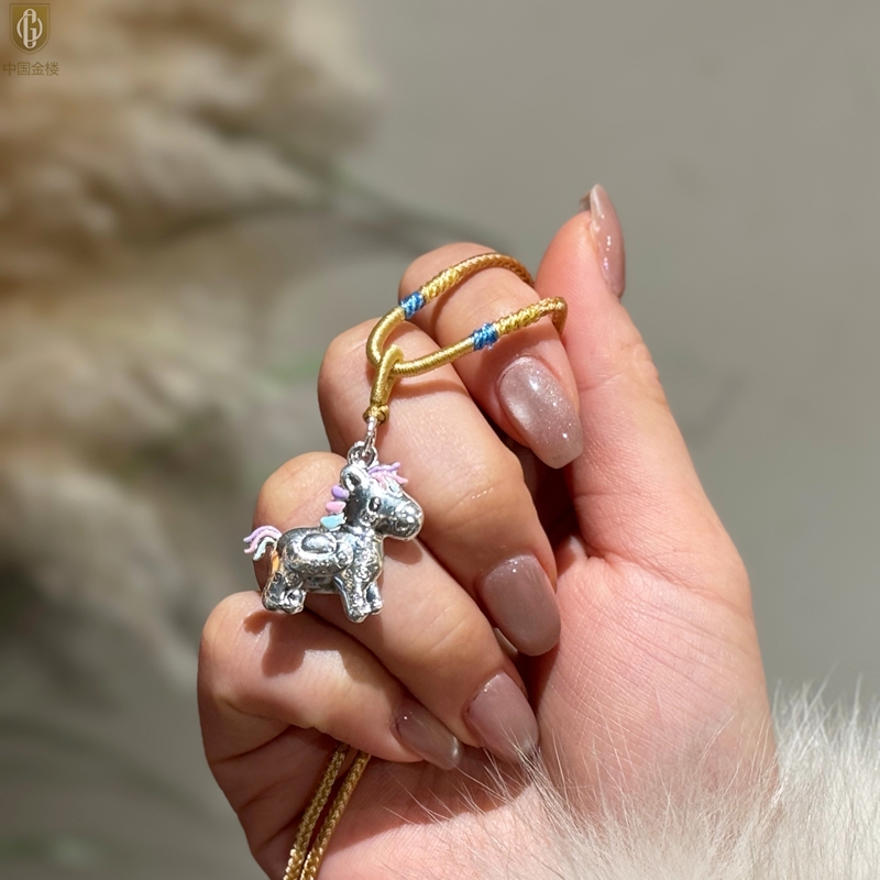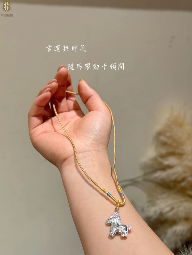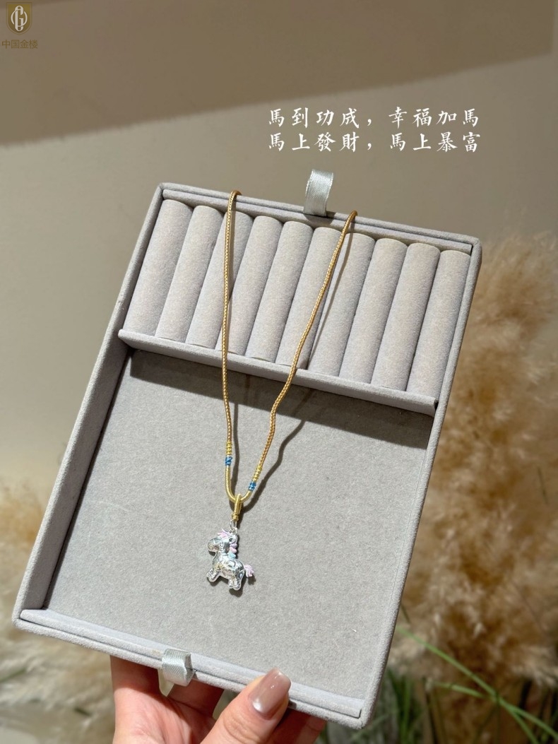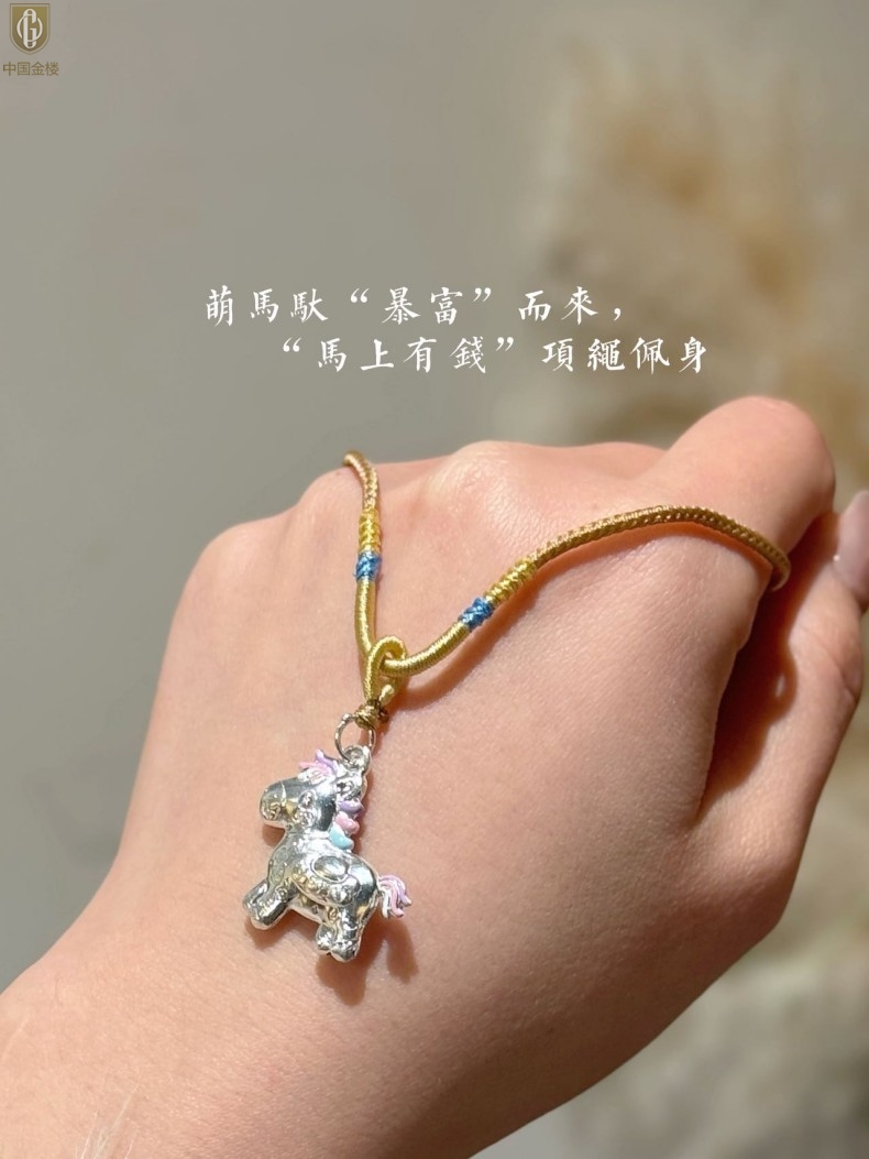 【品名】中国金楼萌马星驰马上发财K银吊坠(附赠毛衣链)