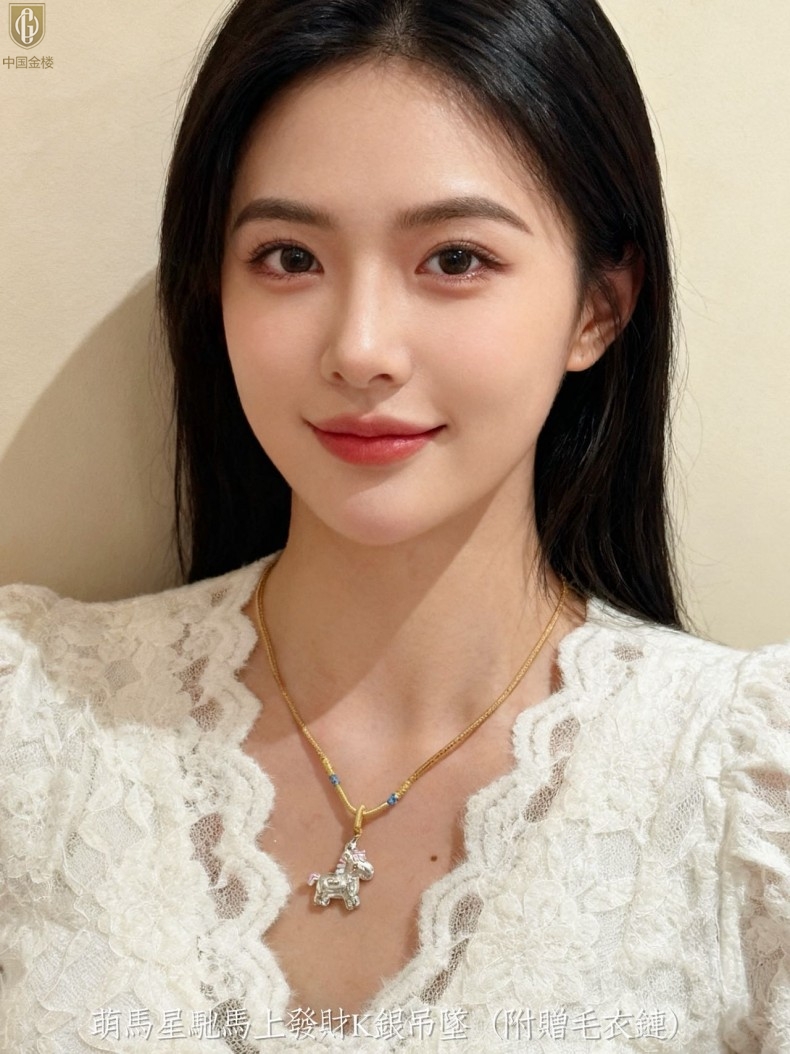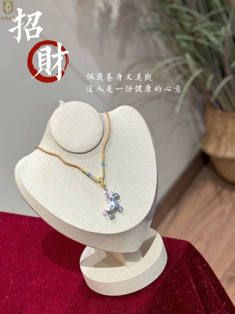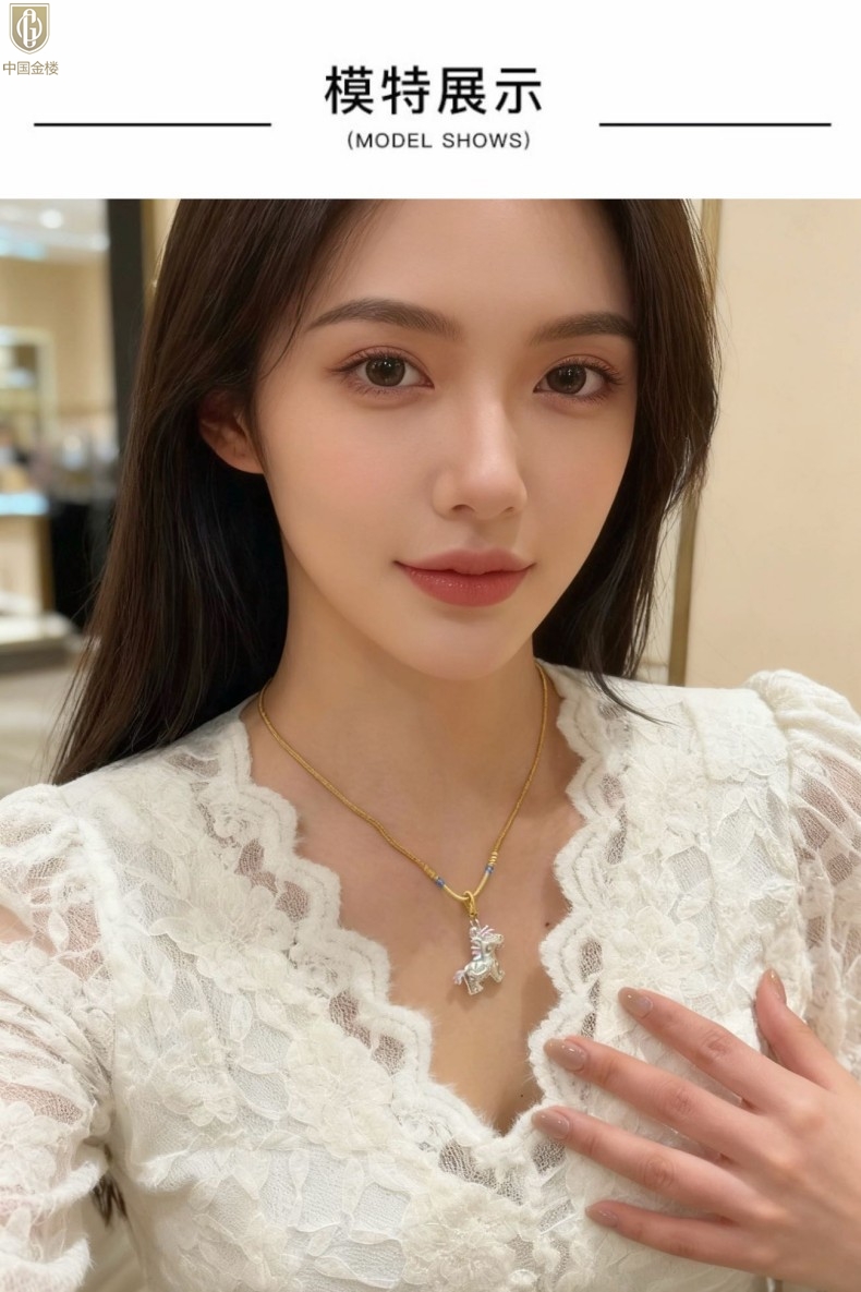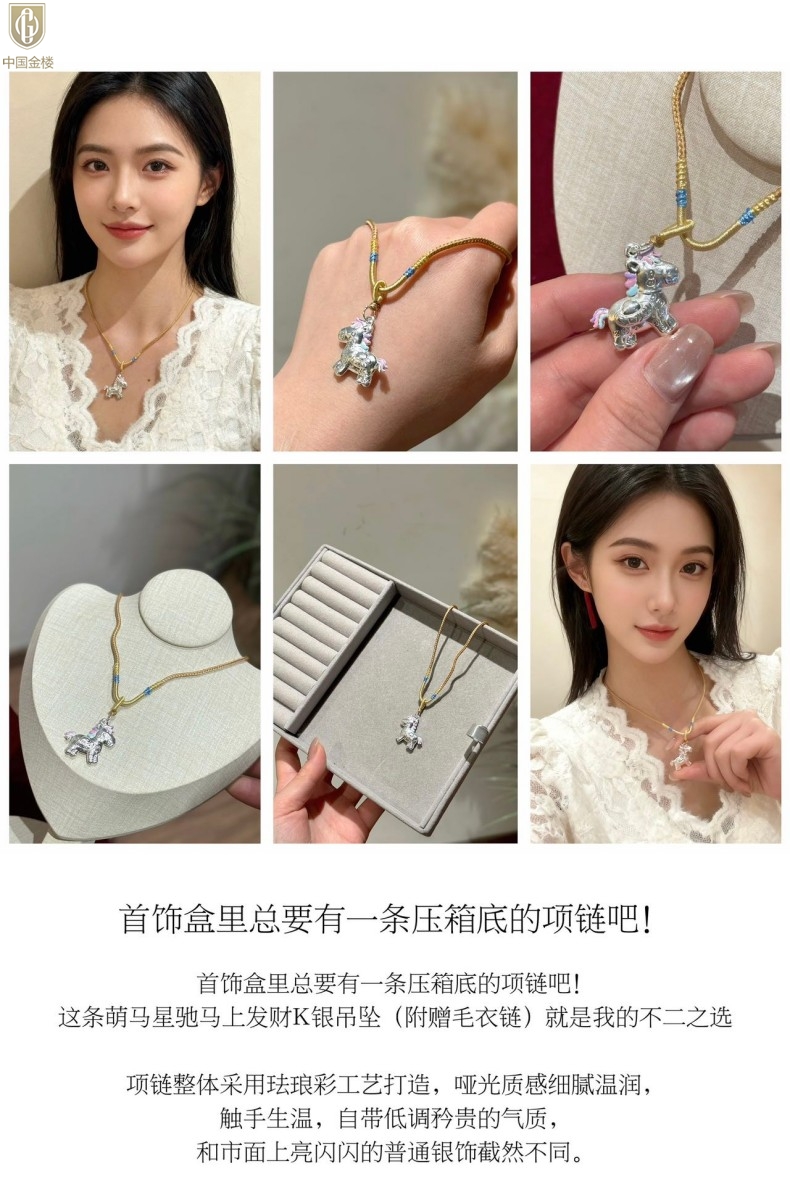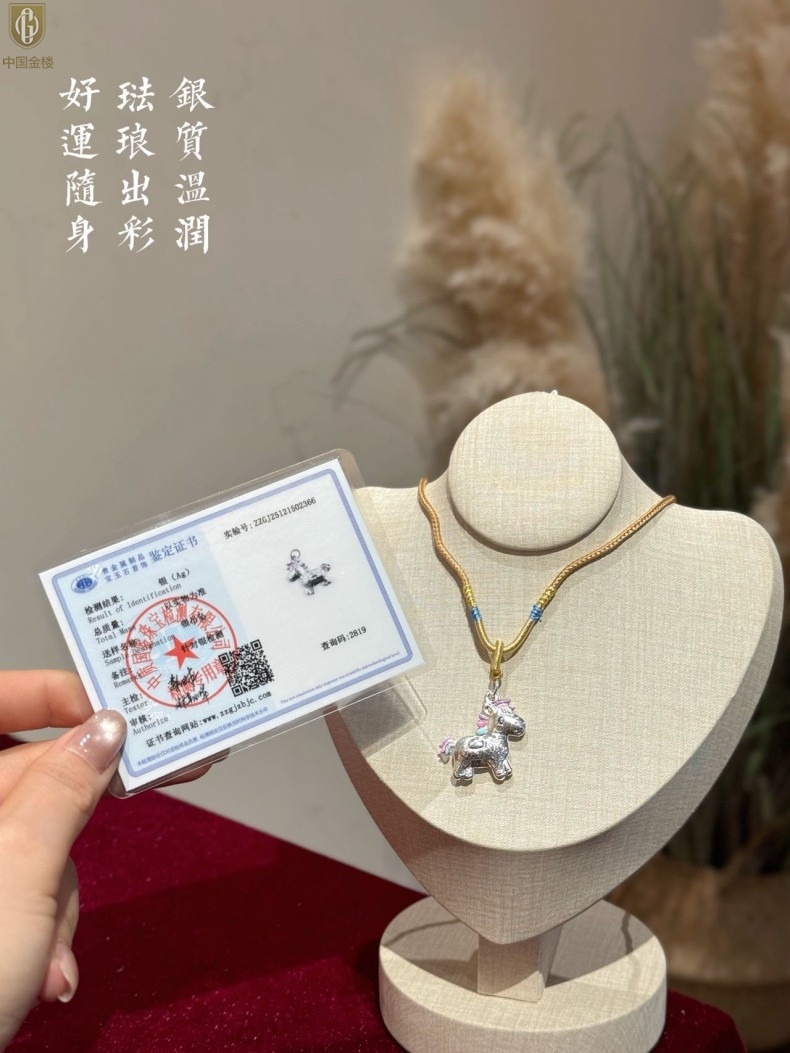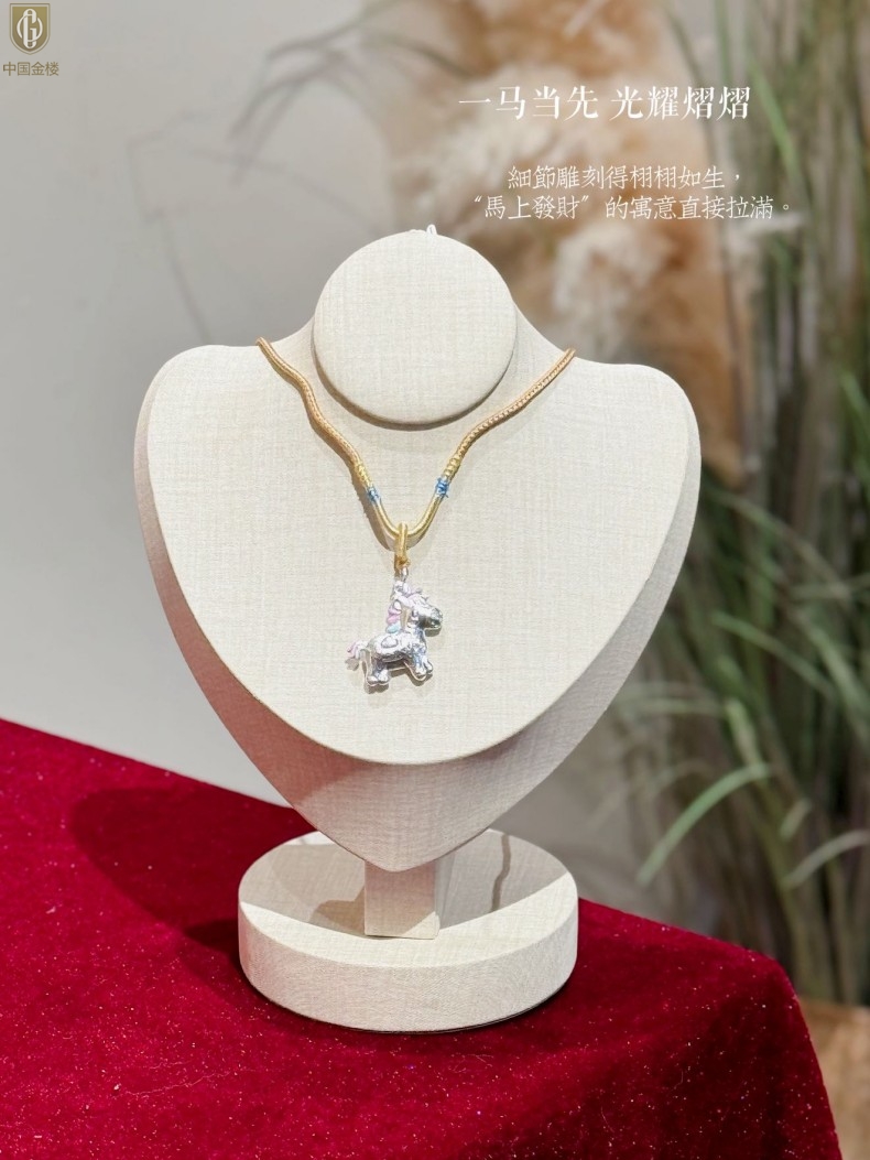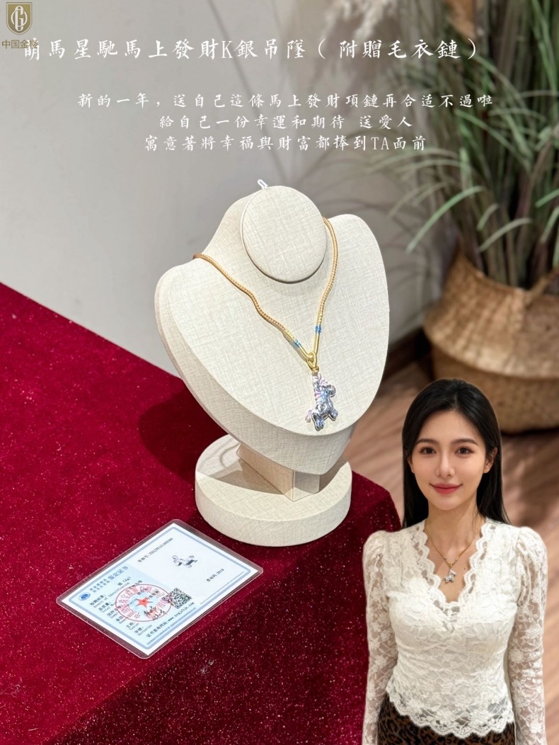 【品名】中国金楼萌马星驰马上发财K银吊坠(附赠毛衣链)