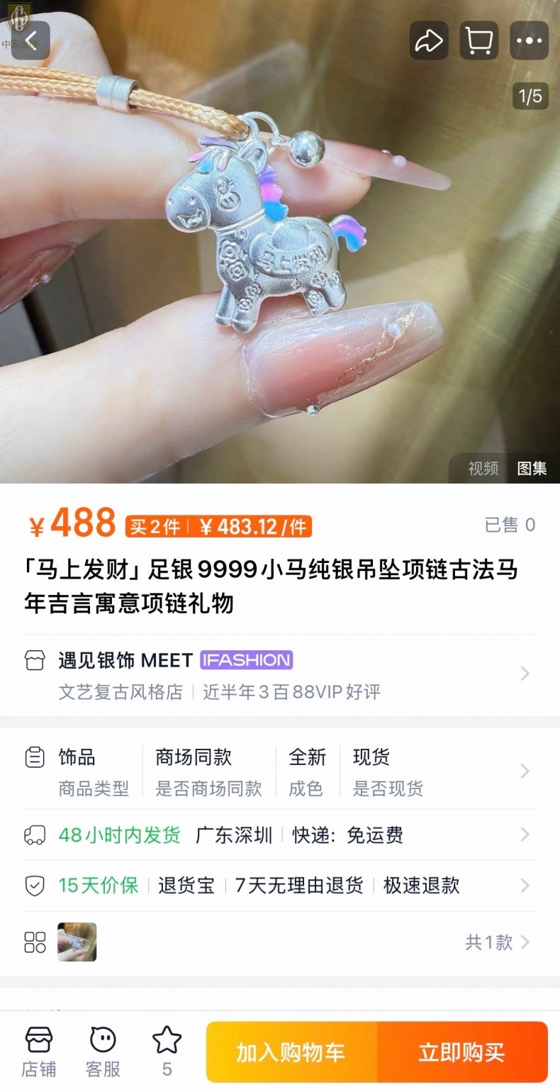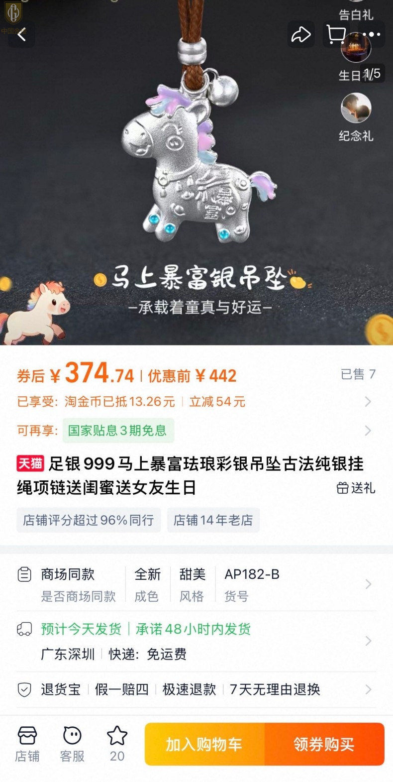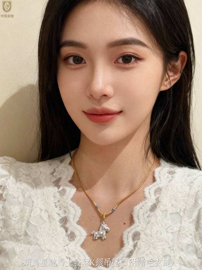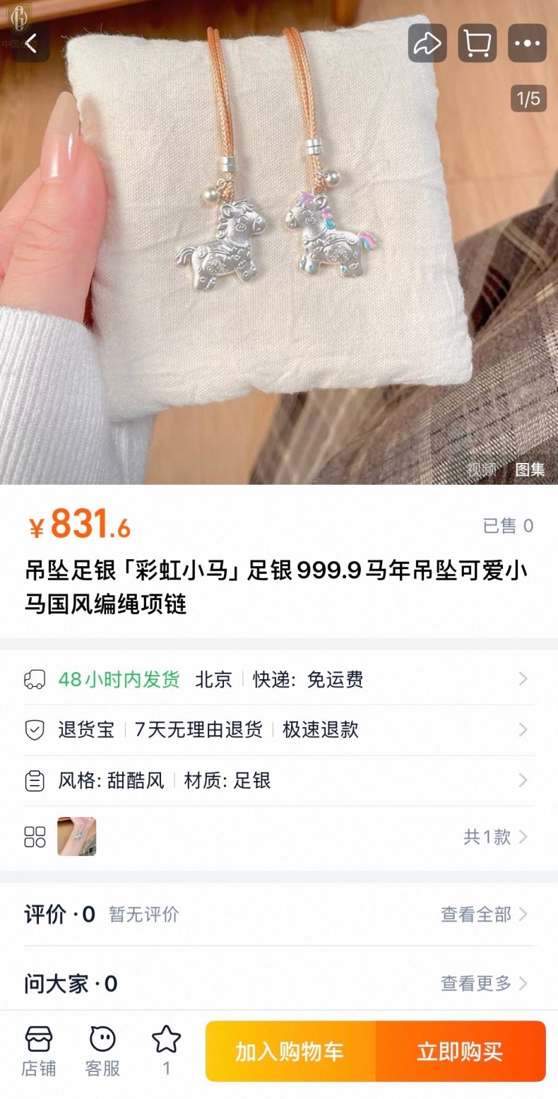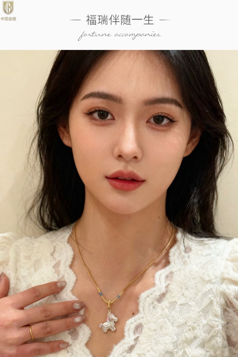 【品名】中国金楼萌马星驰马上发财K银吊坠(附赠毛衣链)