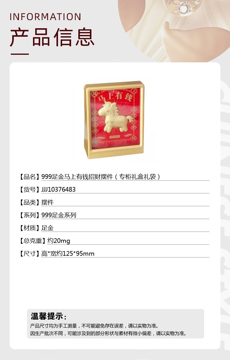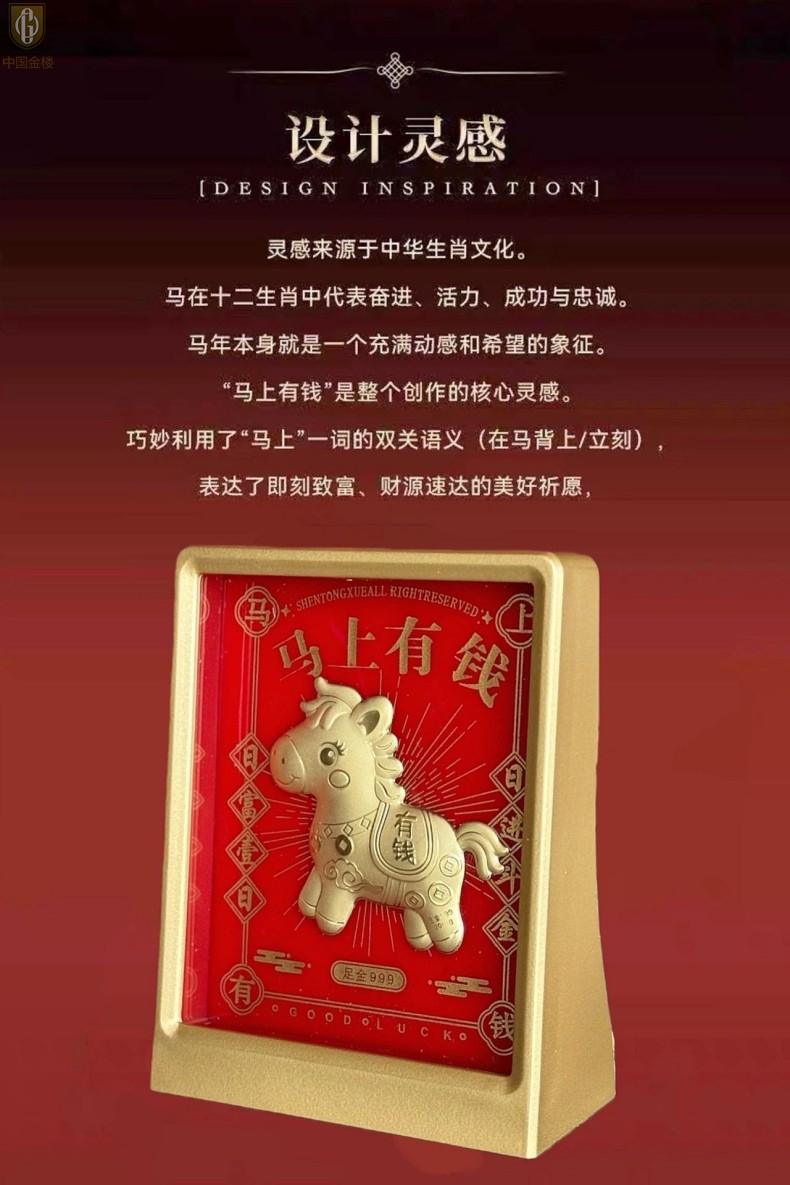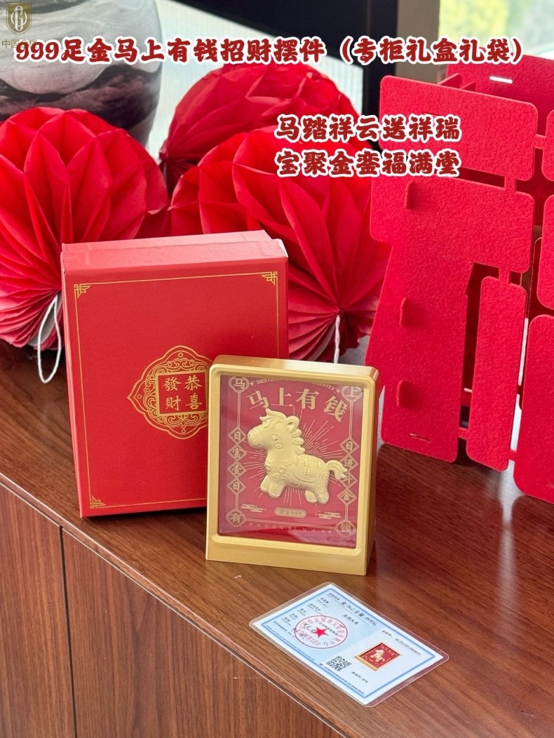 【品名】中国金楼999足金马上有钱招财摆件(专柜礼盒礼袋)