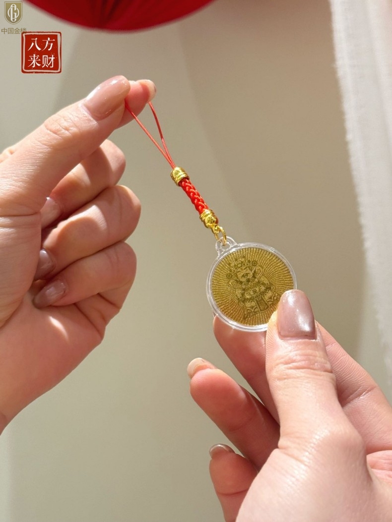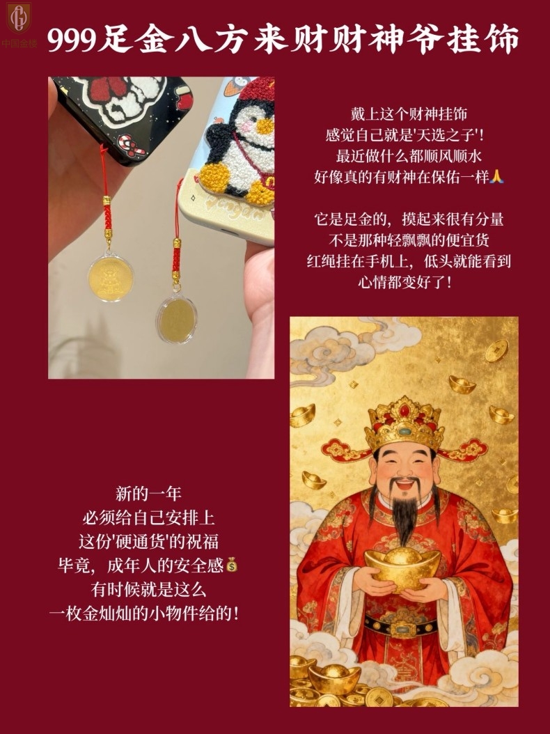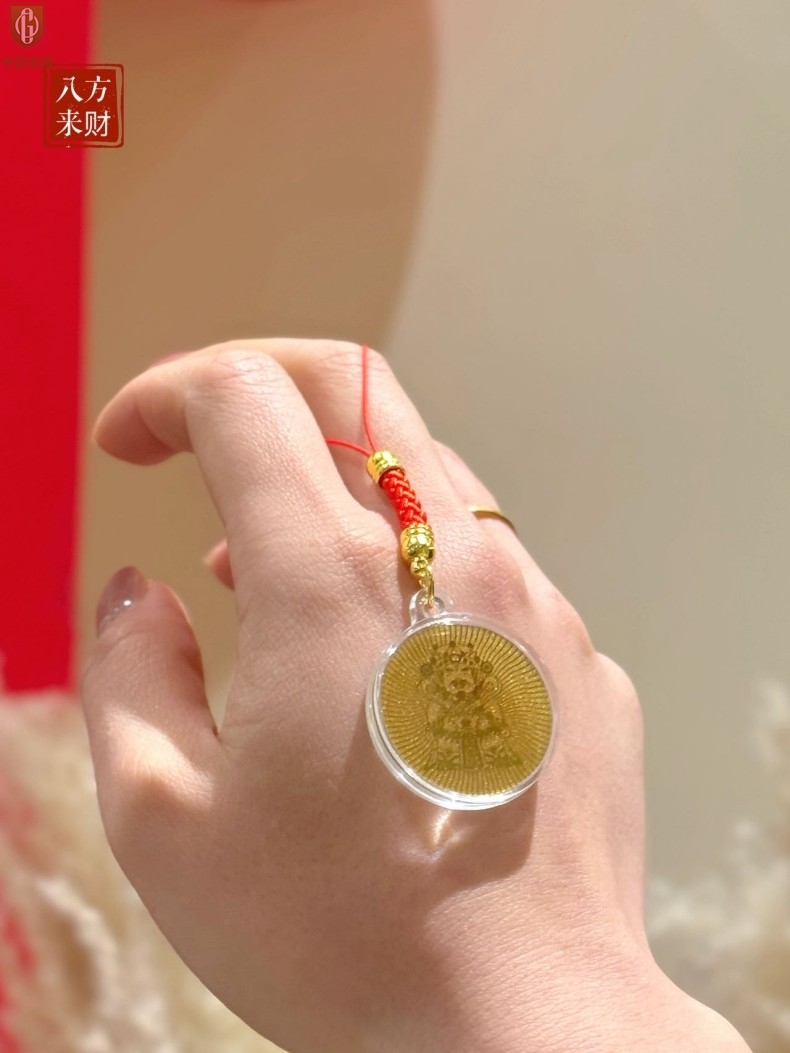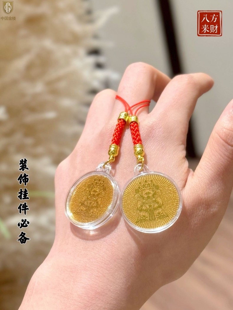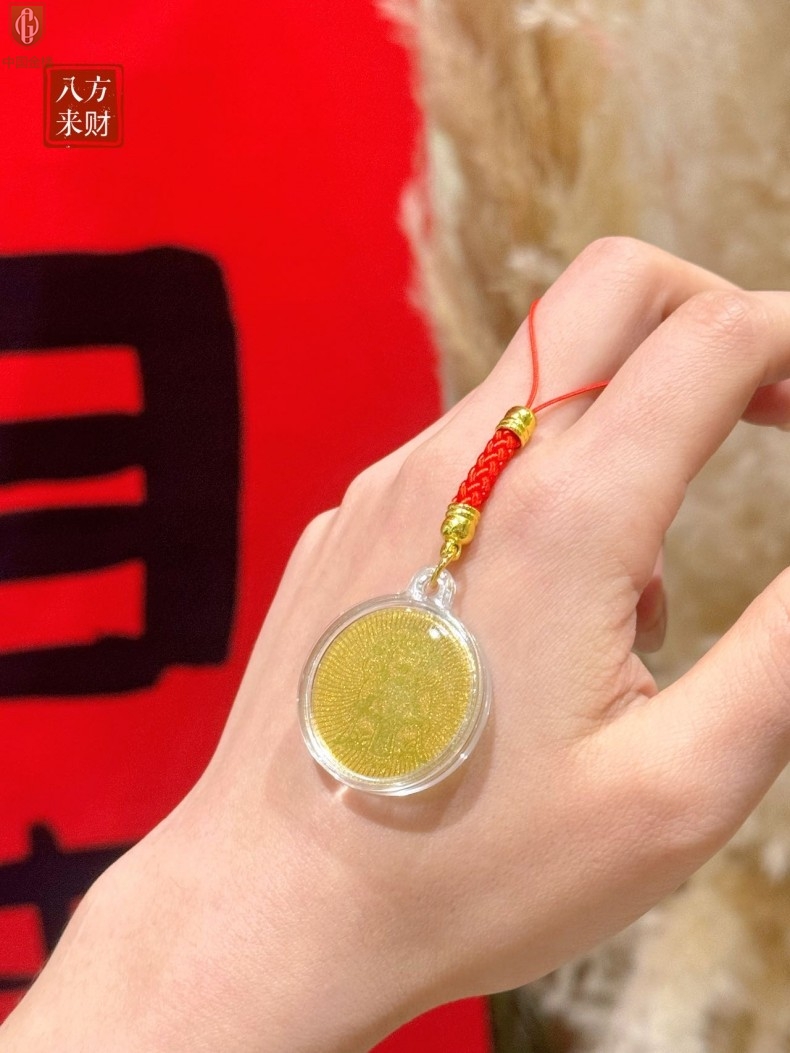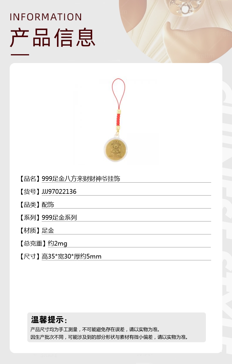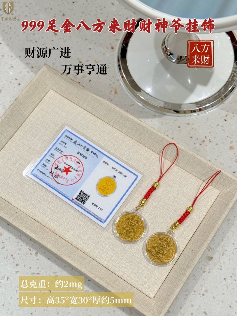 【品名】中国金楼999足金八方来财财神爷挂饰
