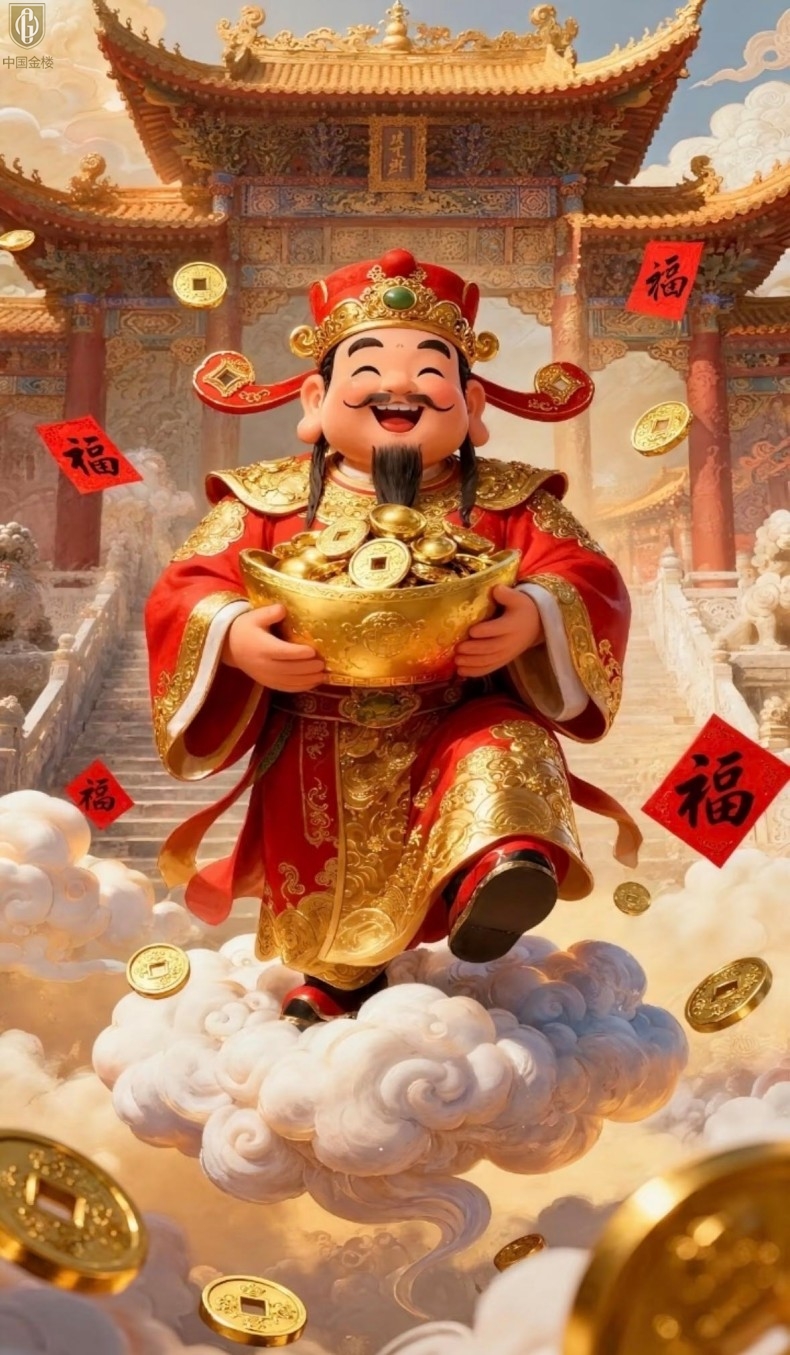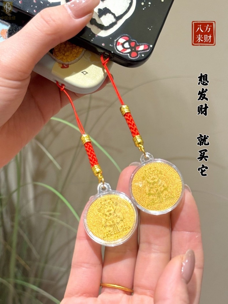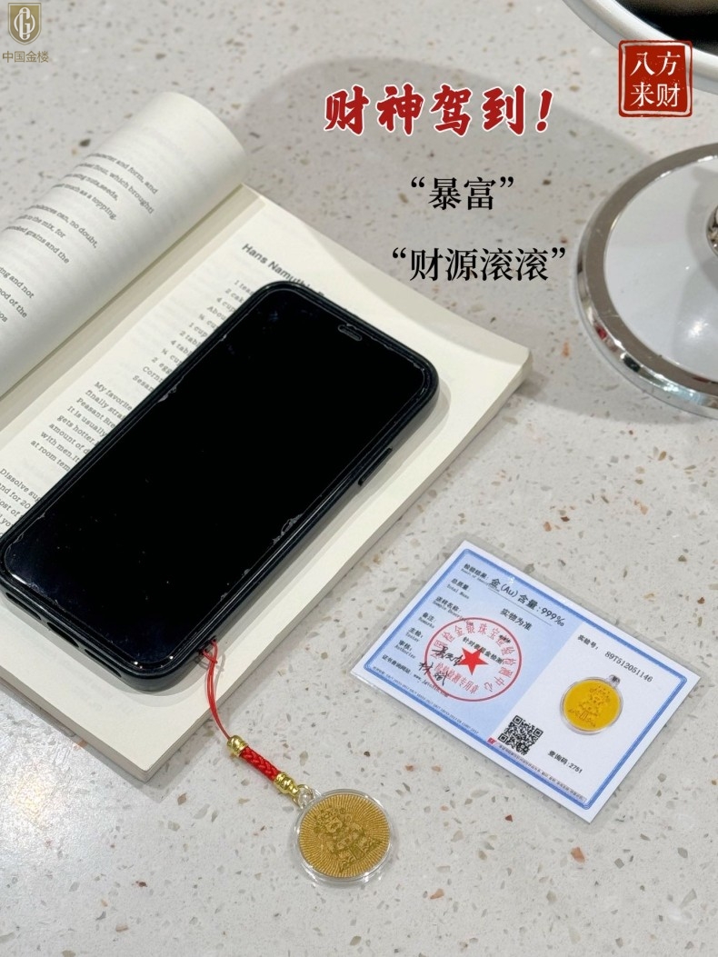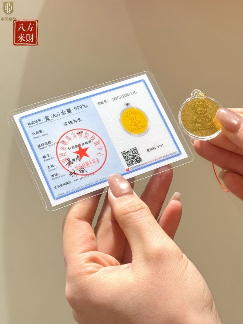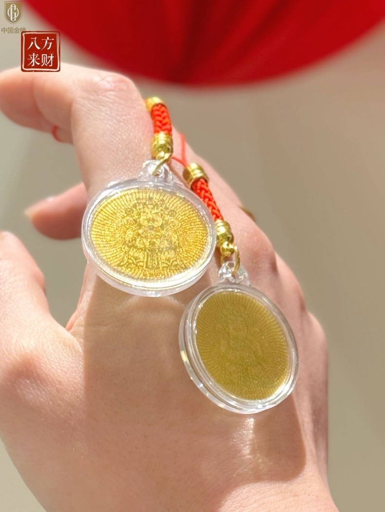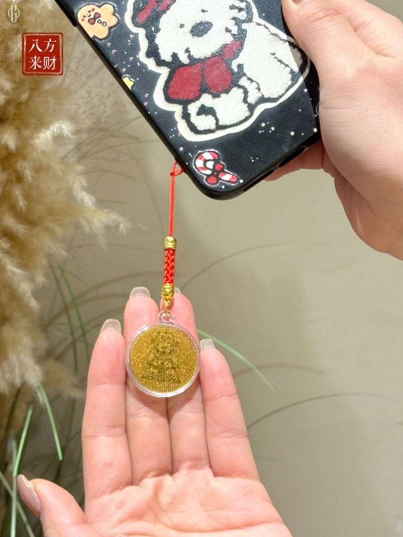 【品名】中国金楼999足金八方来财财神爷挂饰