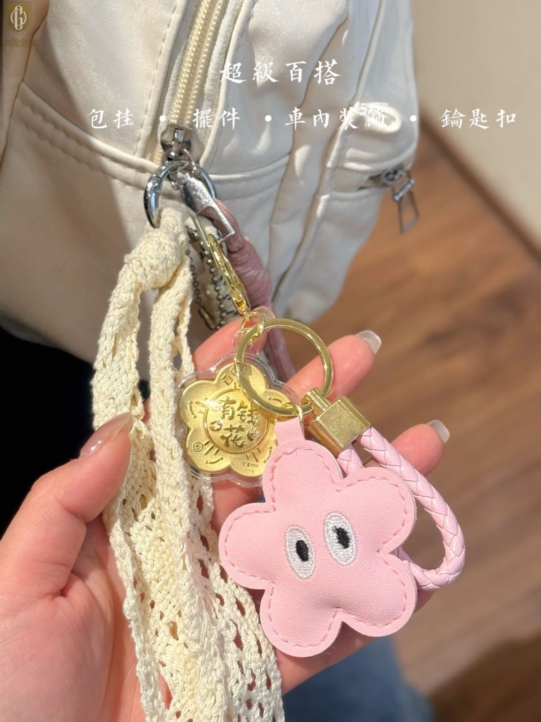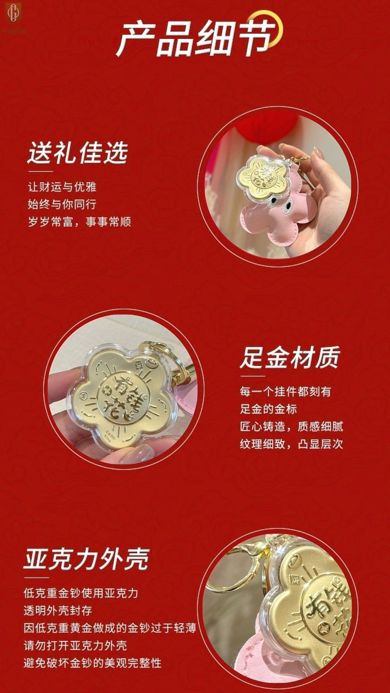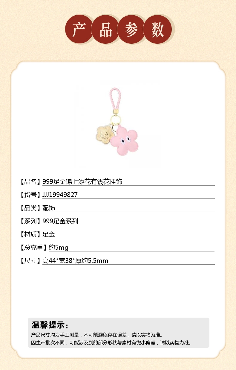 【品名】中国金楼999足金锦上添花有钱花挂饰