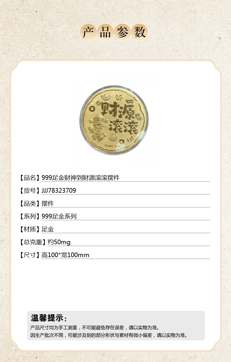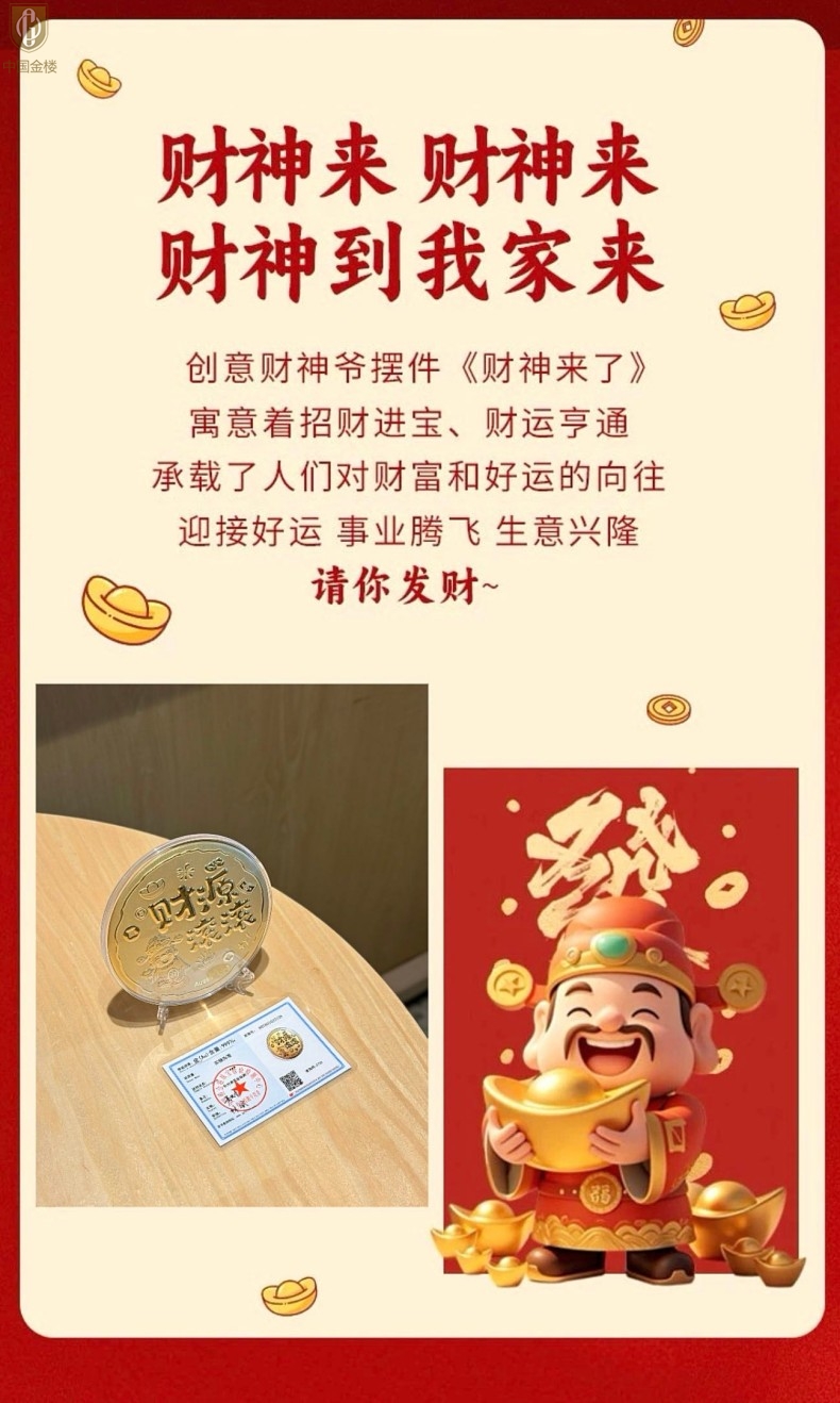 【品名】中国金楼999足金财神到财源滚滚摆件