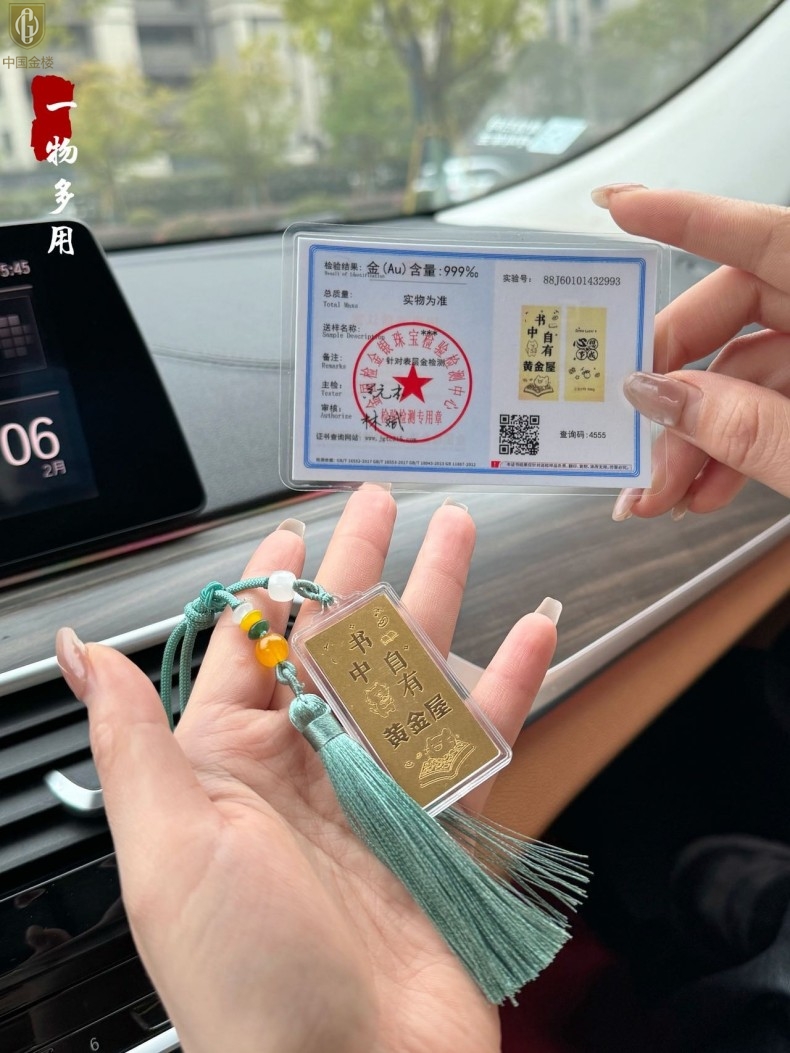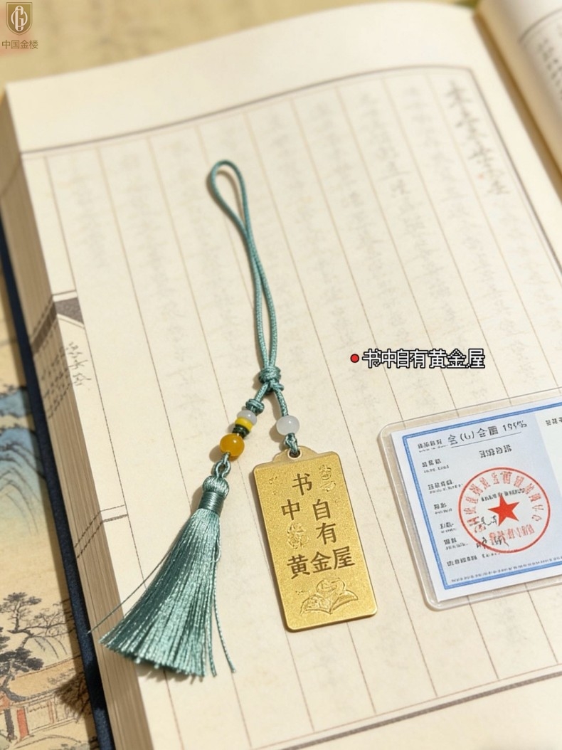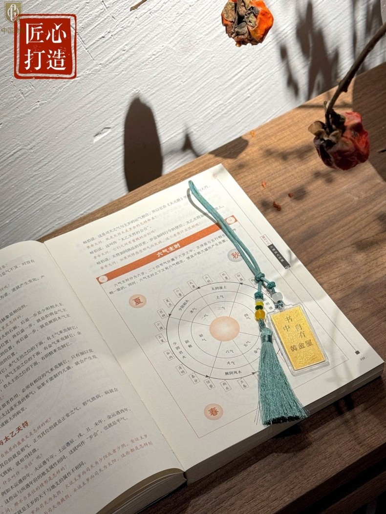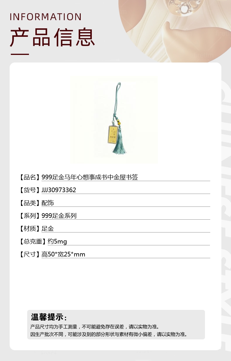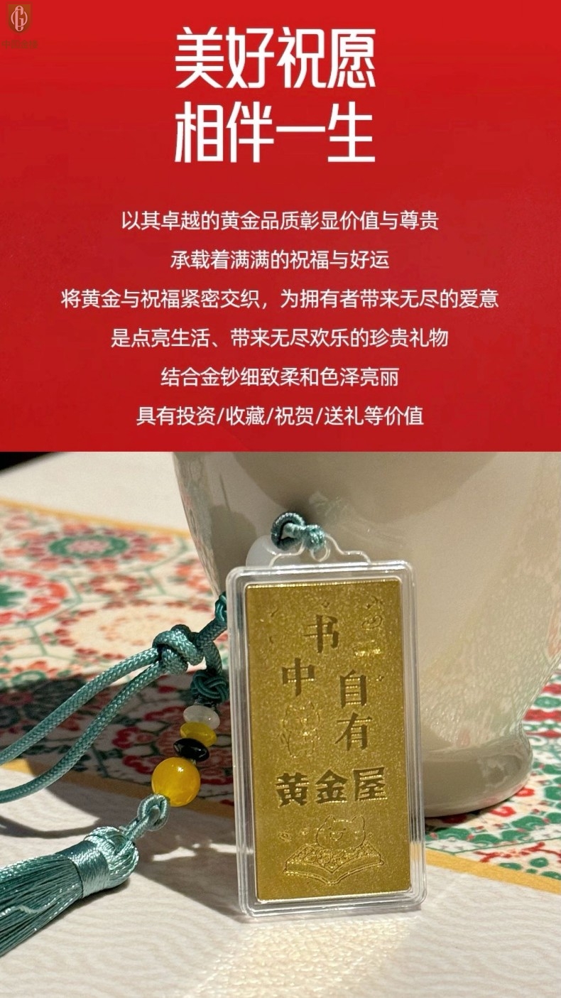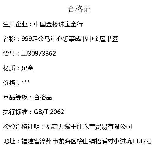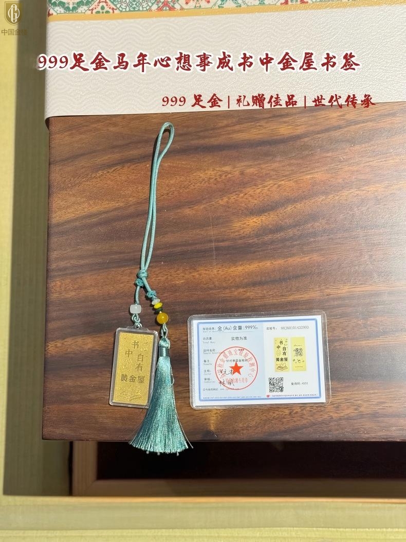 【品名】中国金楼999足金马年心想事成书中金屋书签