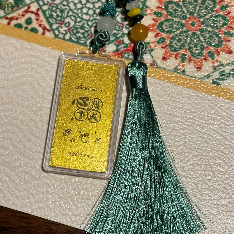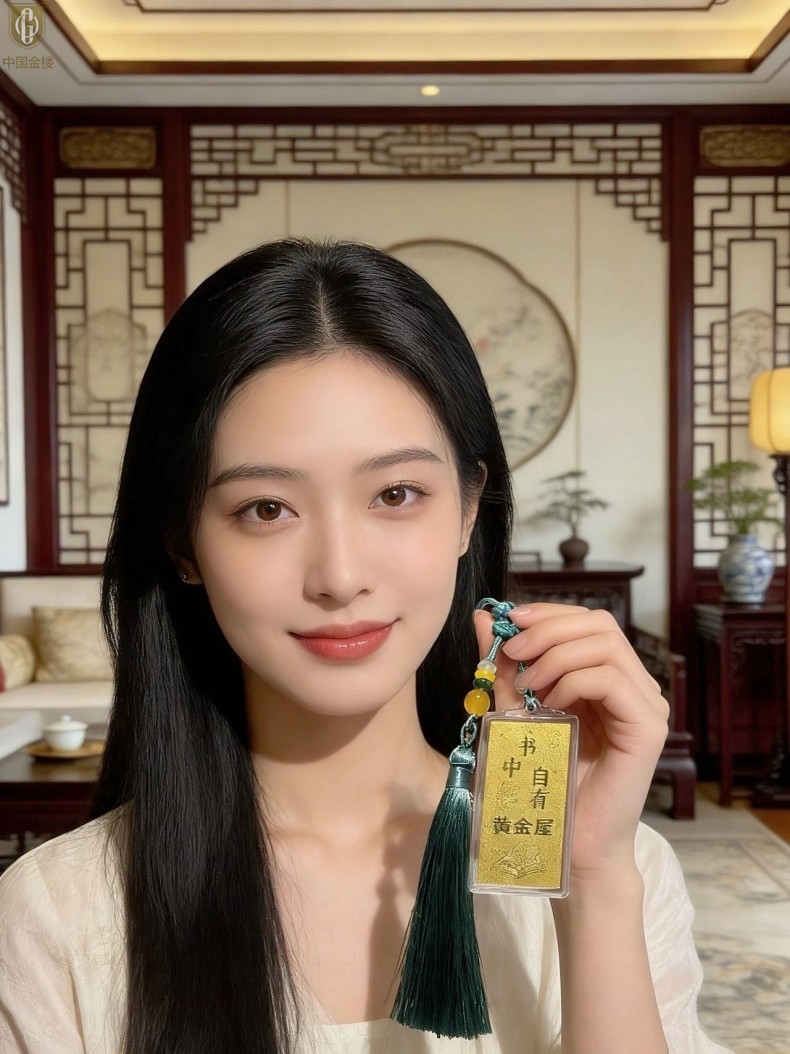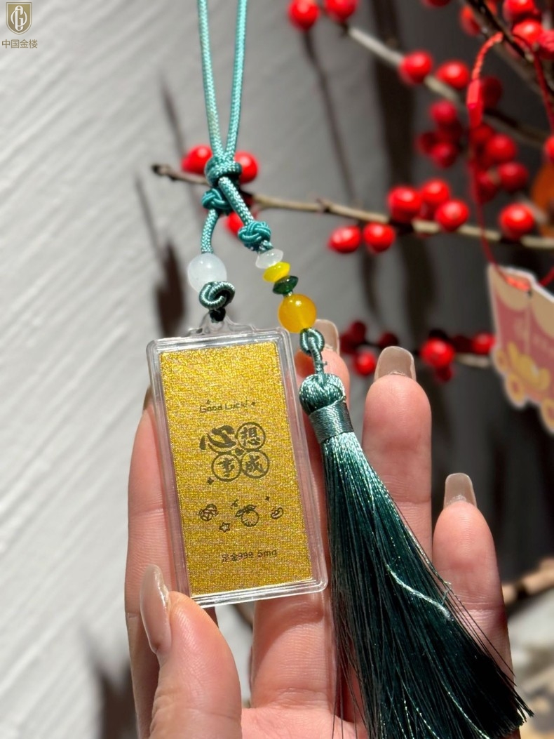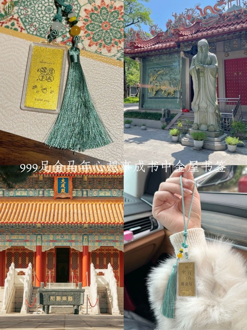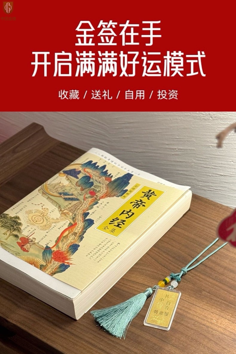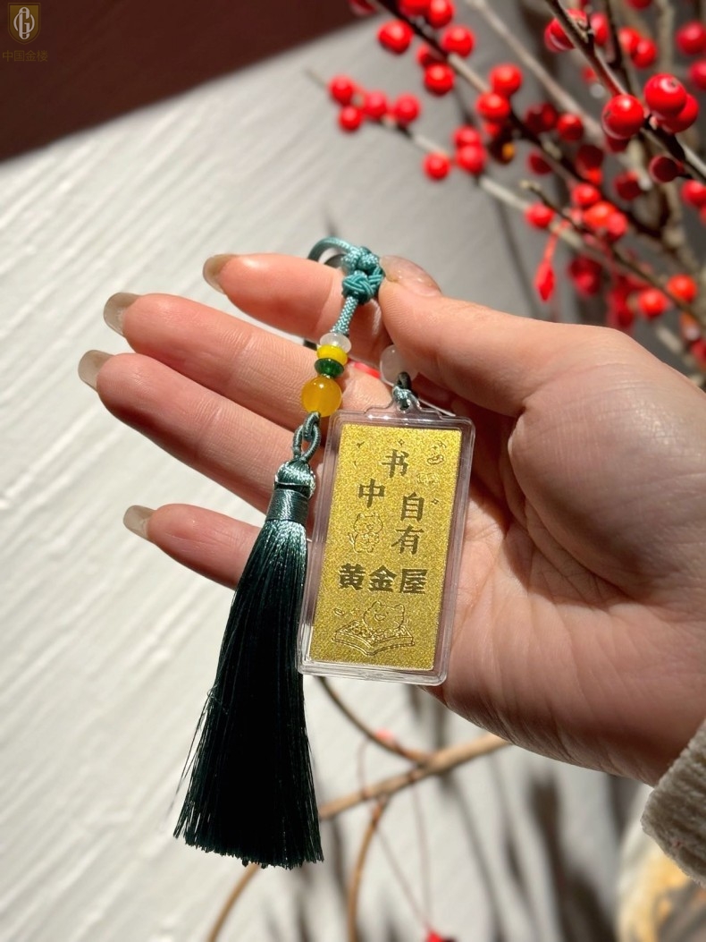 【品名】中国金楼999足金马年心想事成书中金屋书签