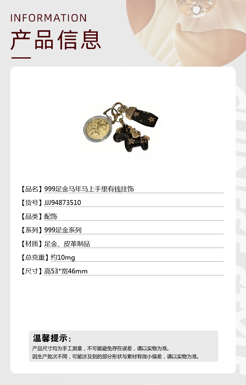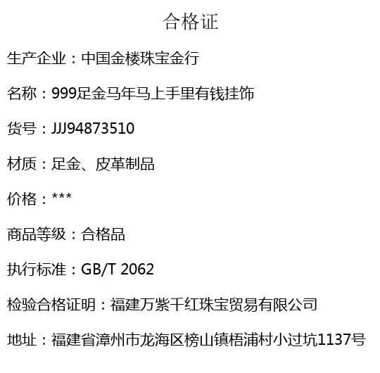 【品名】中国金楼999足金马年马上手里有钱挂饰