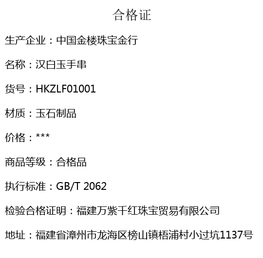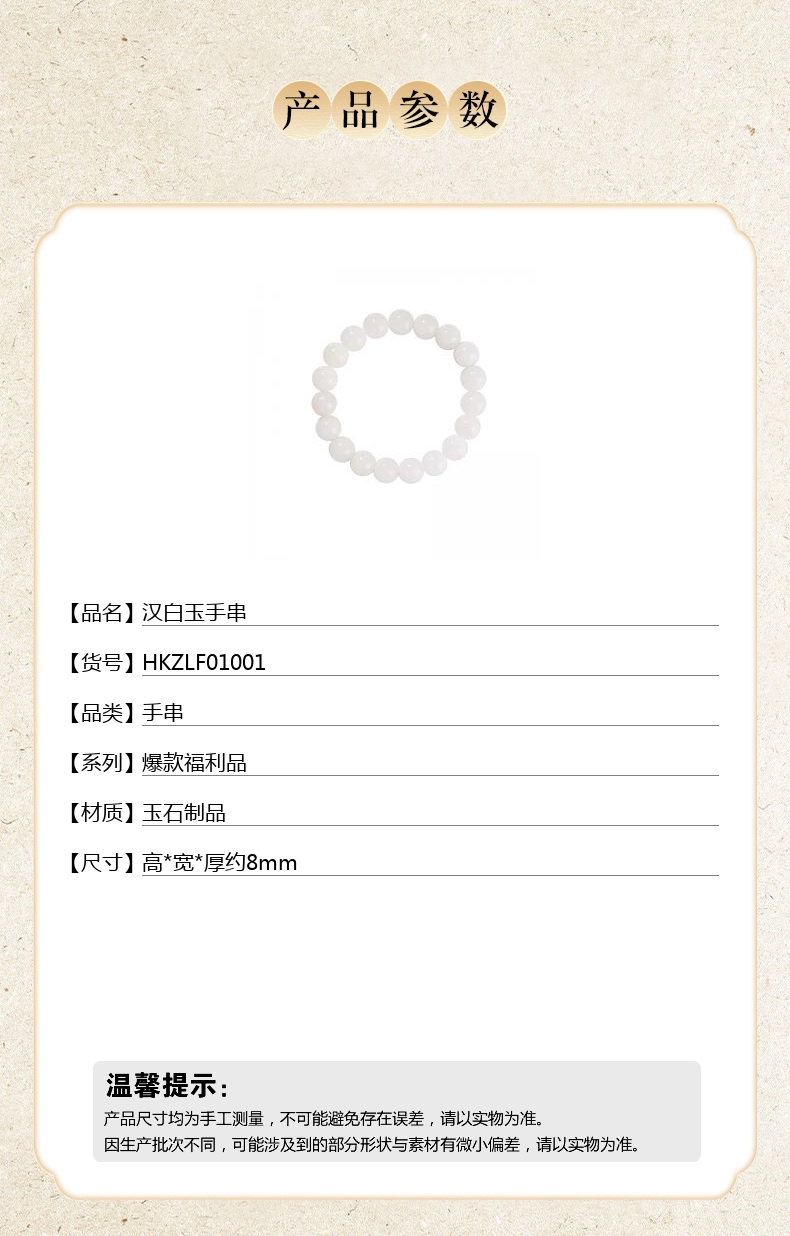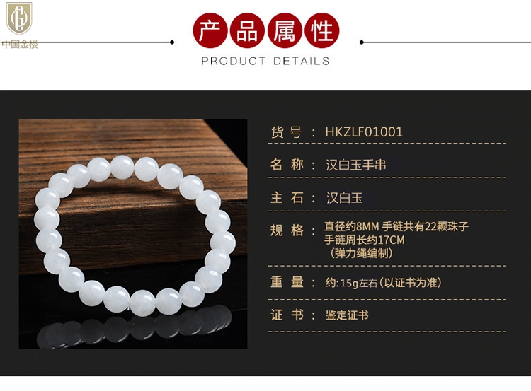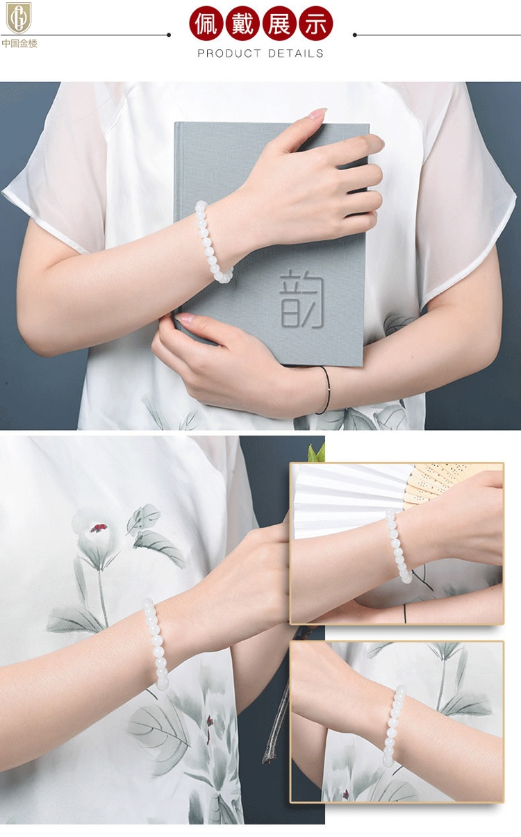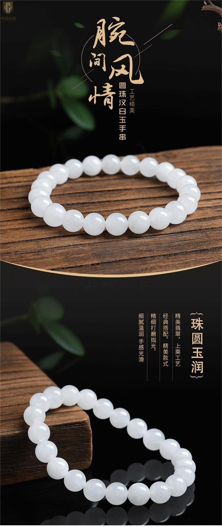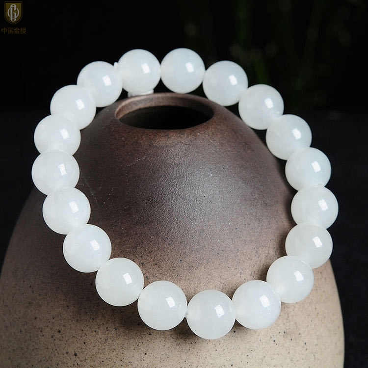 【品名】中国金楼汉白玉手串