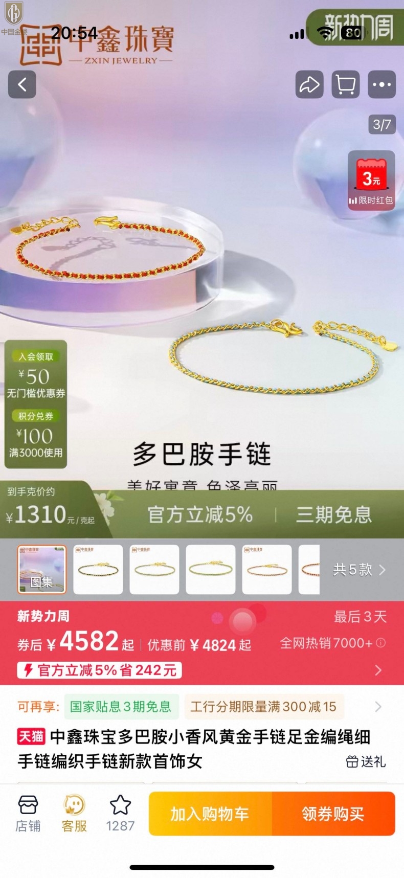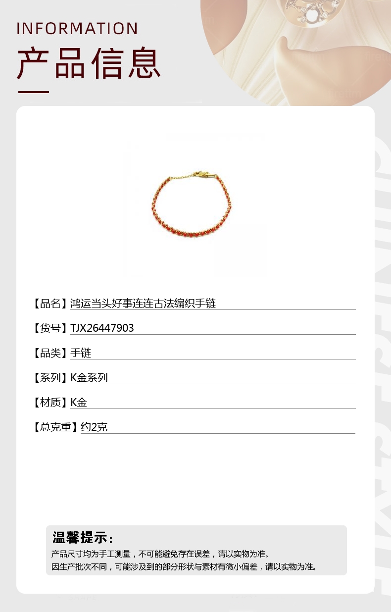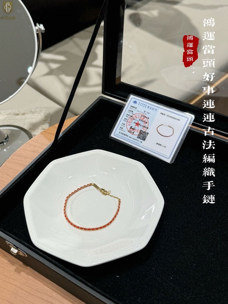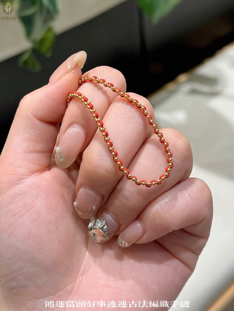 【品名】中国金楼鸿运当头好事连连古法编织手链