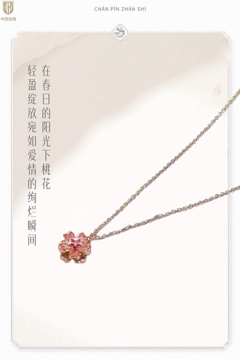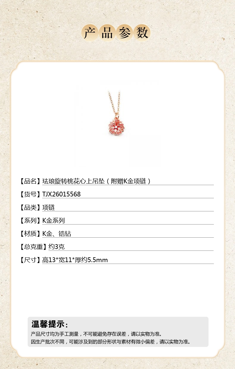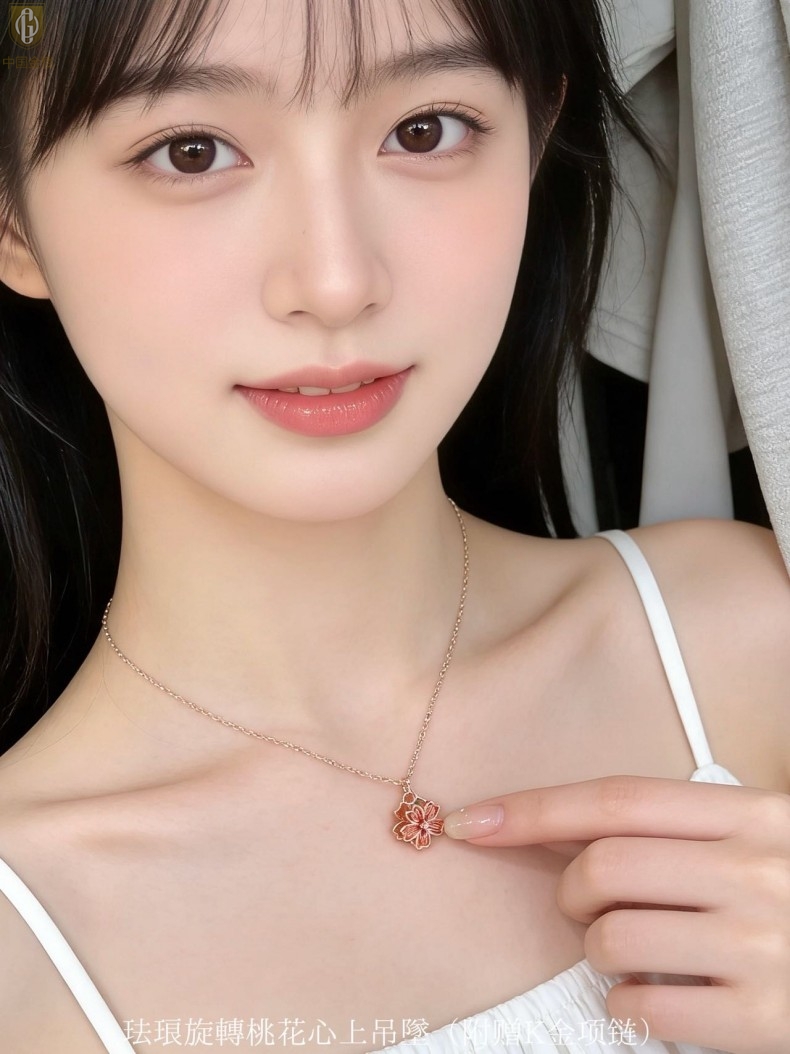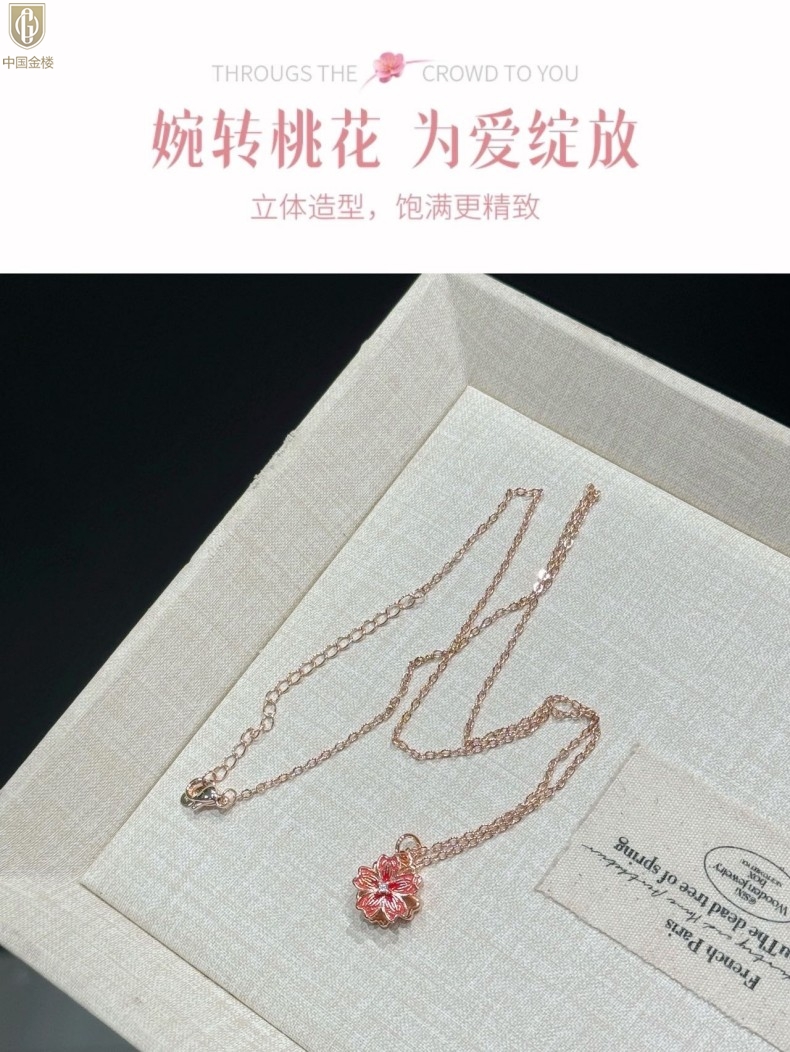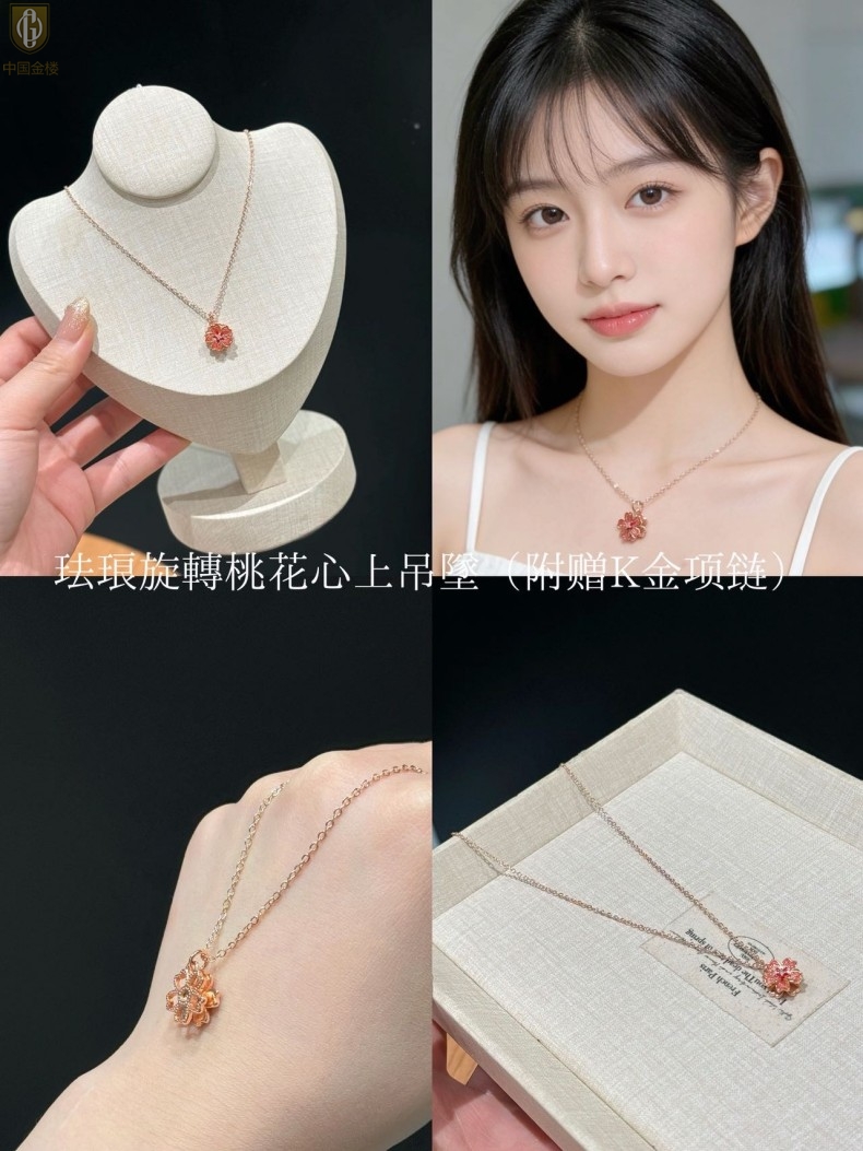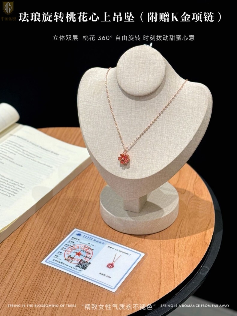 【品名】中国金楼珐琅旋转桃花心上吊坠(附赠K金项链)