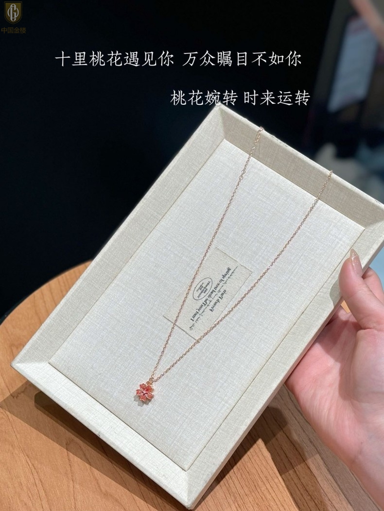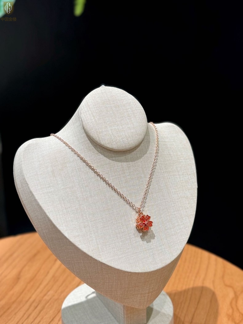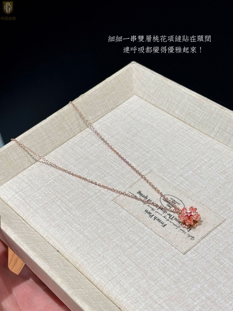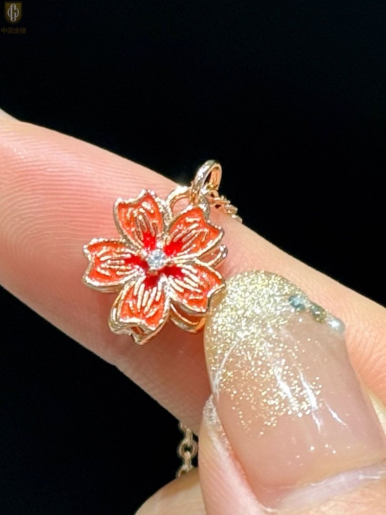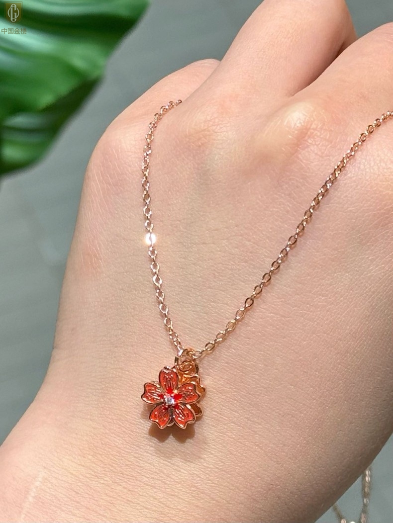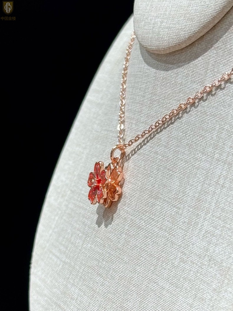 【品名】中国金楼珐琅旋转桃花心上吊坠(附赠K金项链)