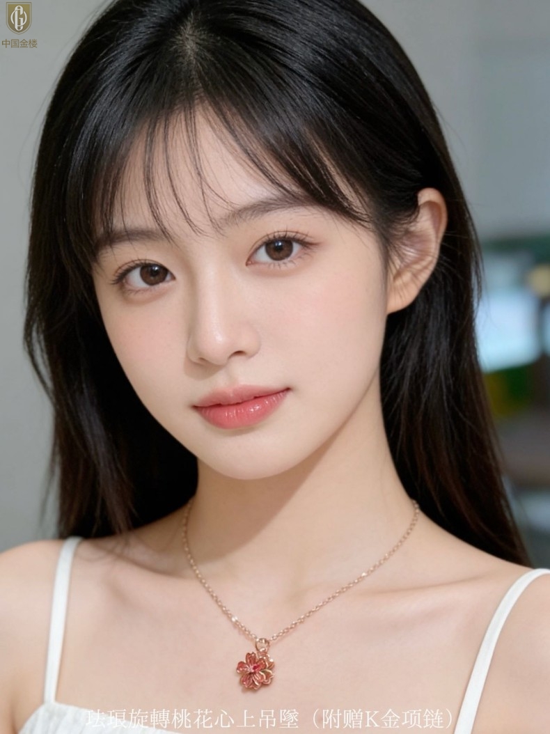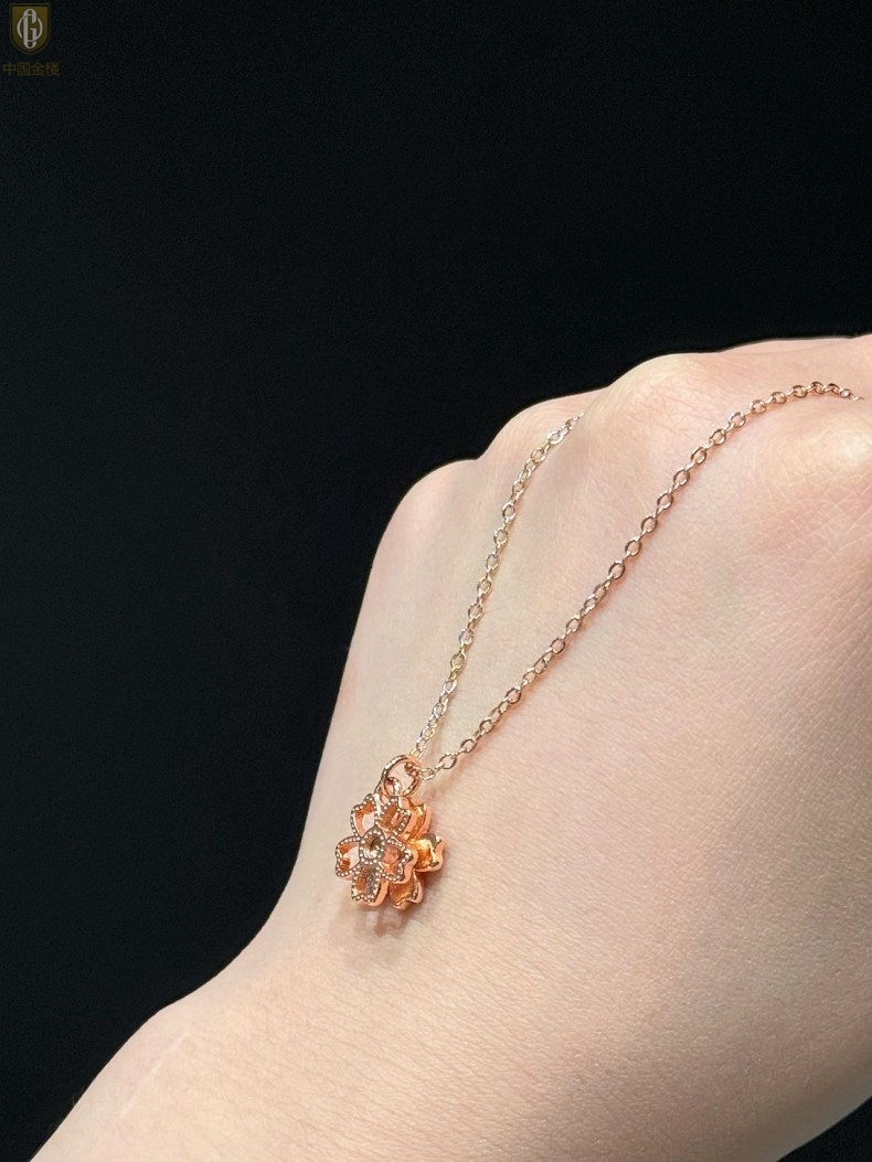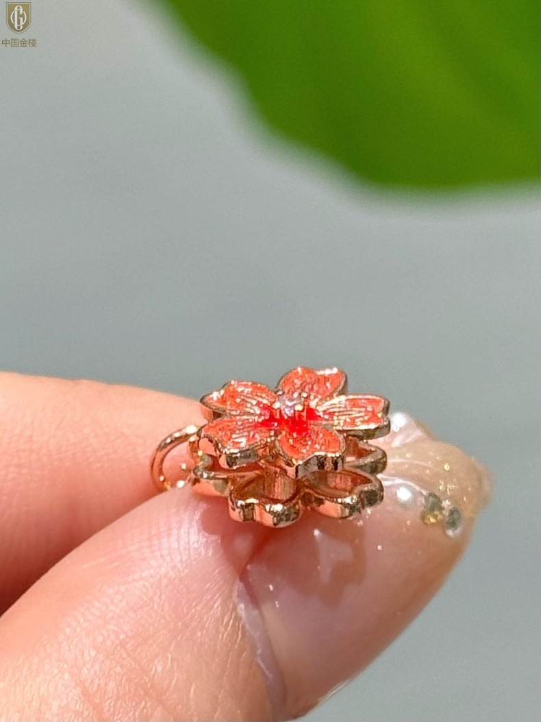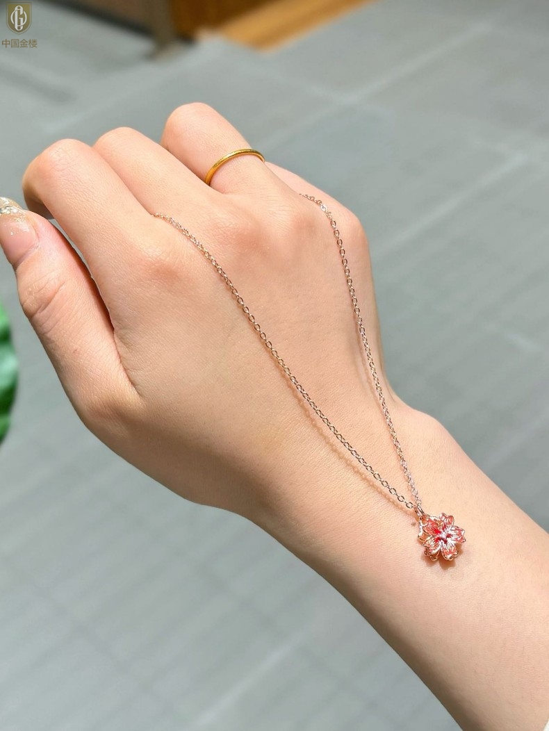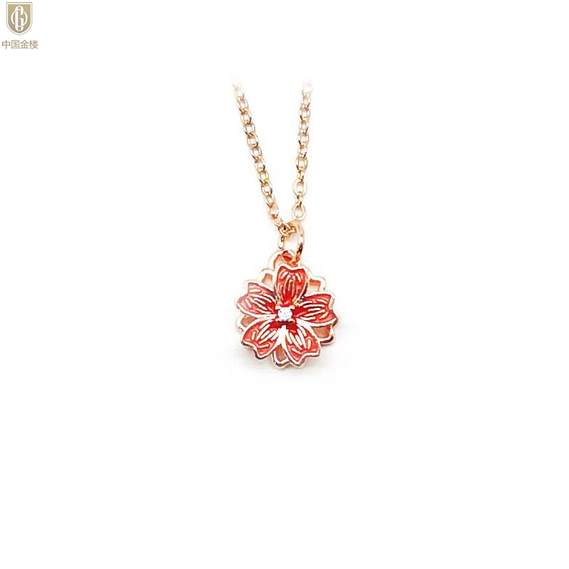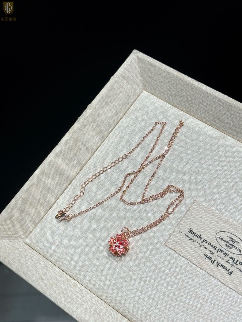【品名】中国金楼珐琅旋转桃花心上吊坠(附赠K金项链)
