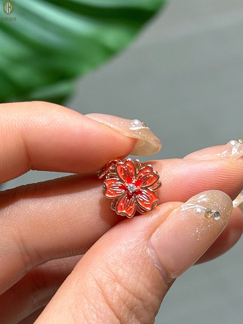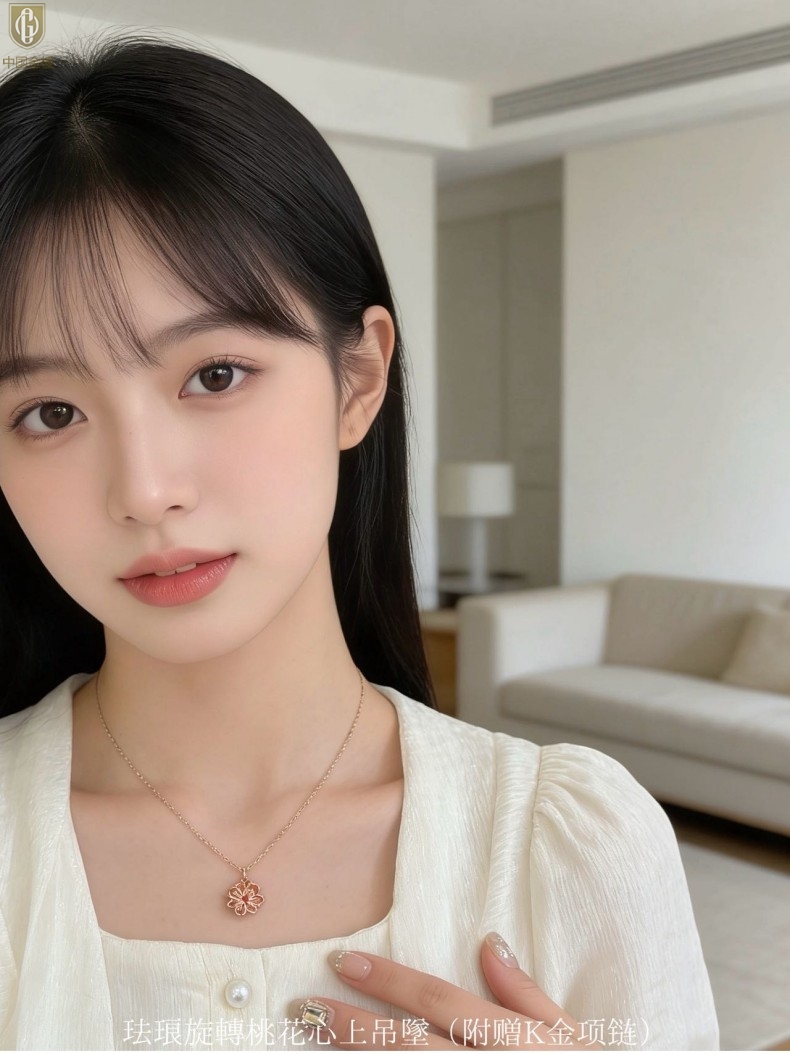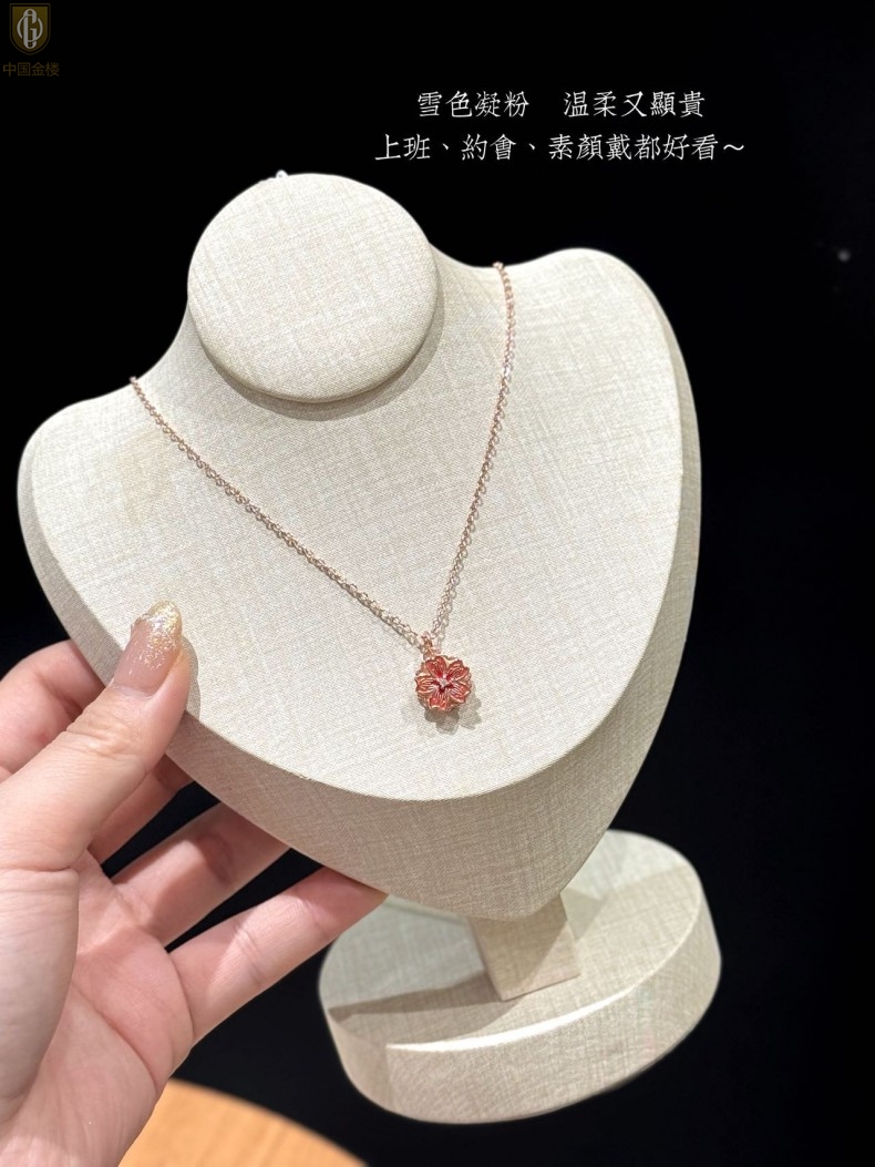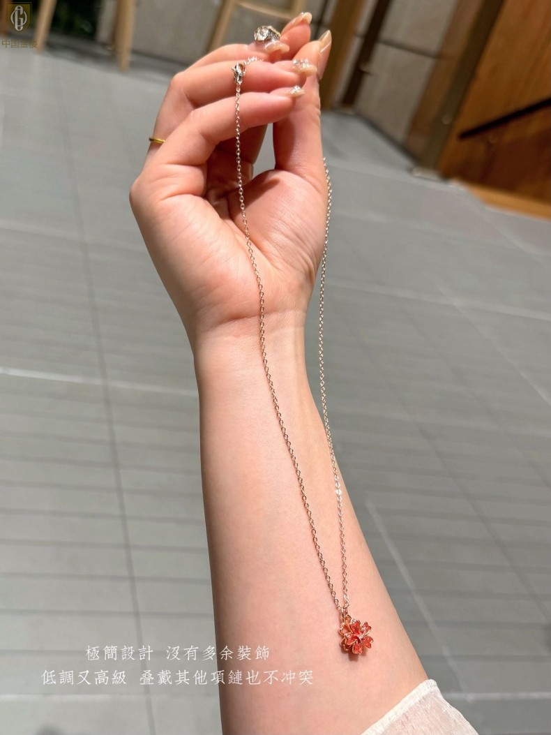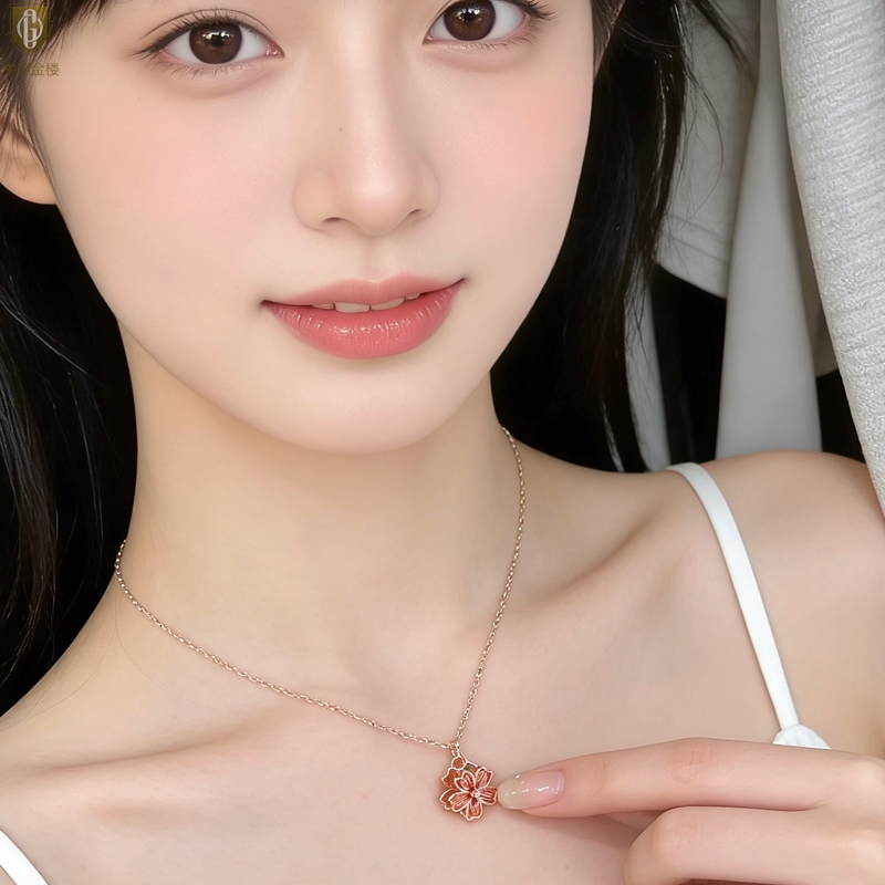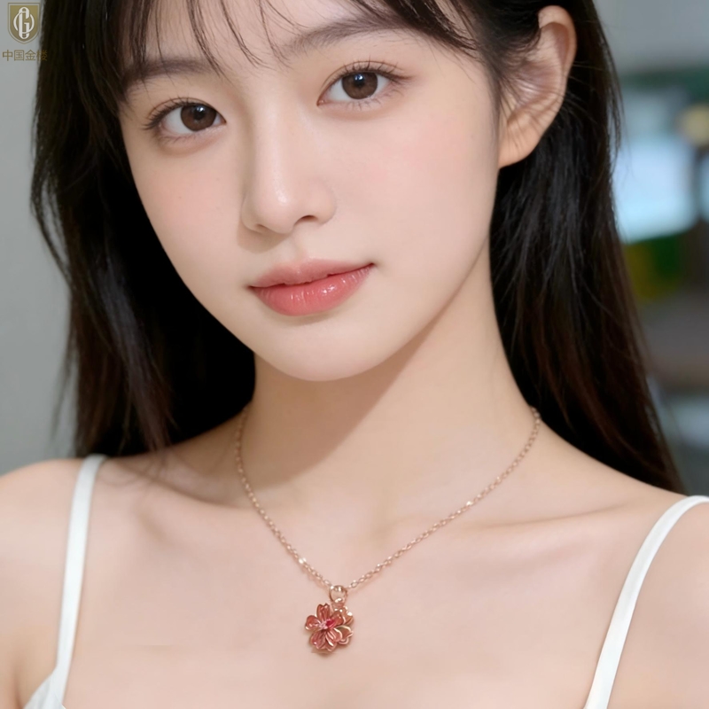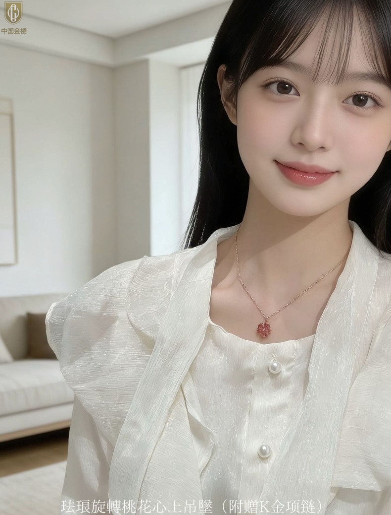 【品名】中国金楼珐琅旋转桃花心上吊坠(附赠K金项链)
