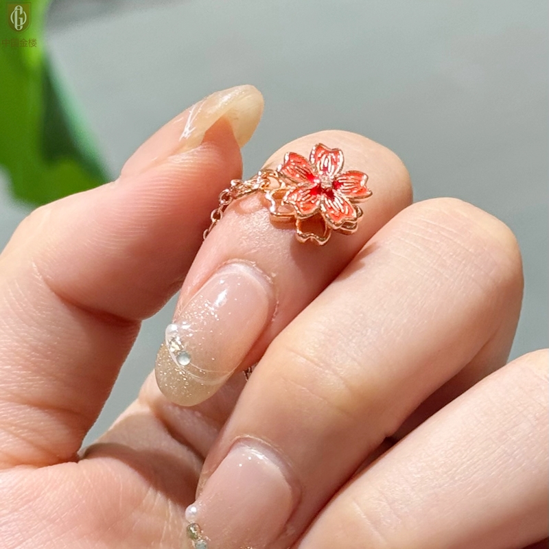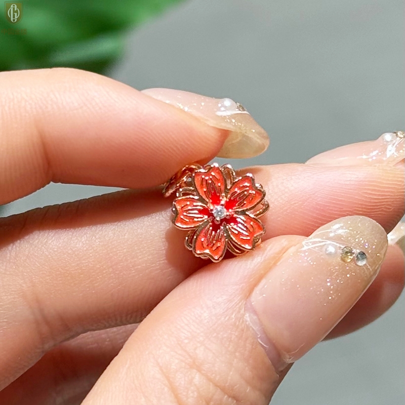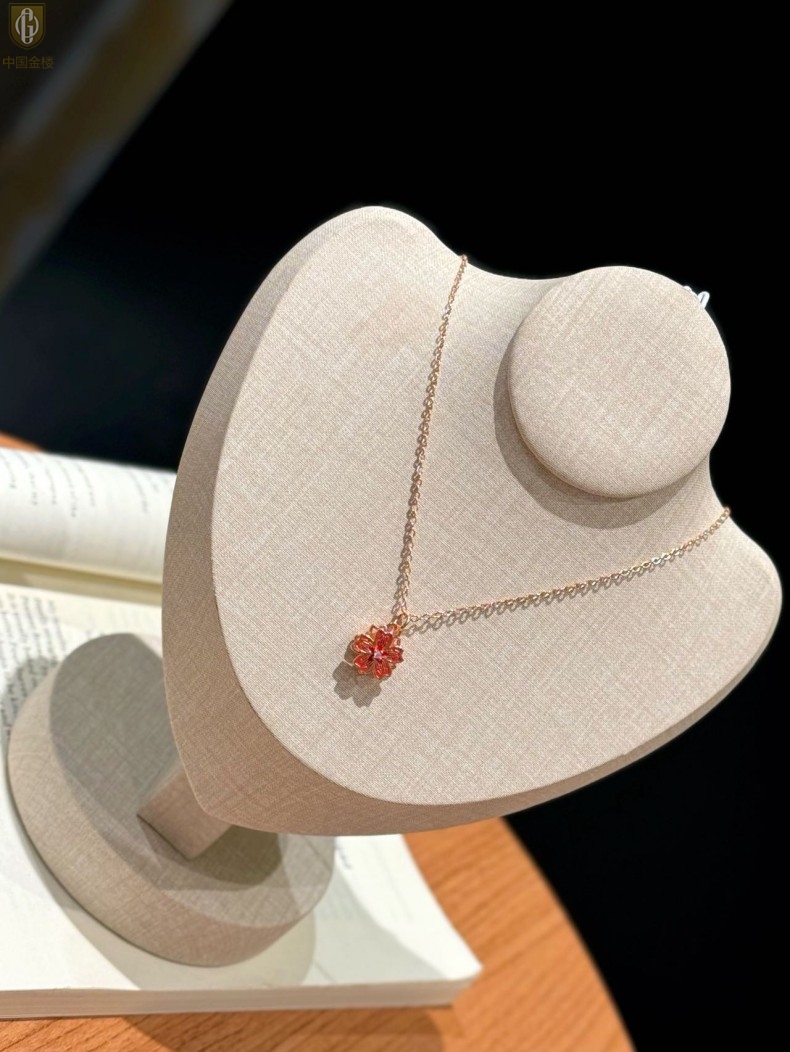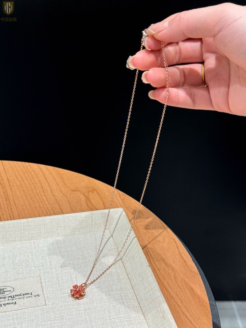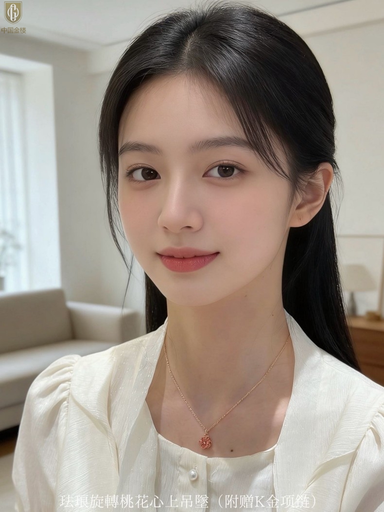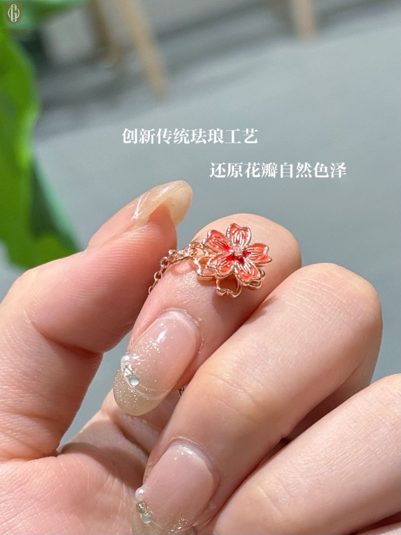 【品名】中国金楼珐琅旋转桃花心上吊坠(附赠K金项链)
