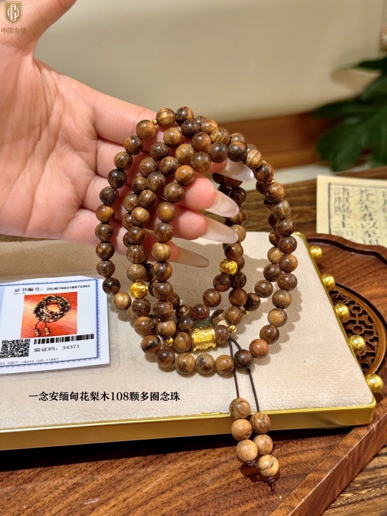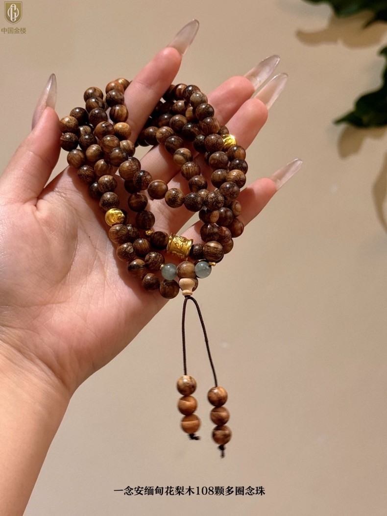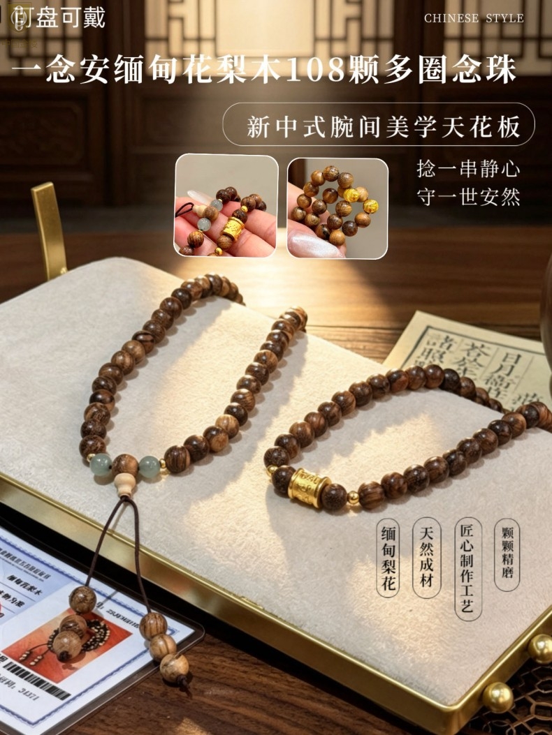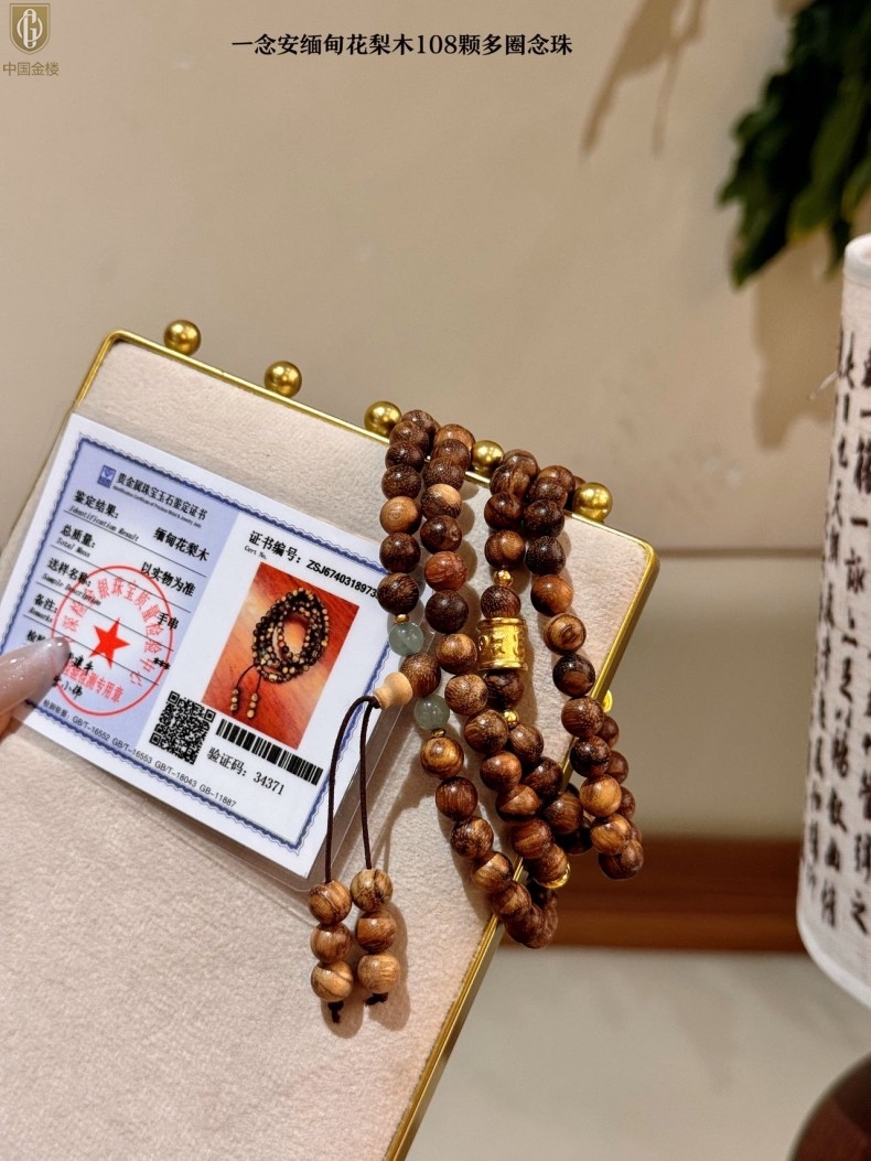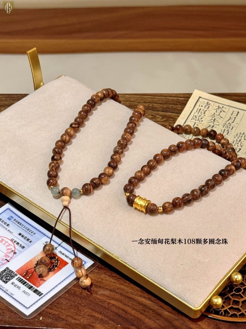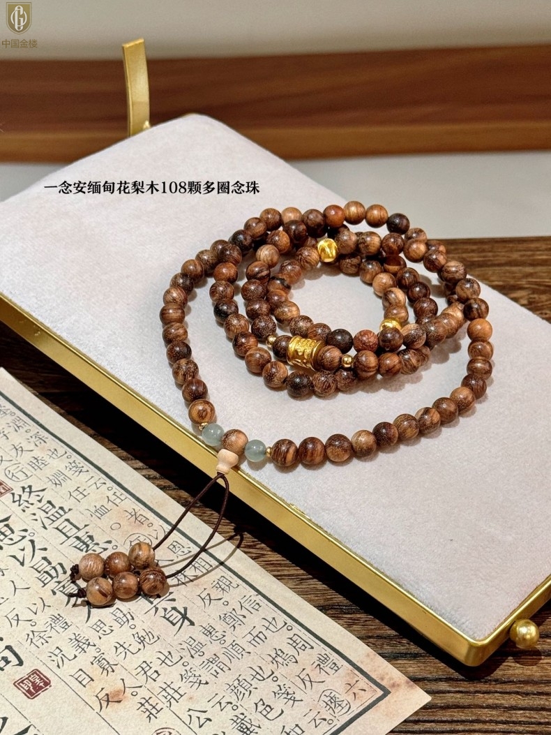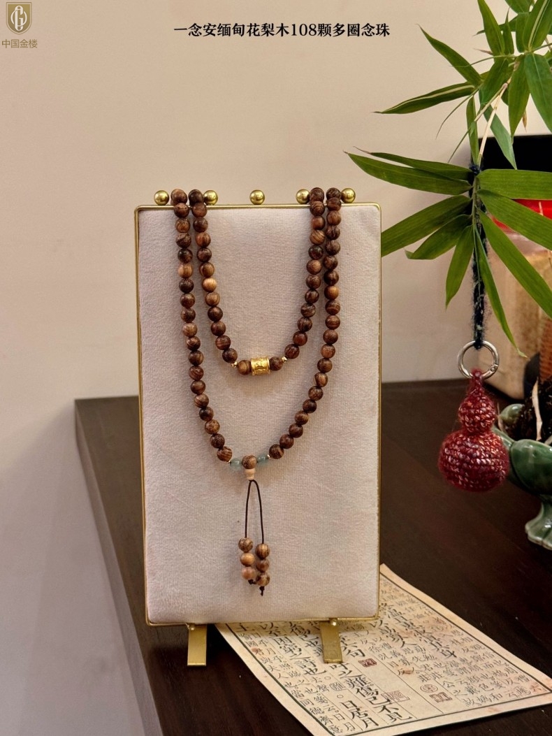 【品名】中国金楼一念安缅甸花梨木108颗多圈念珠