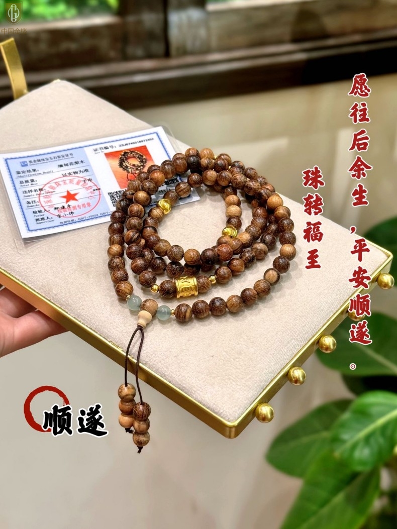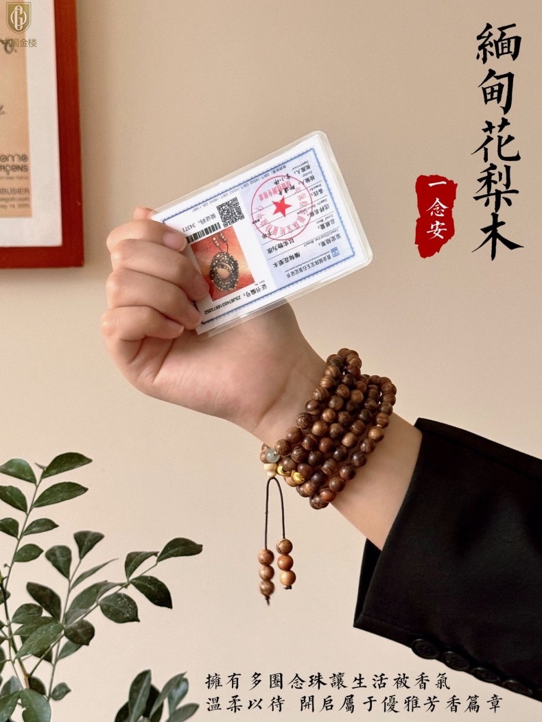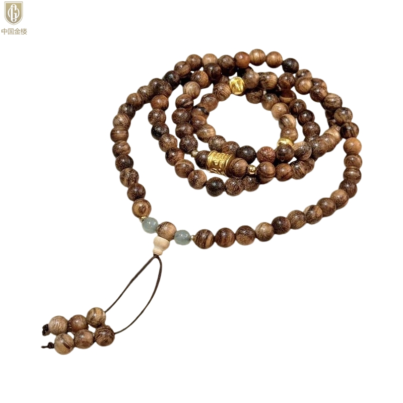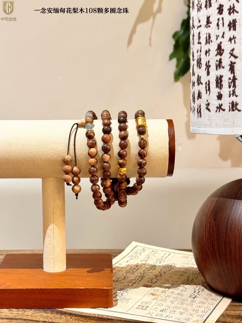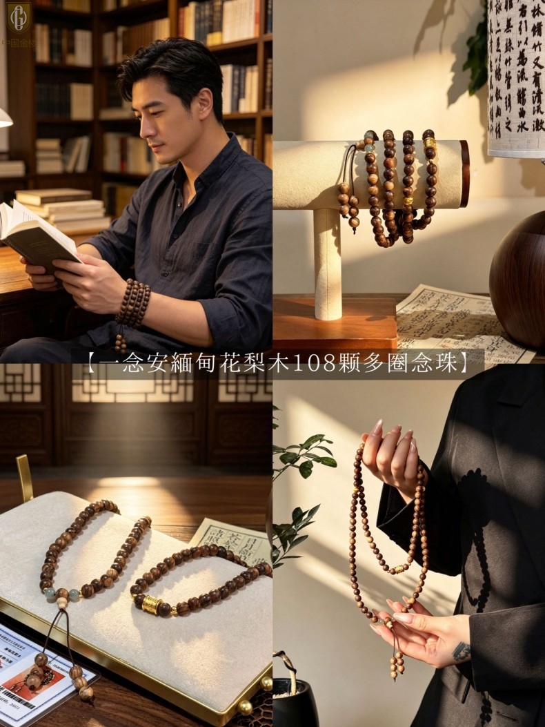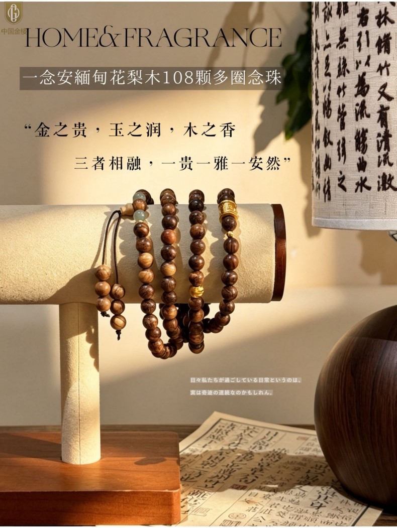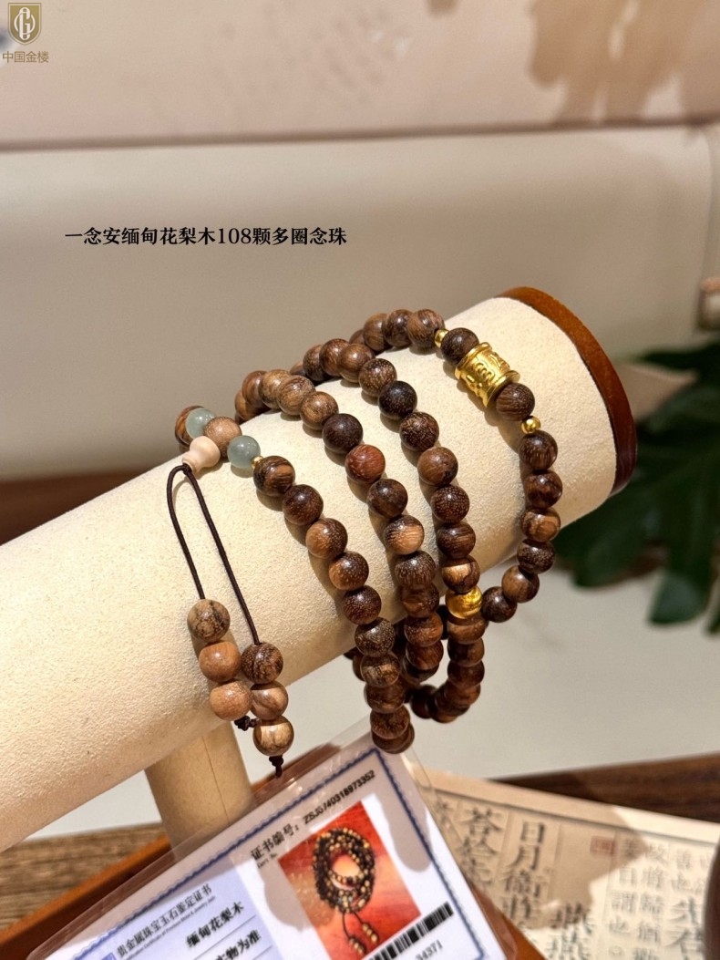 【品名】中国金楼一念安缅甸花梨木108颗多圈念珠
