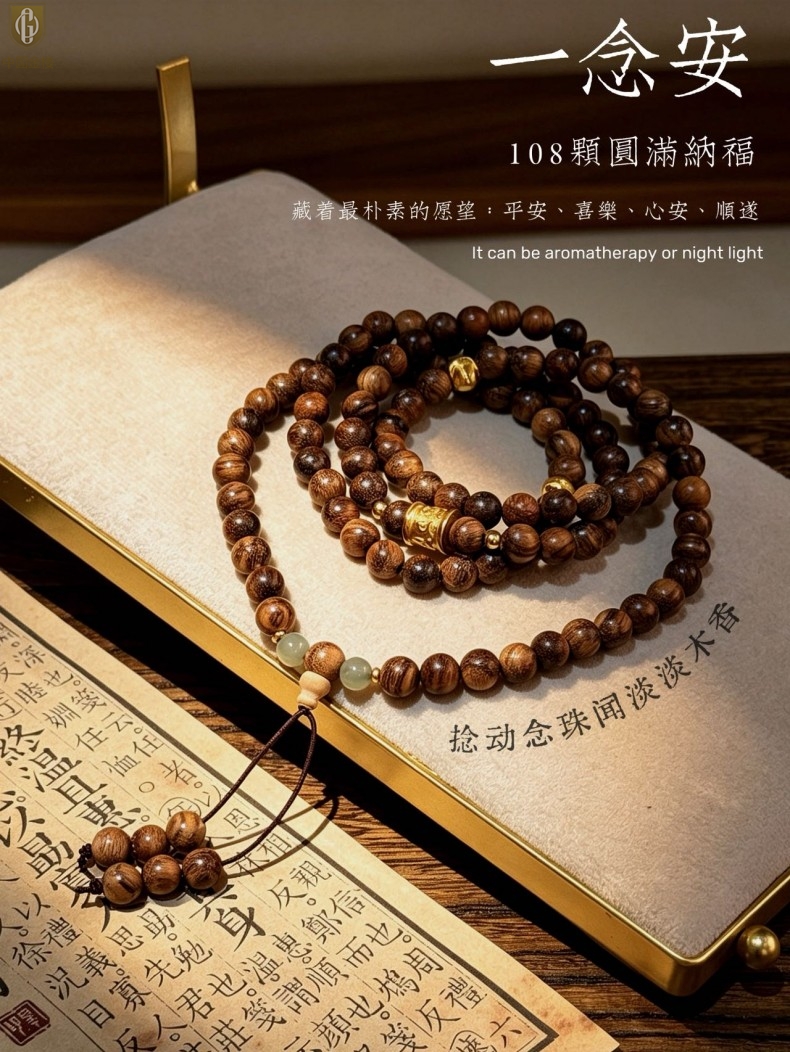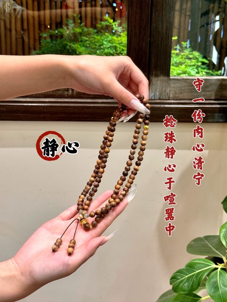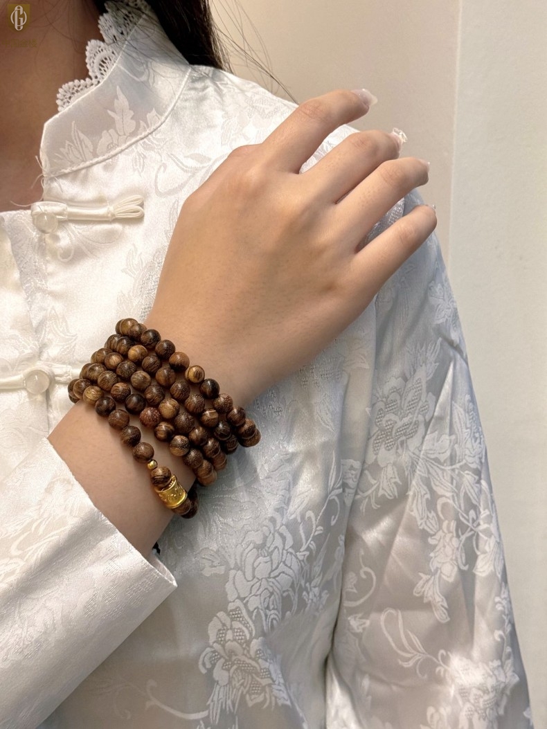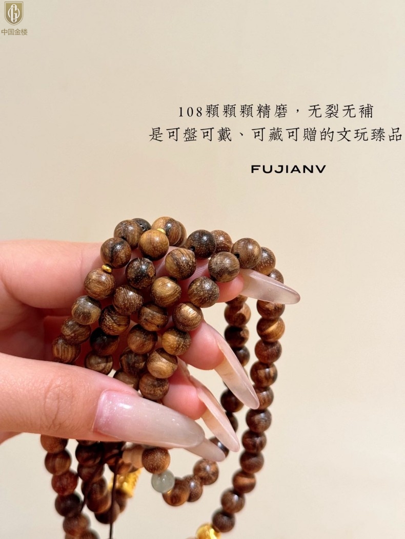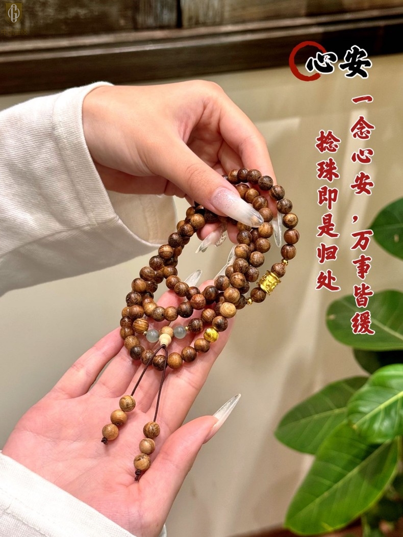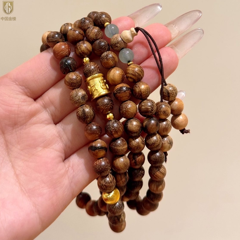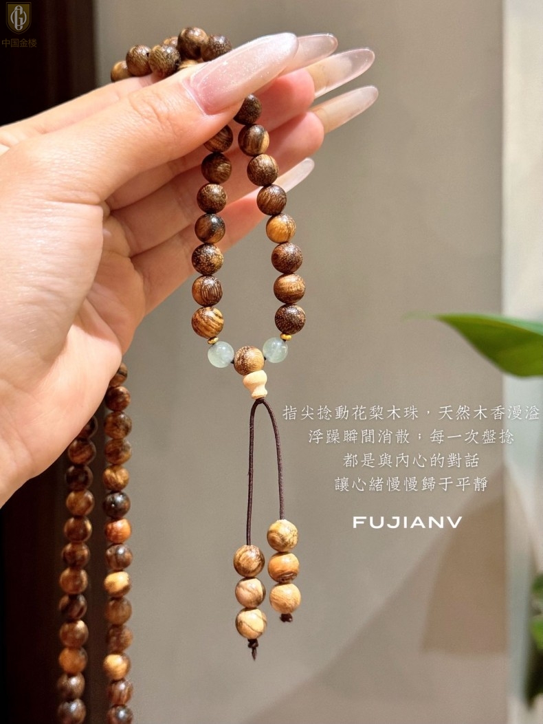 【品名】中国金楼一念安缅甸花梨木108颗多圈念珠