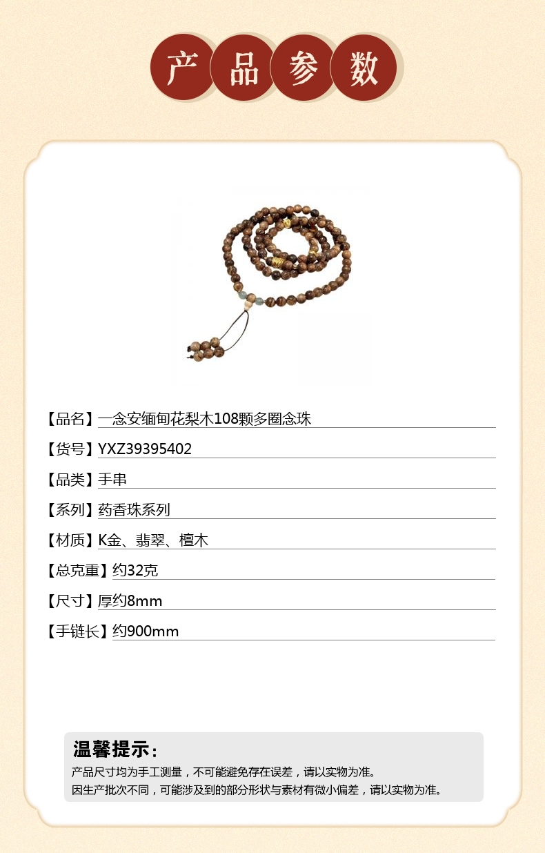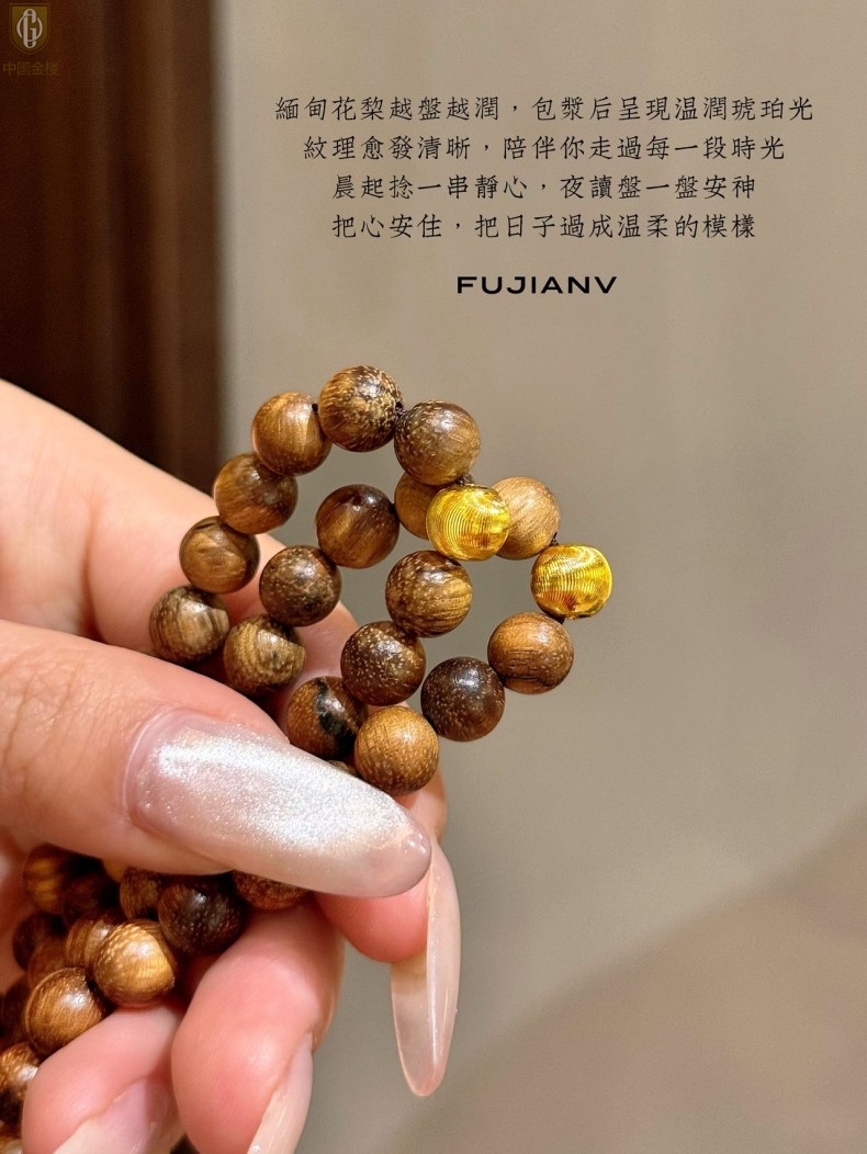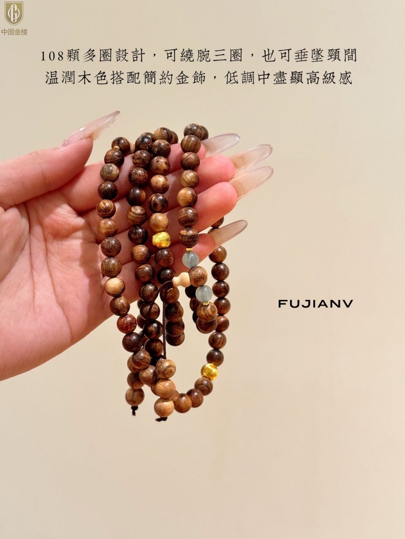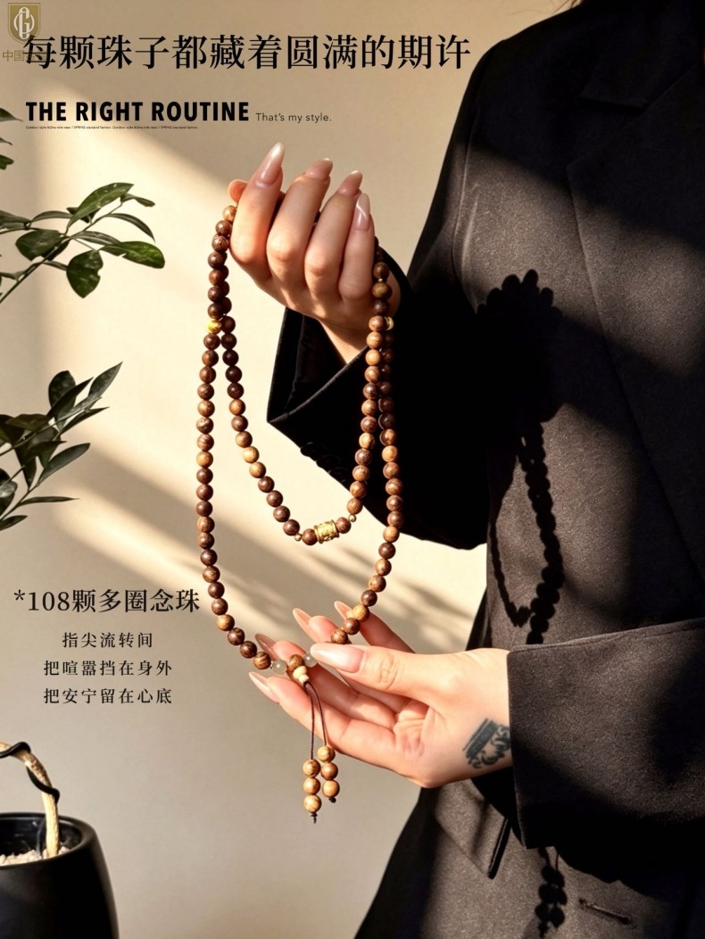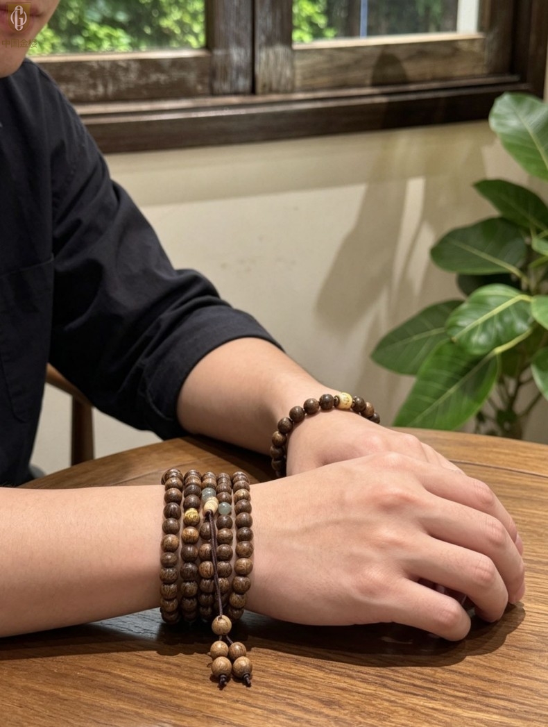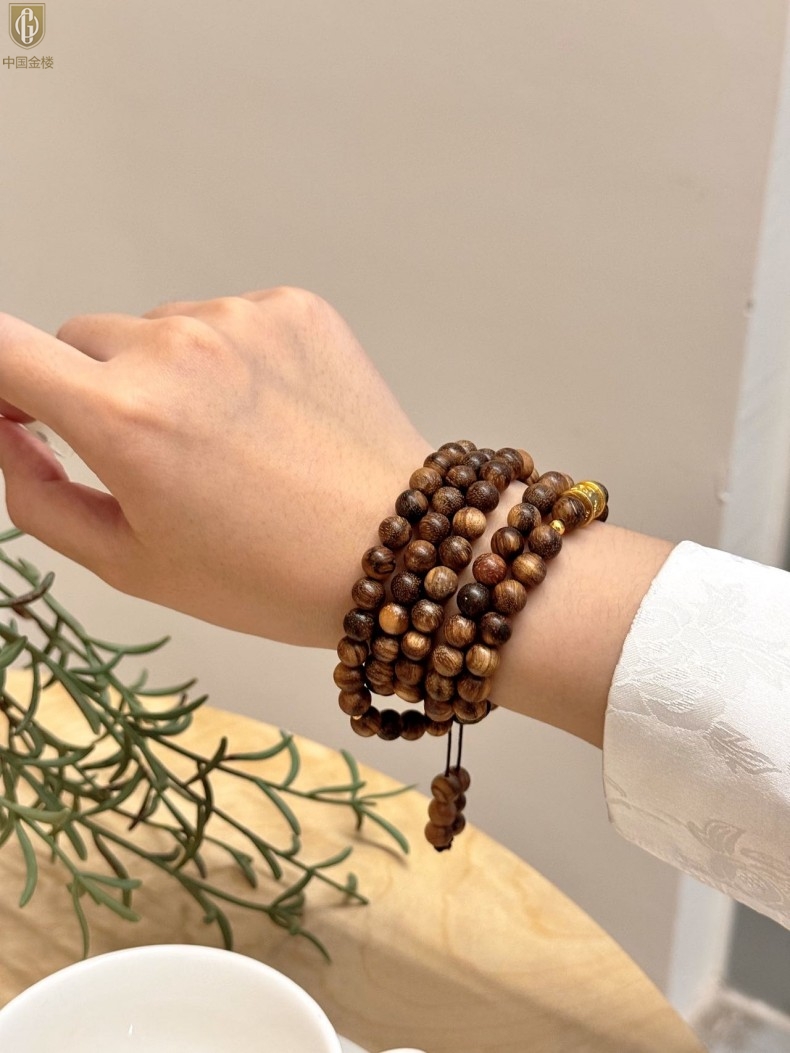 【品名】中国金楼一念安缅甸花梨木108颗多圈念珠
