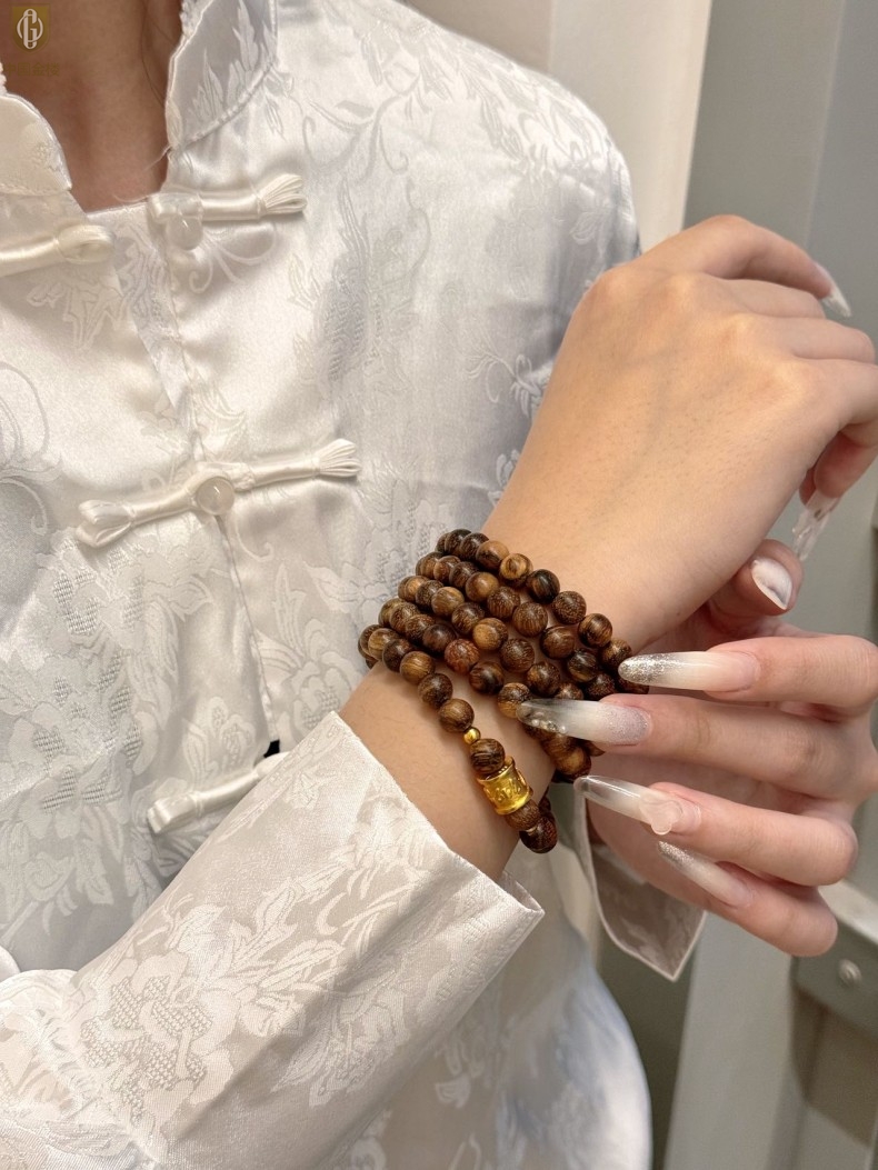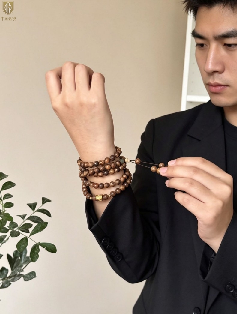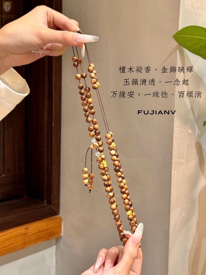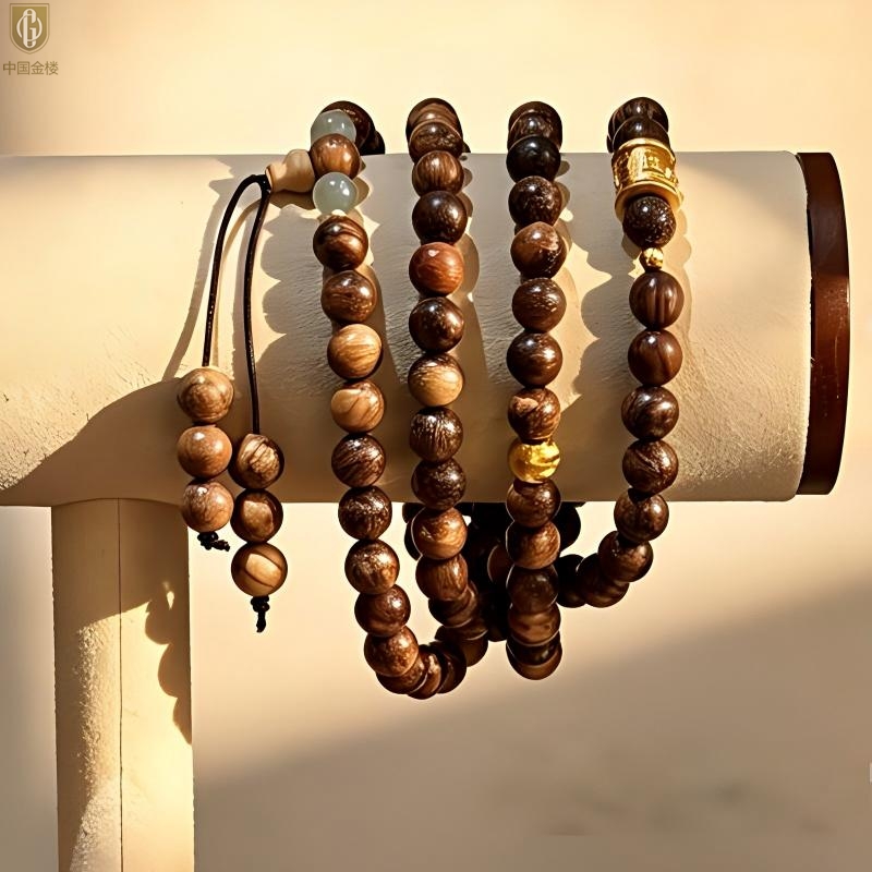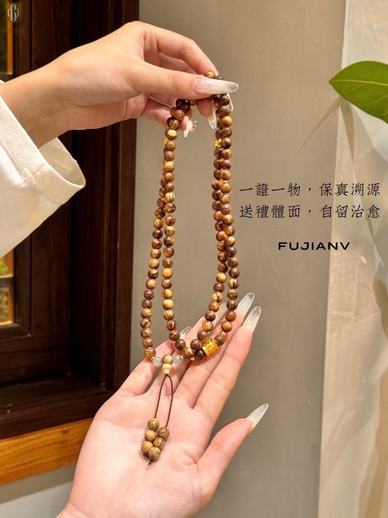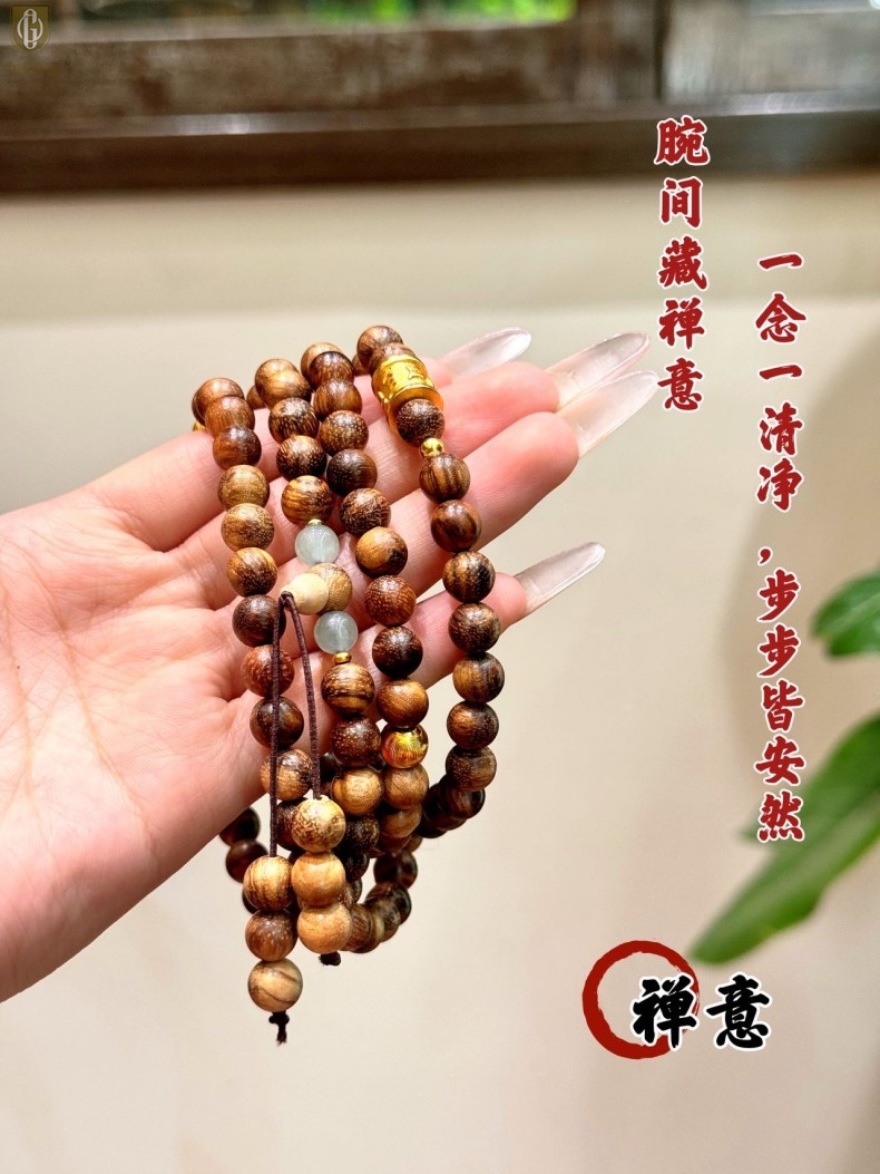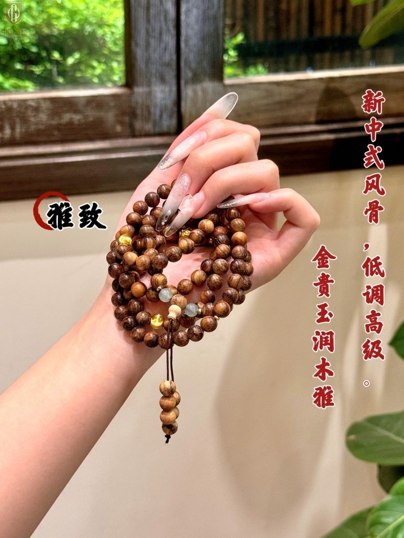 【品名】中国金楼一念安缅甸花梨木108颗多圈念珠