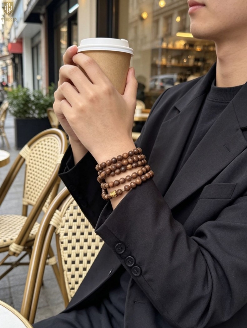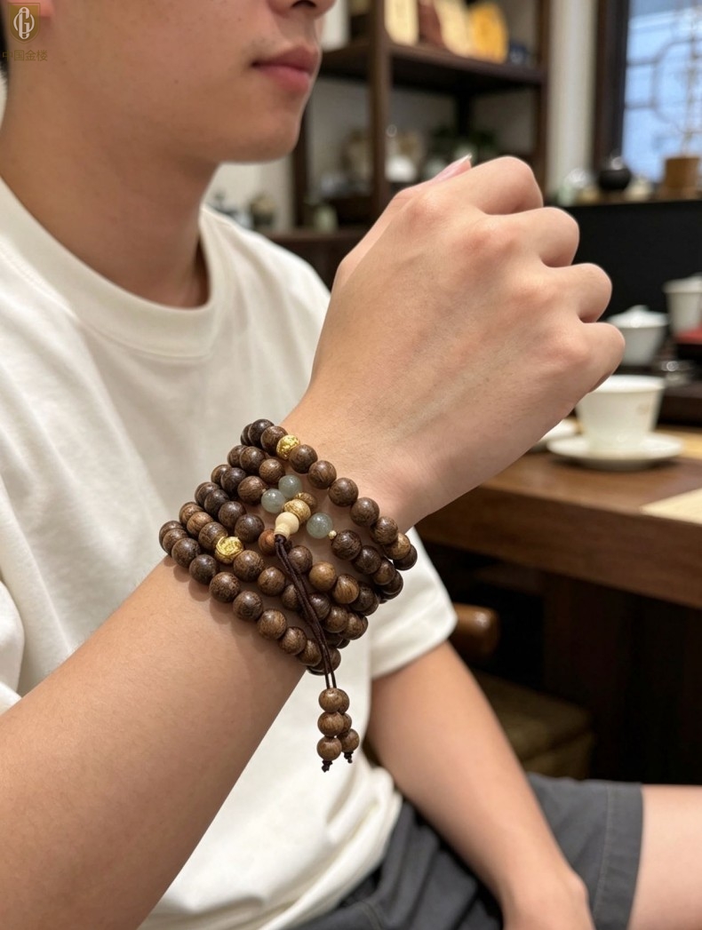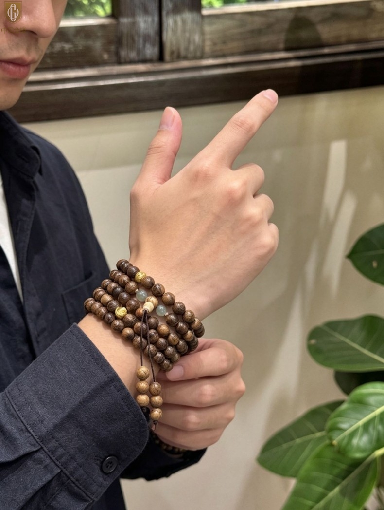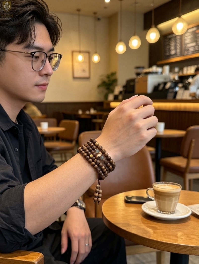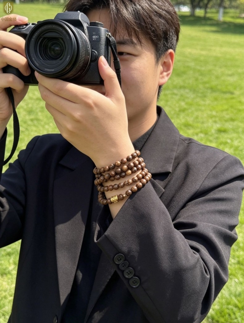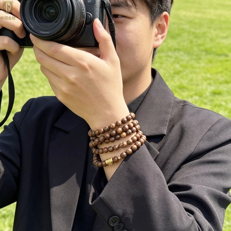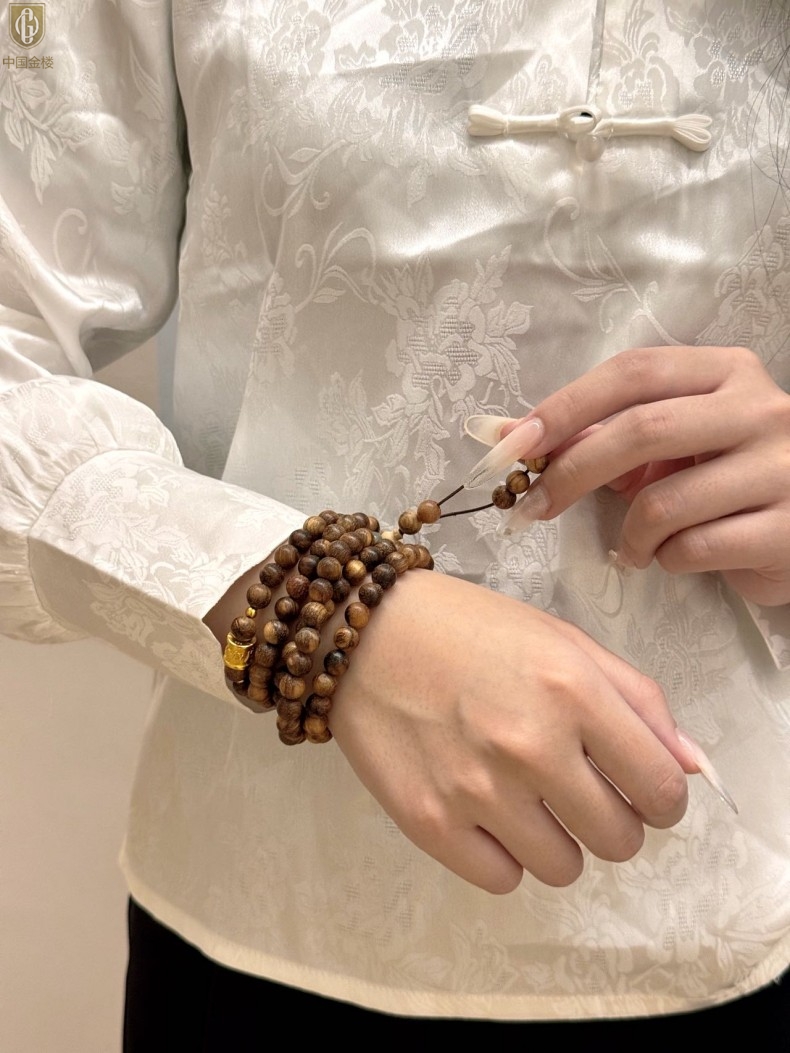 【品名】中国金楼一念安缅甸花梨木108颗多圈念珠