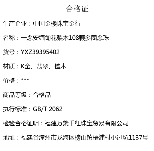 【套装包含】首饰+传承礼盒+礼品袋+国检证书+质保单+价签