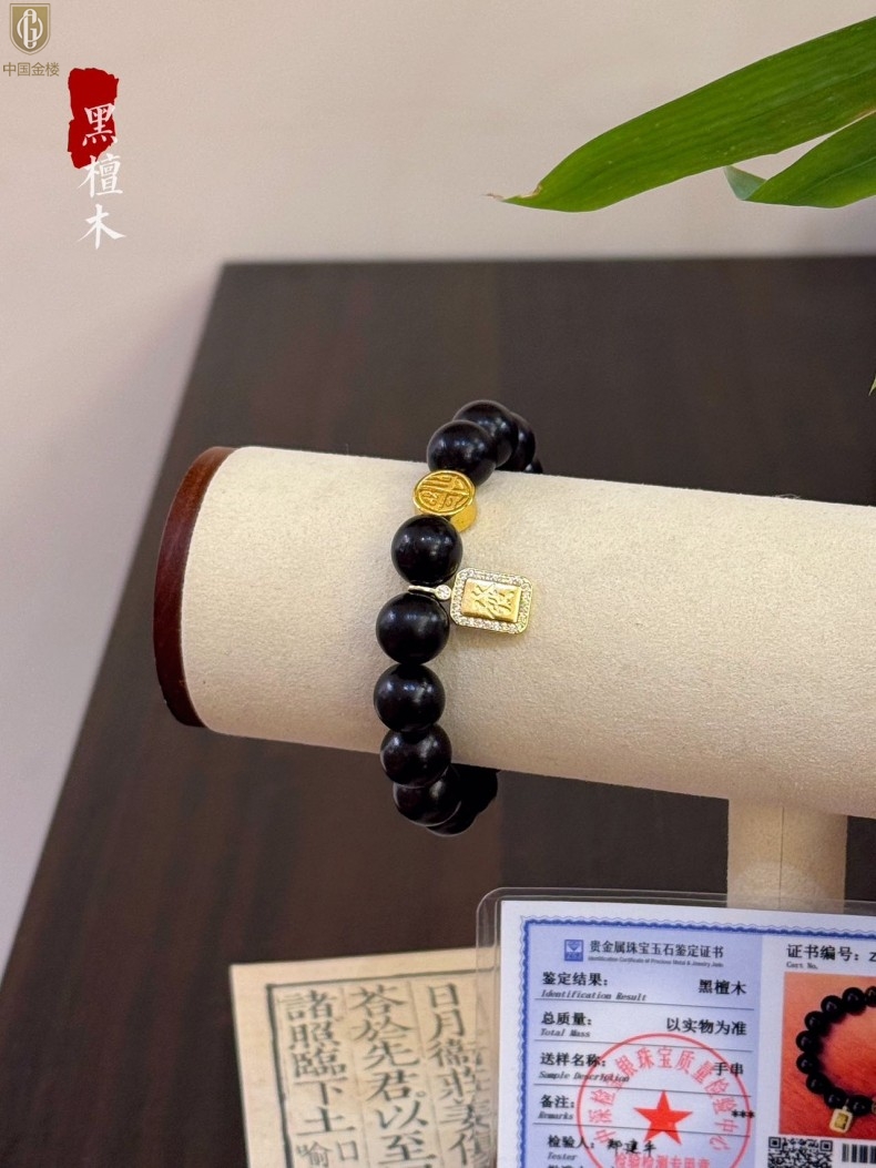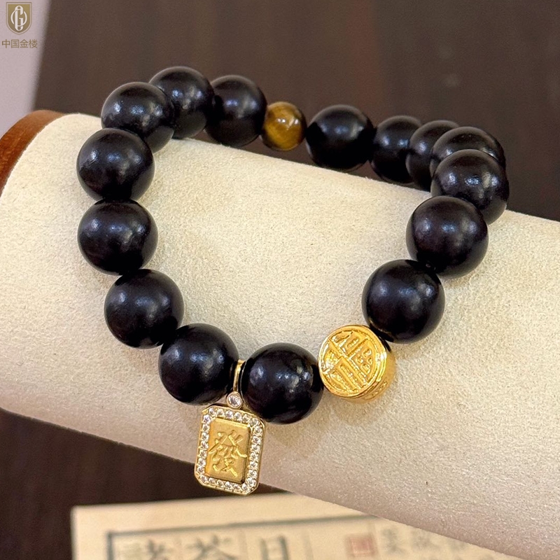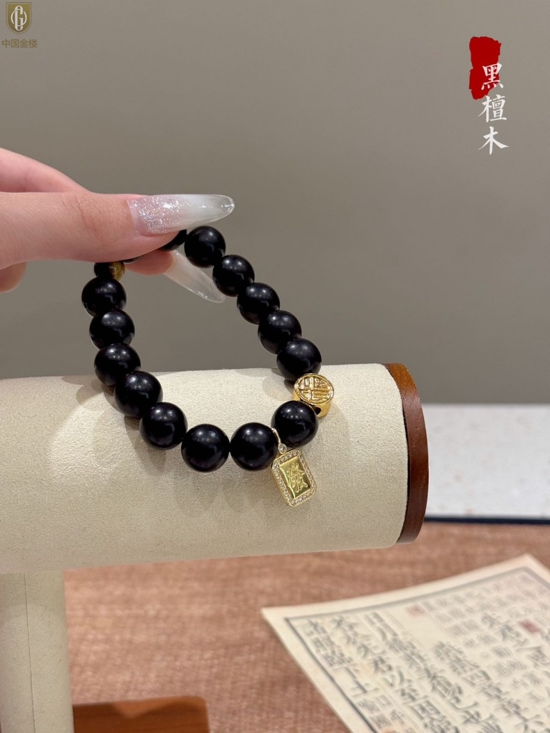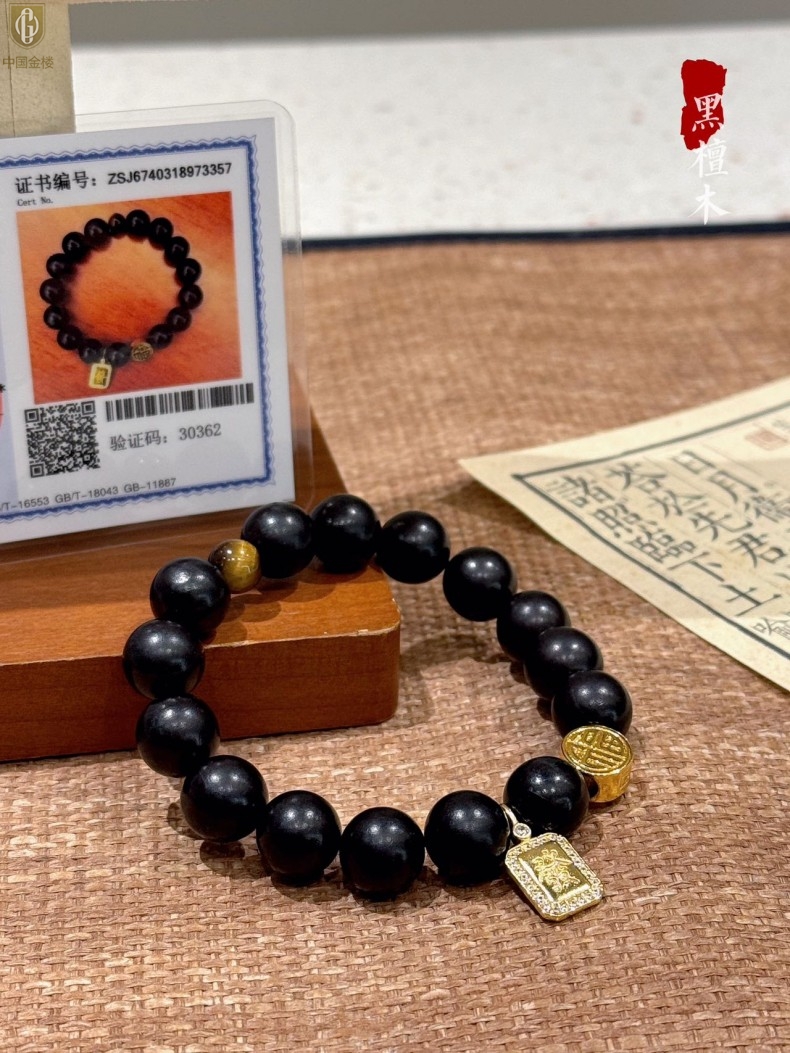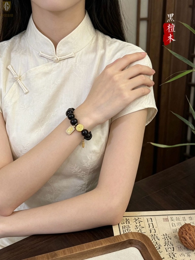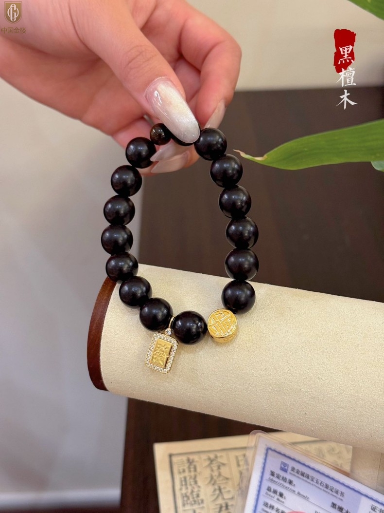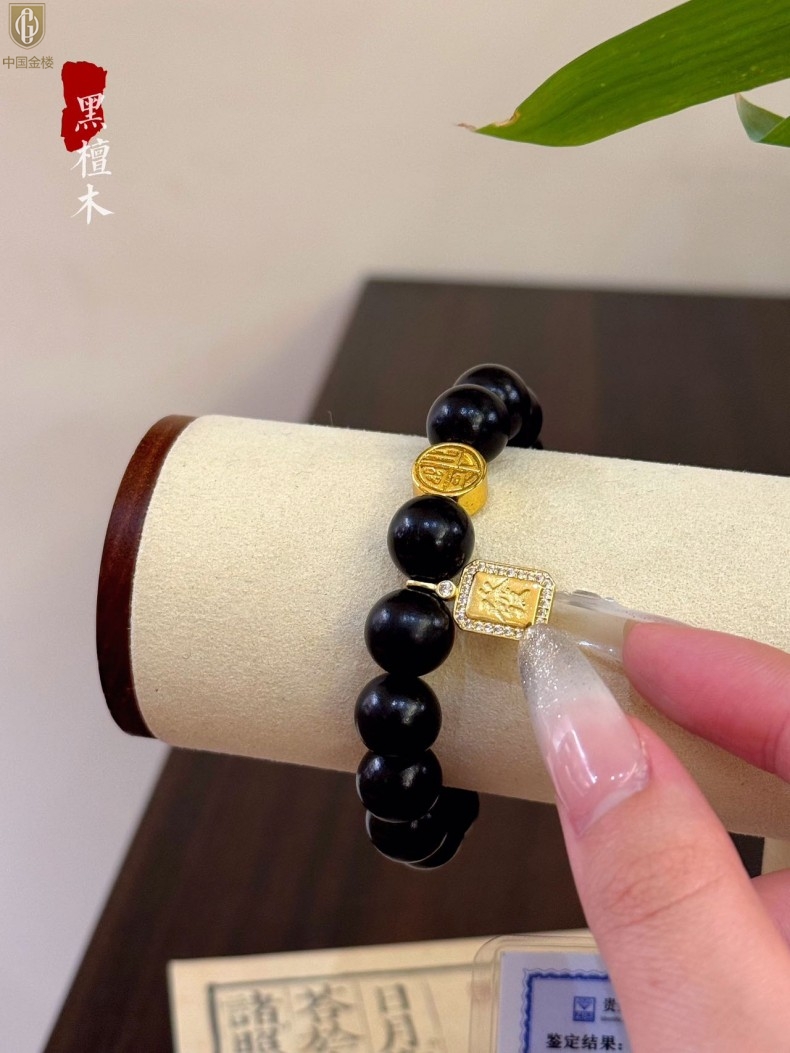 【品名】中国金楼檀金纳福黑檀木发财福牌手串