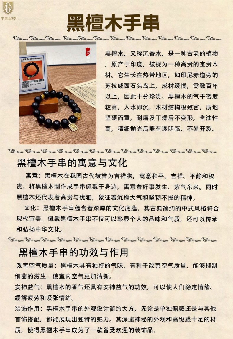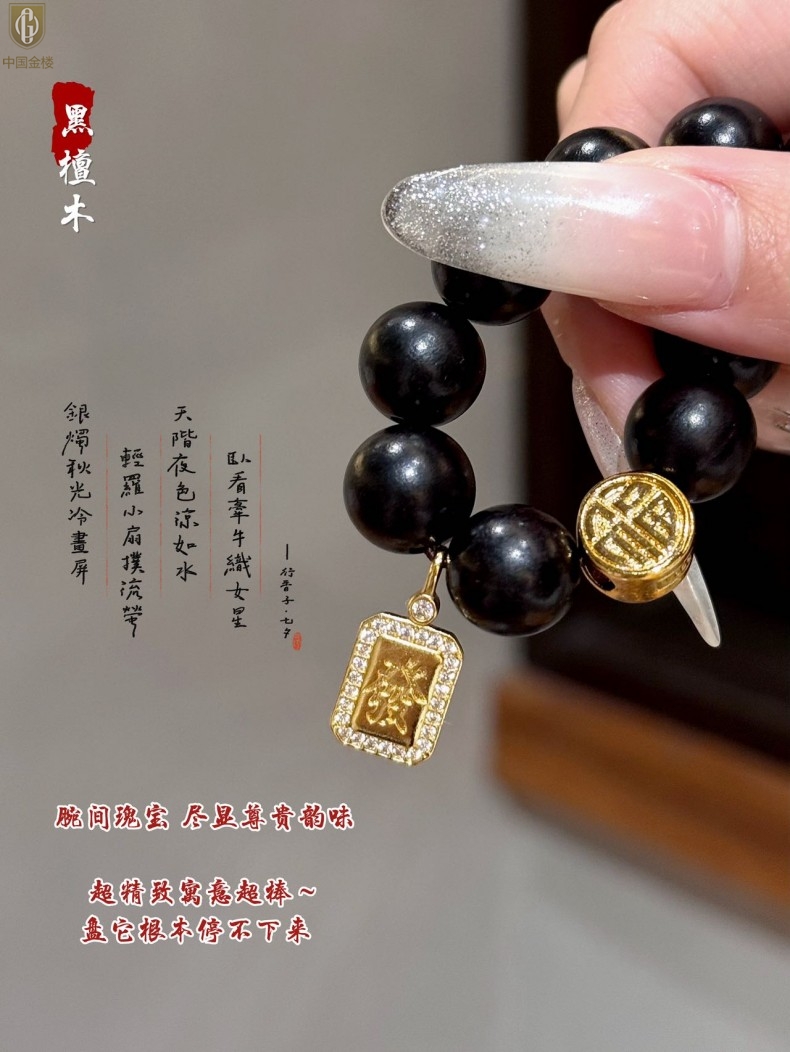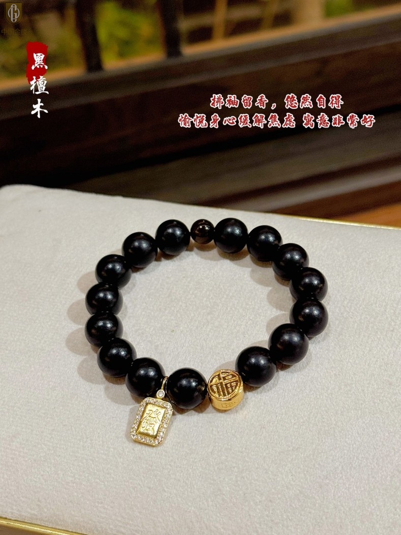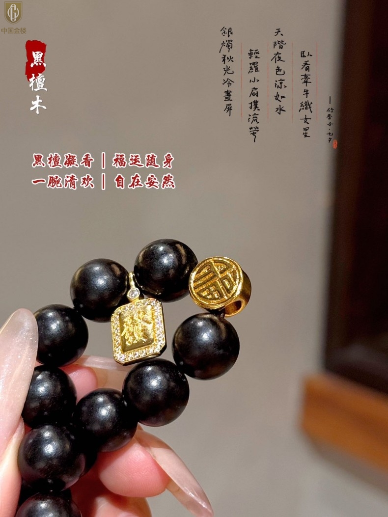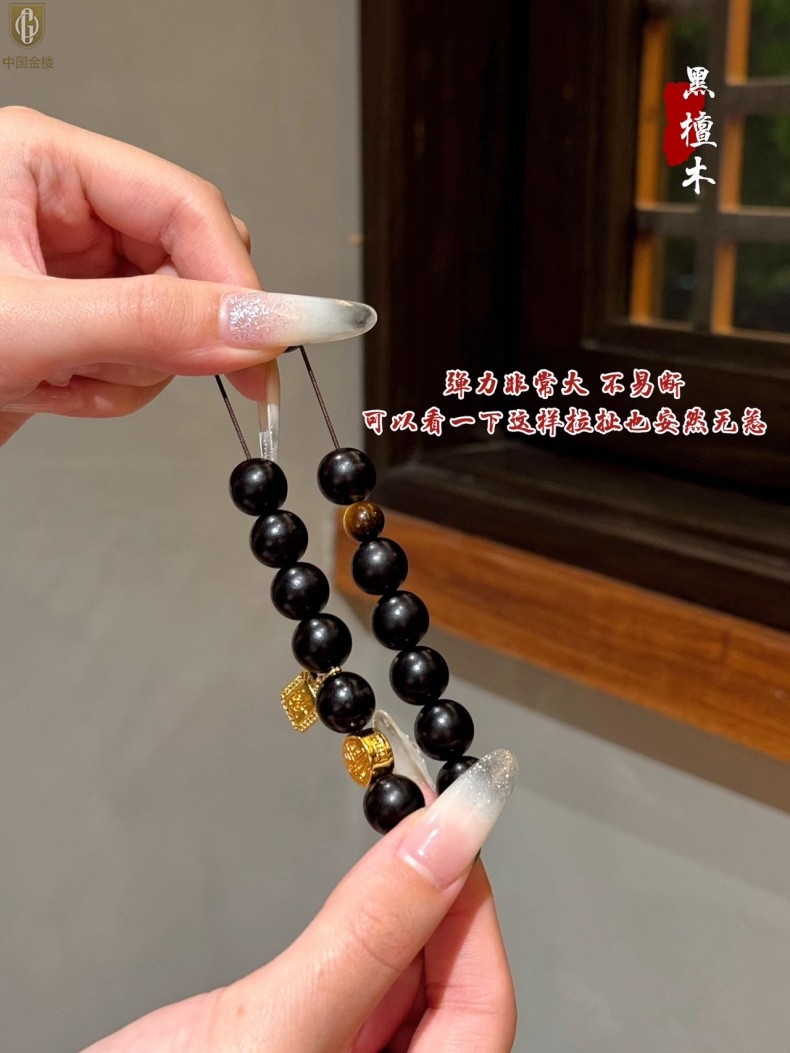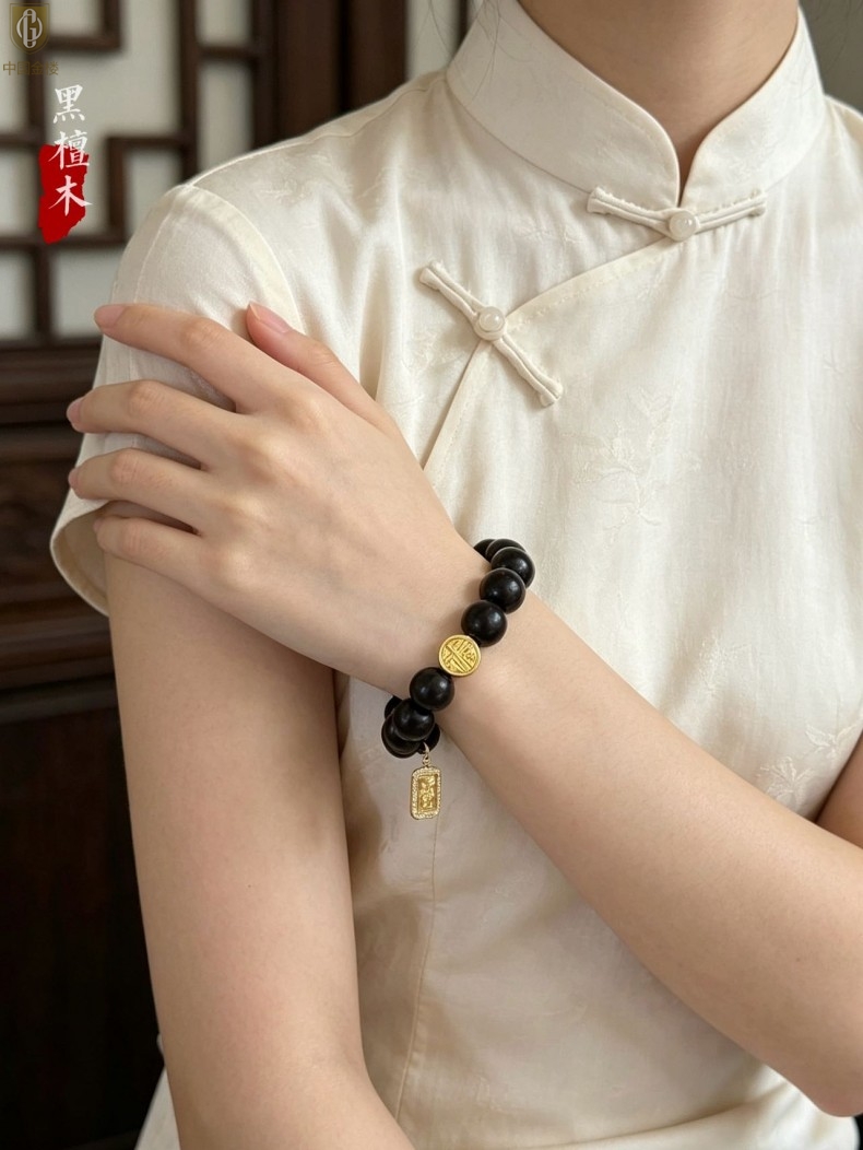 【品名】中国金楼檀金纳福黑檀木发财福牌手串