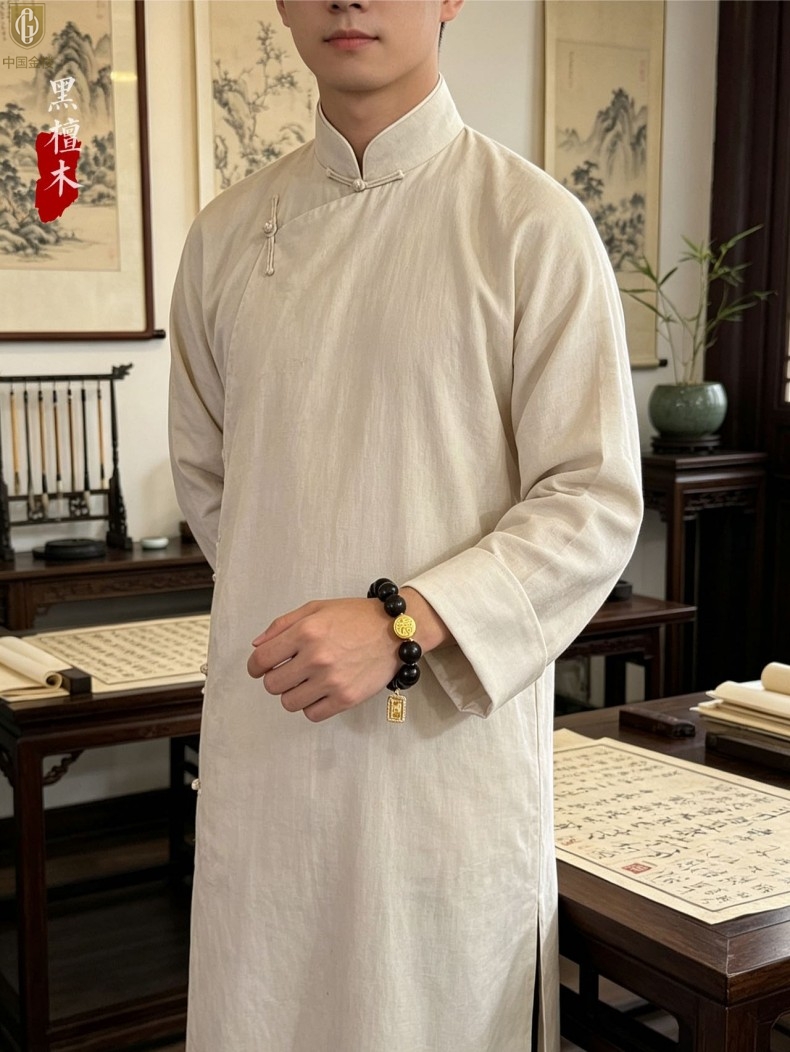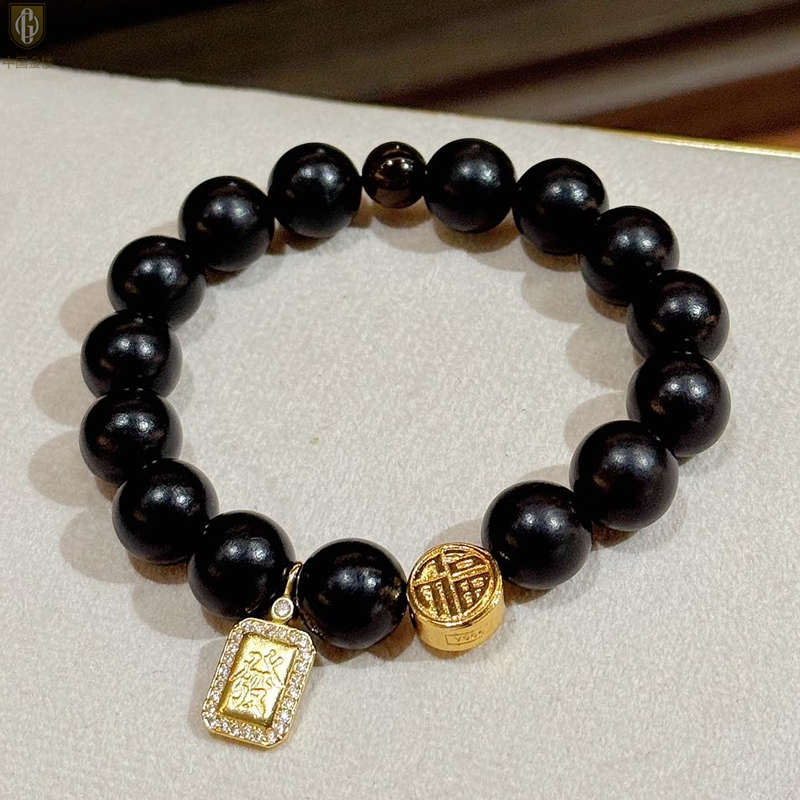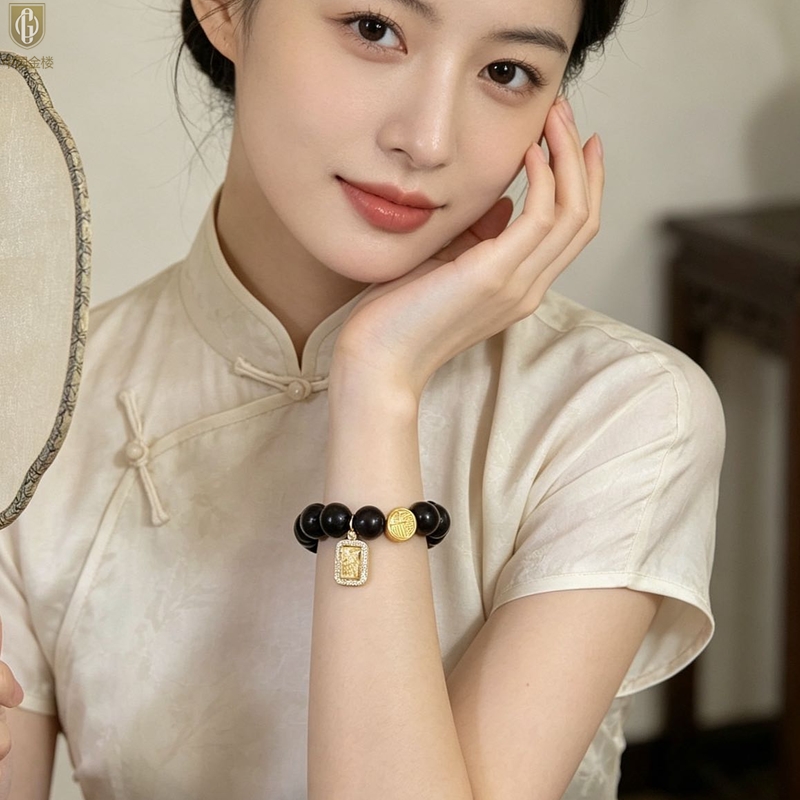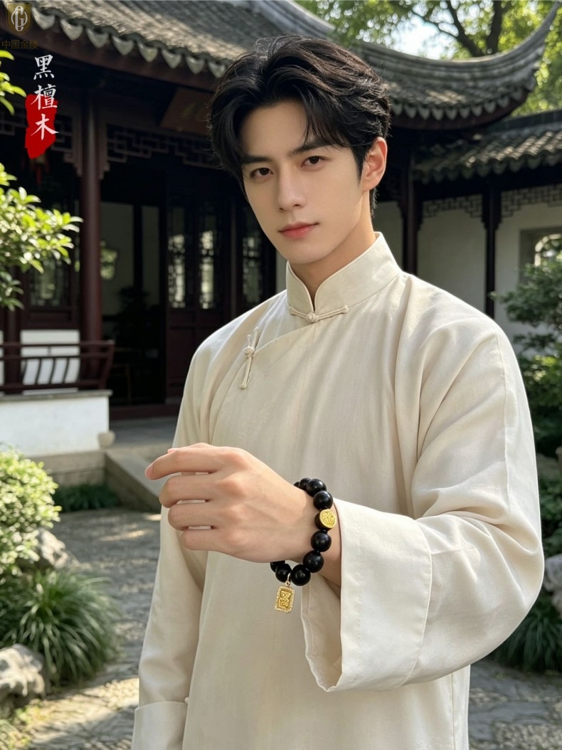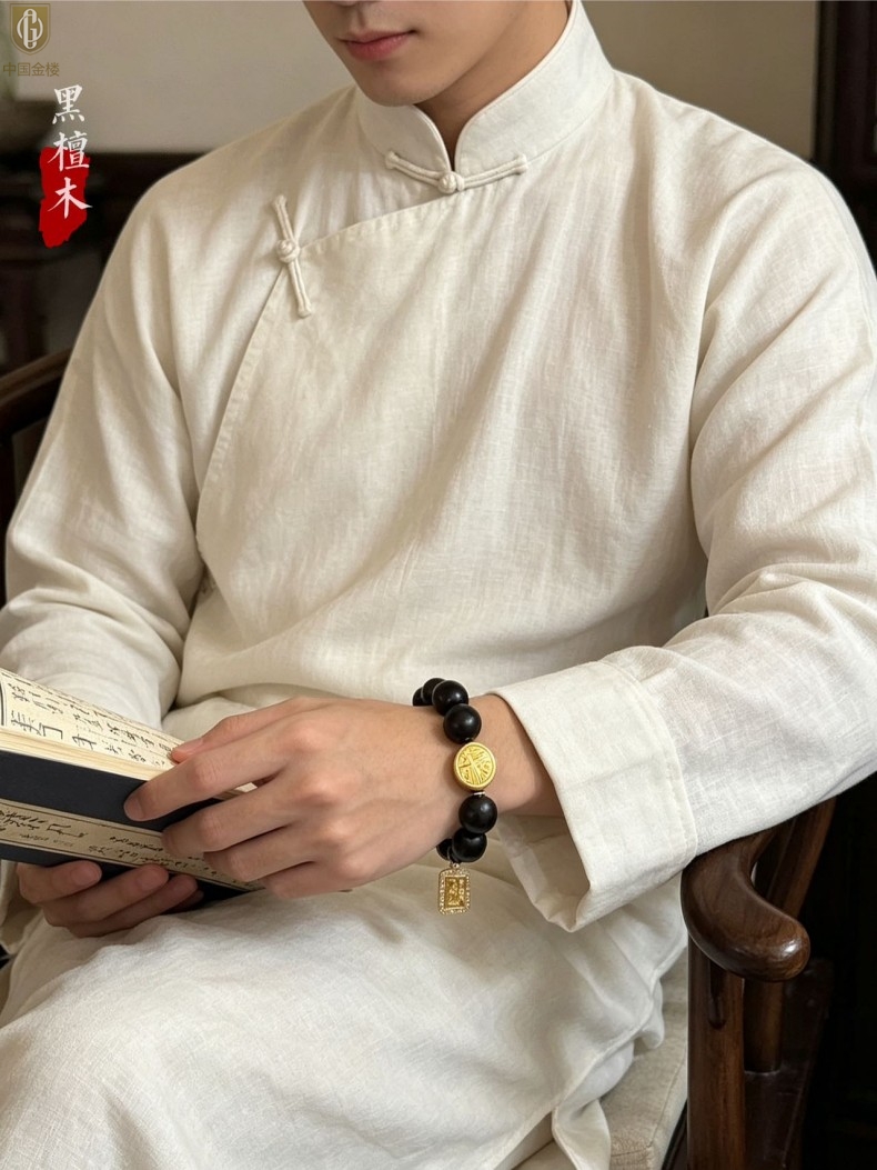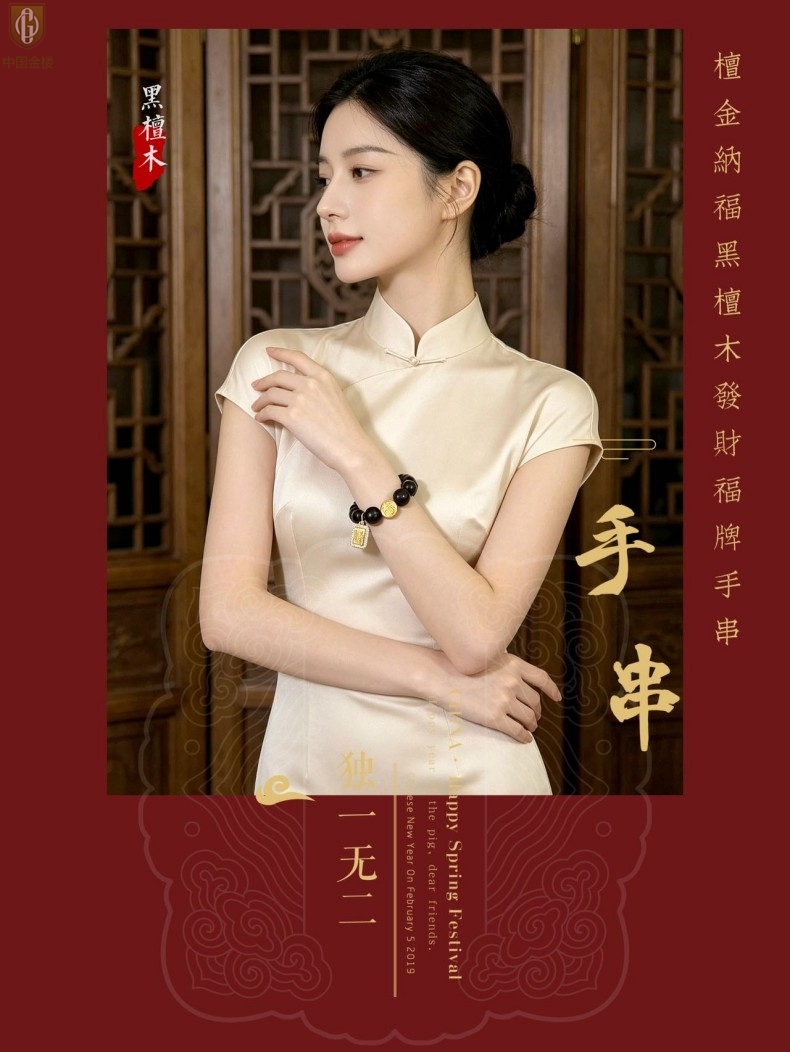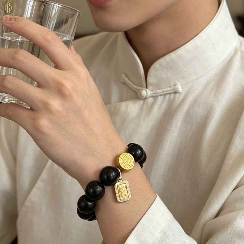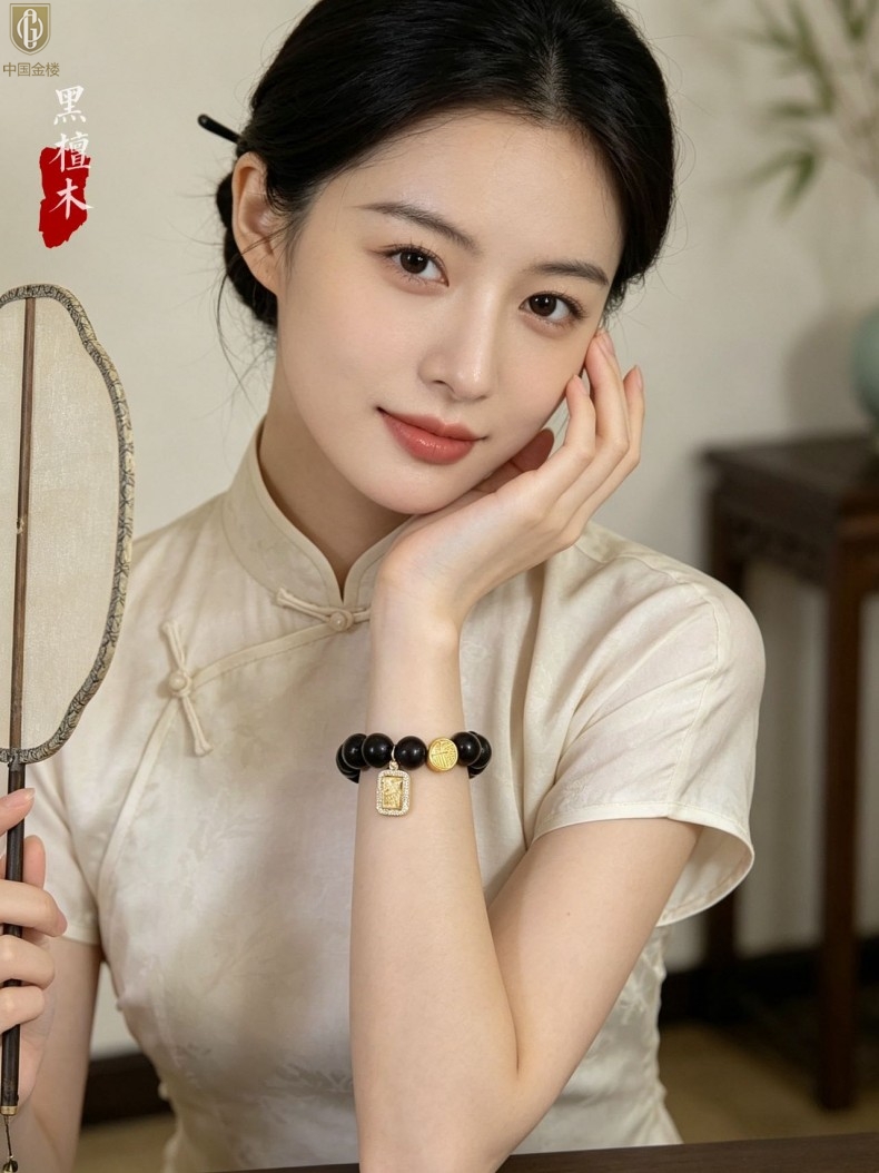 【品名】中国金楼檀金纳福黑檀木发财福牌手串