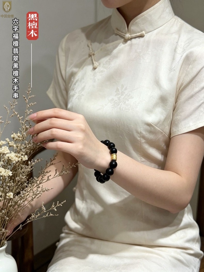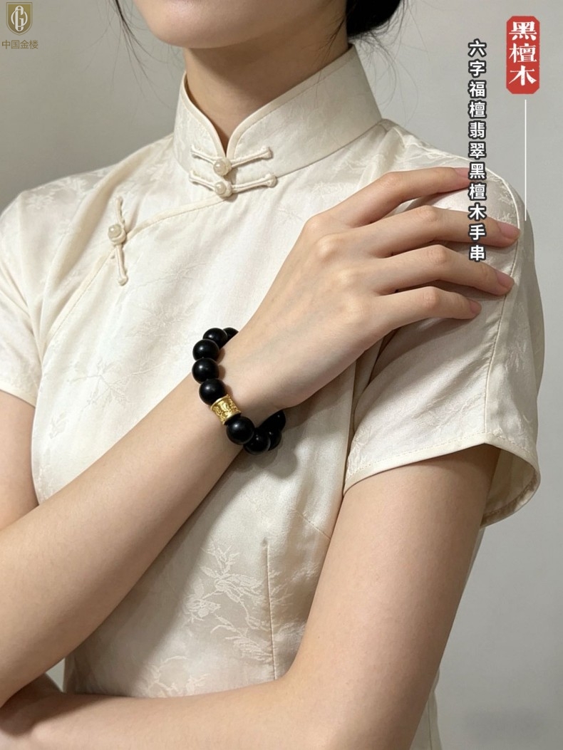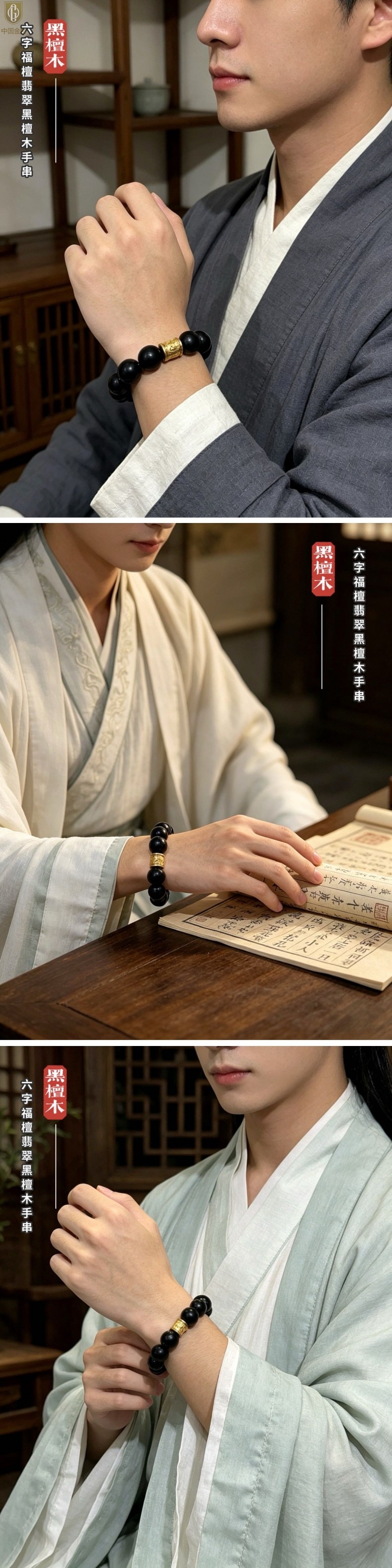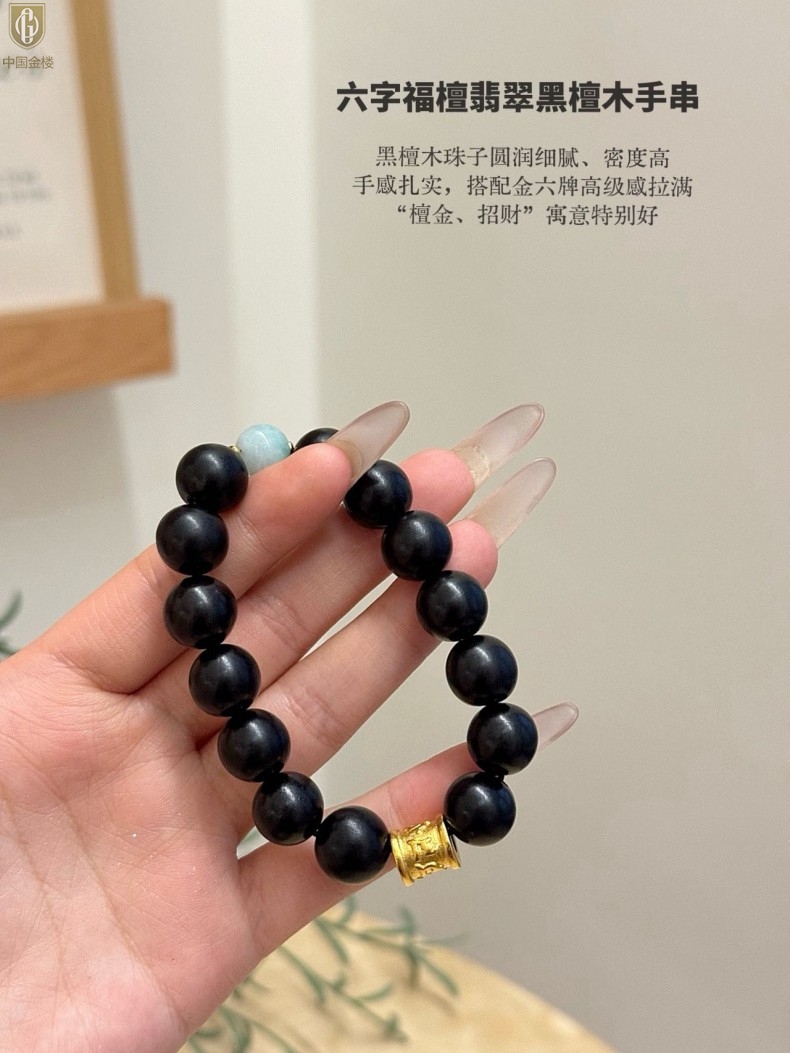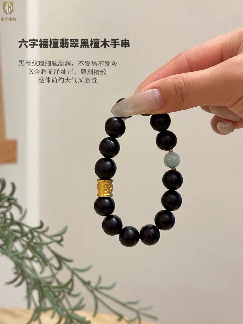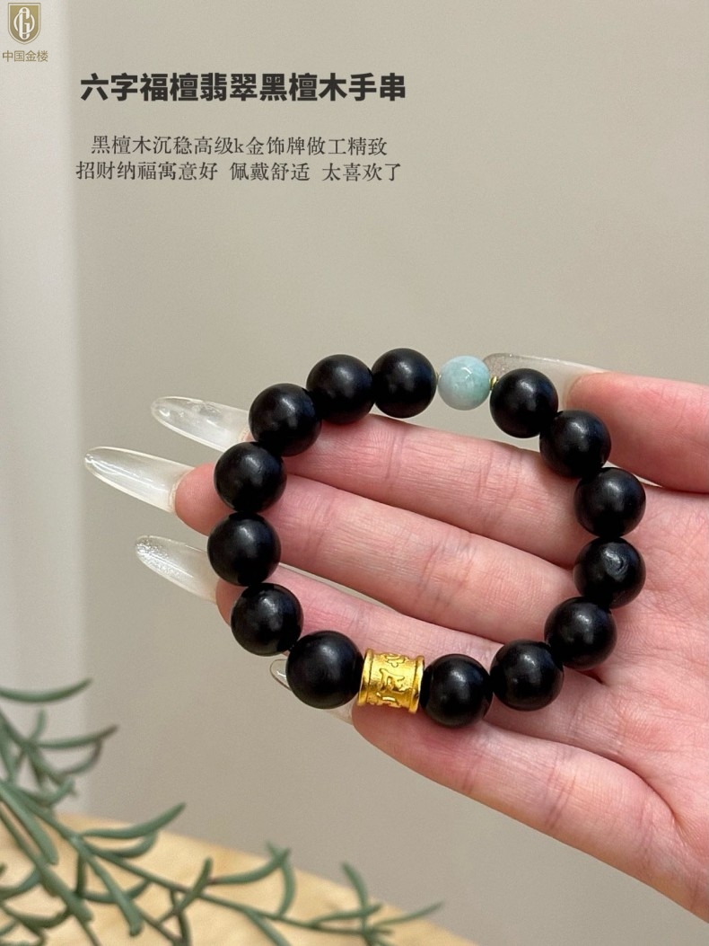 【品名】中国金楼六字福檀翡翠黑檀木手串