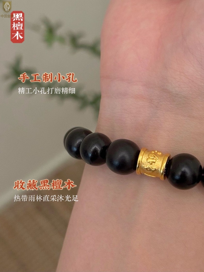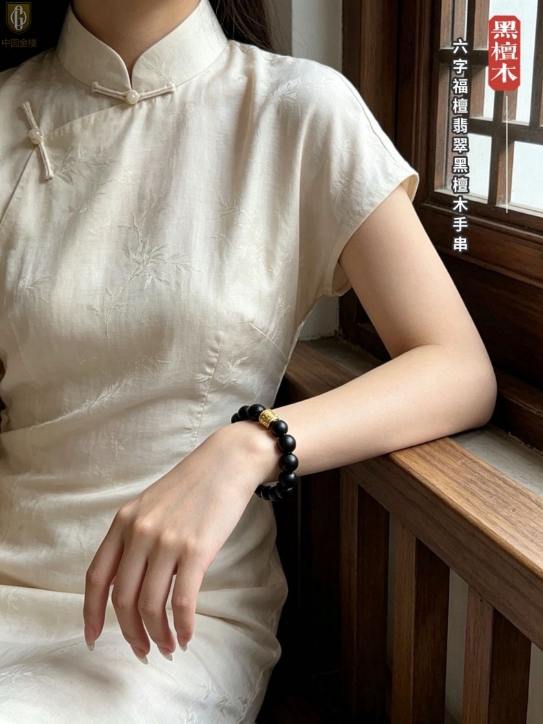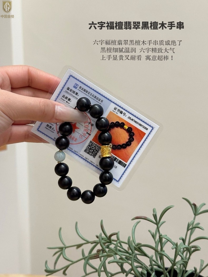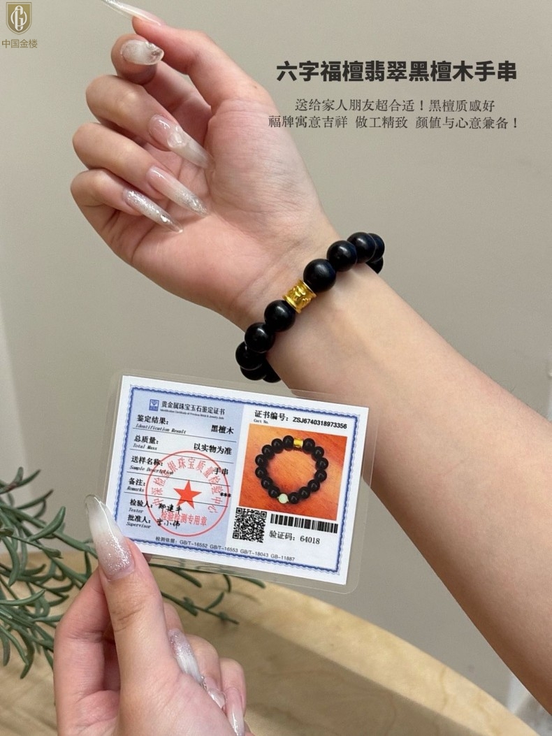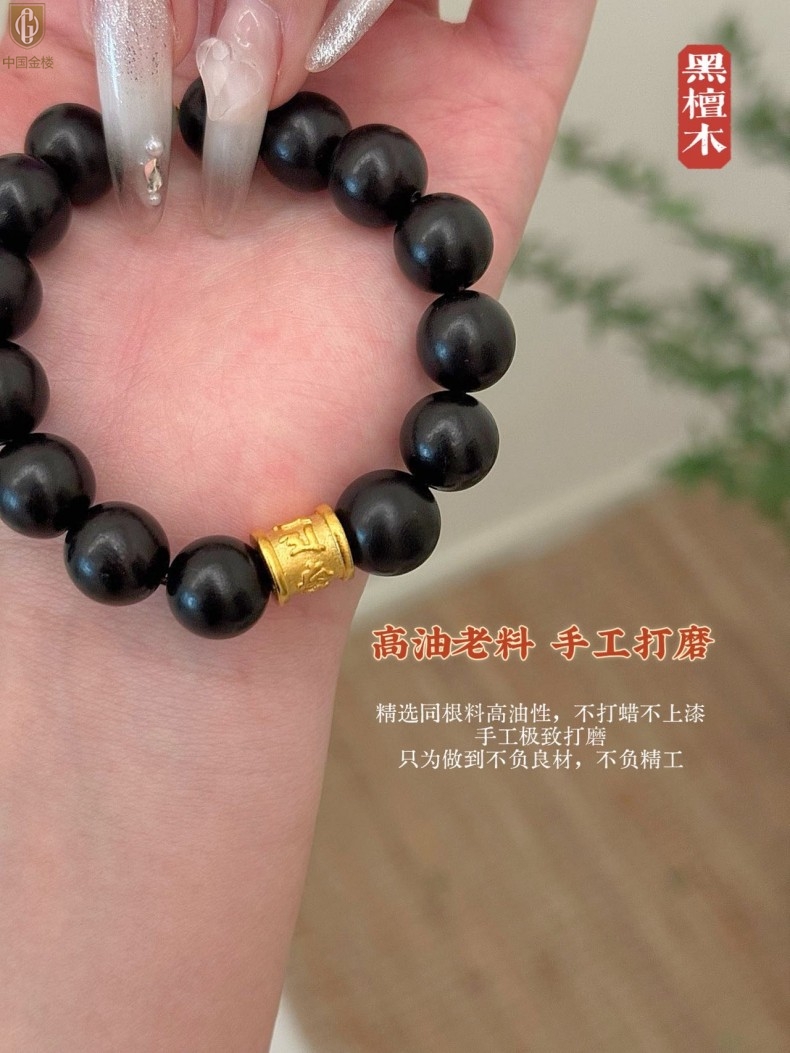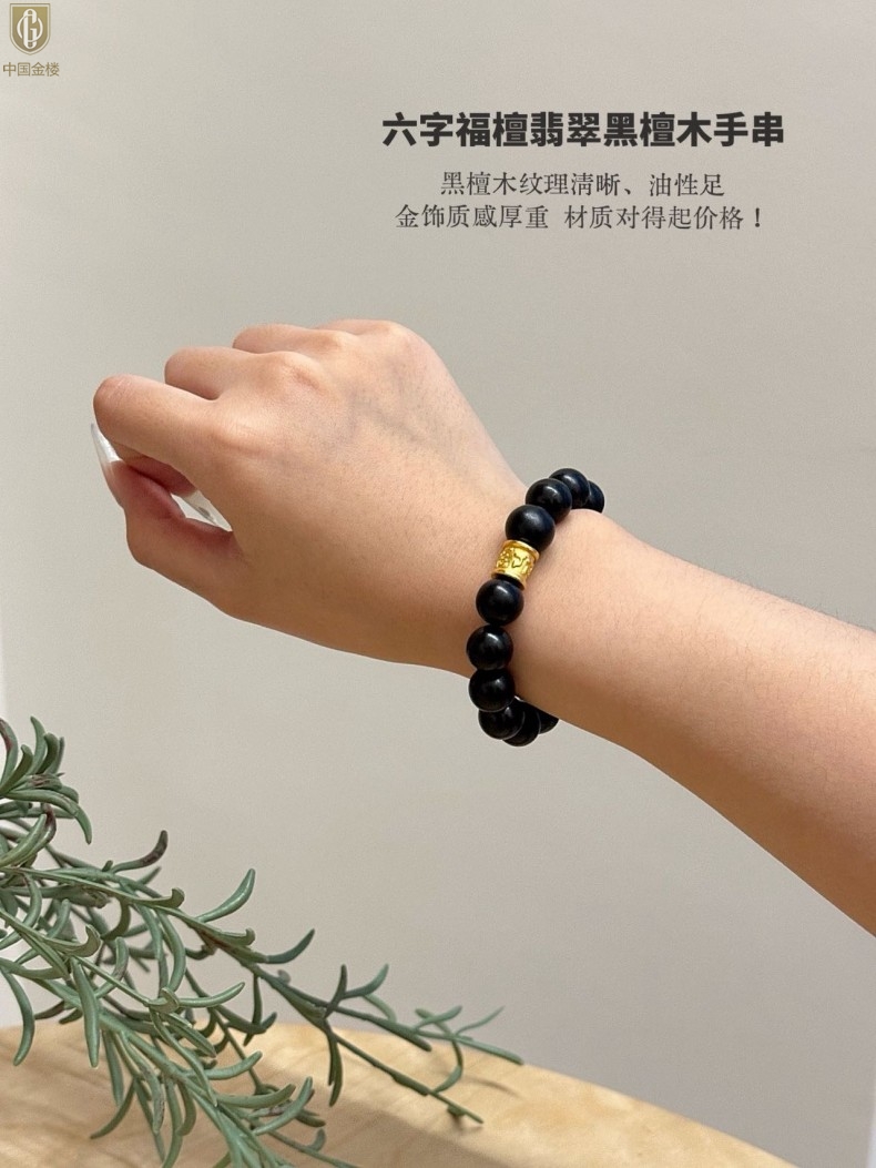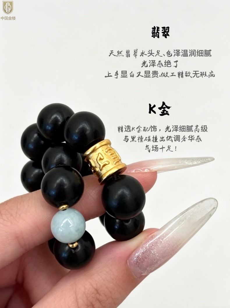 【品名】中国金楼六字福檀翡翠黑檀木手串