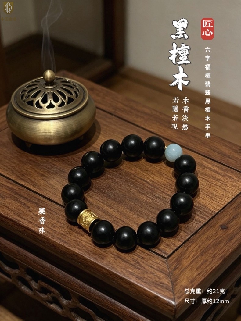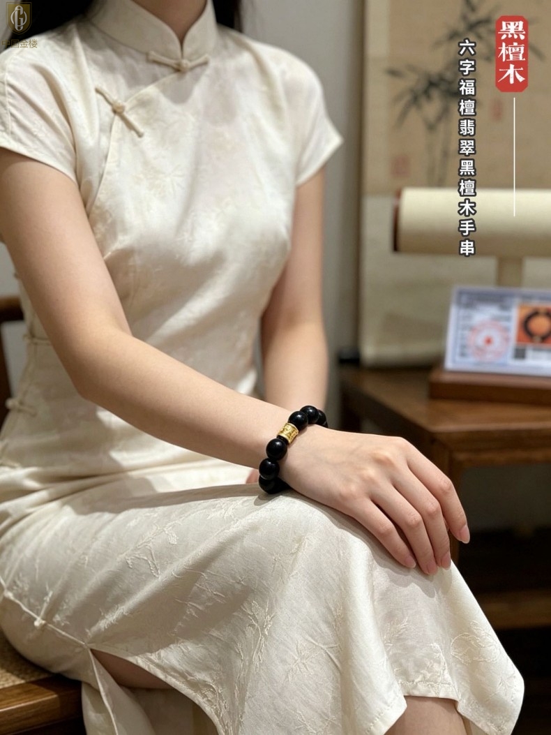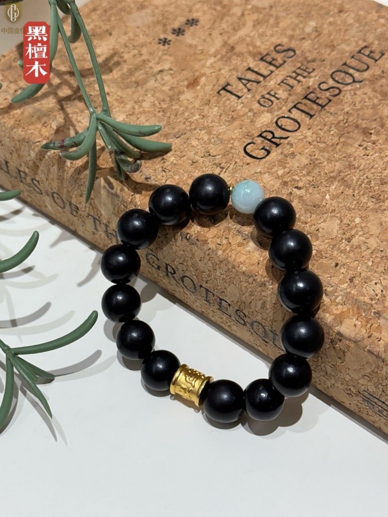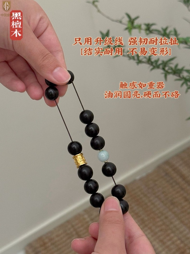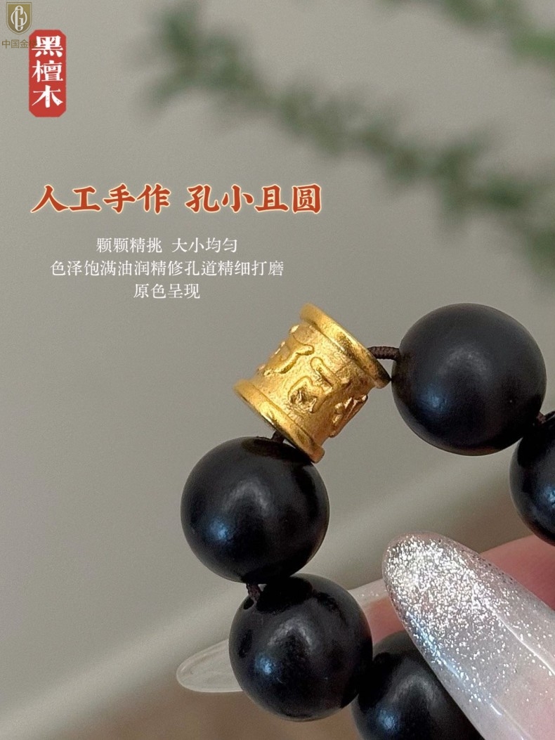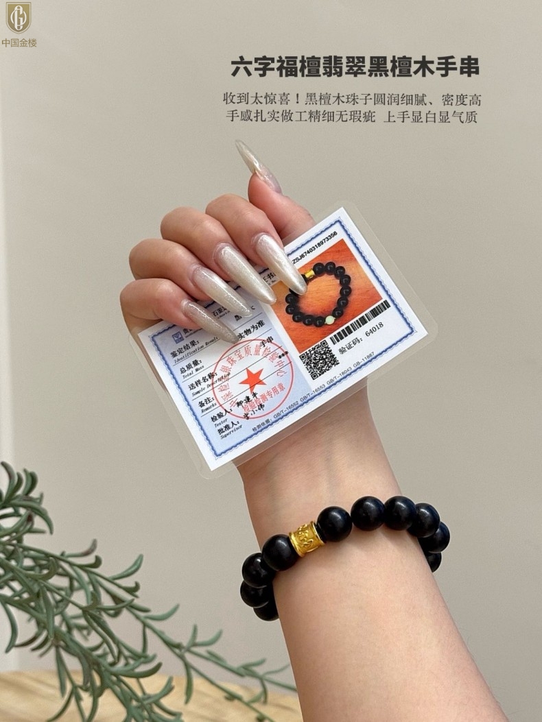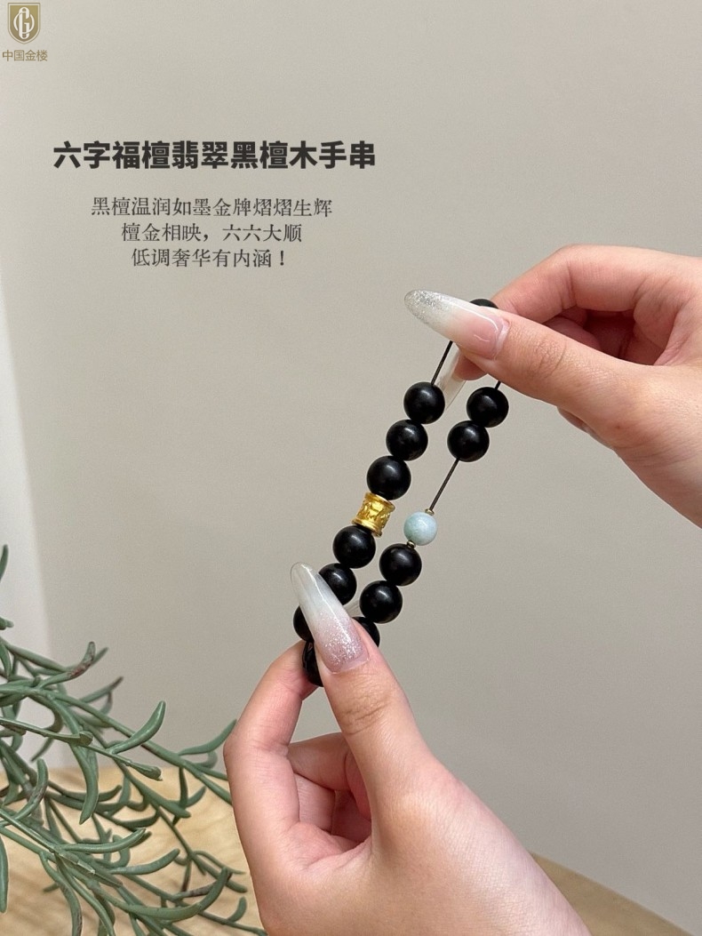 【品名】中国金楼六字福檀翡翠黑檀木手串