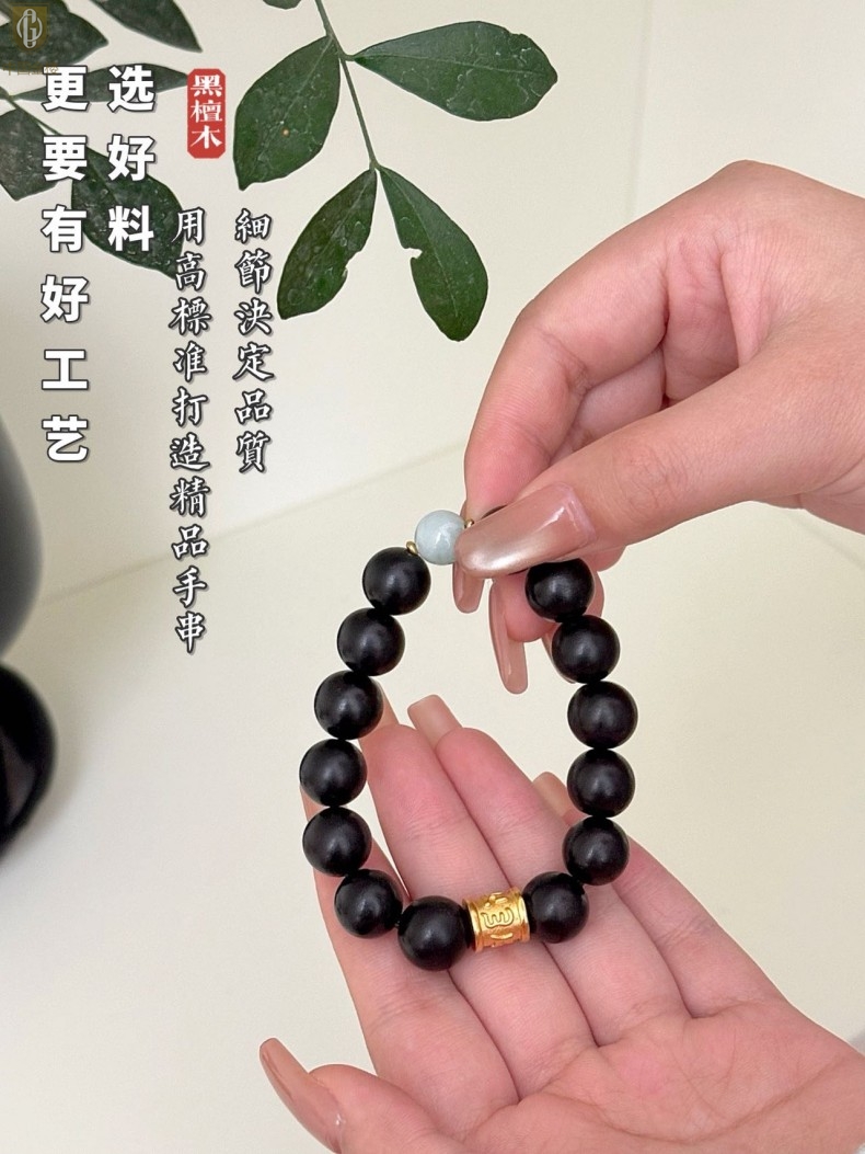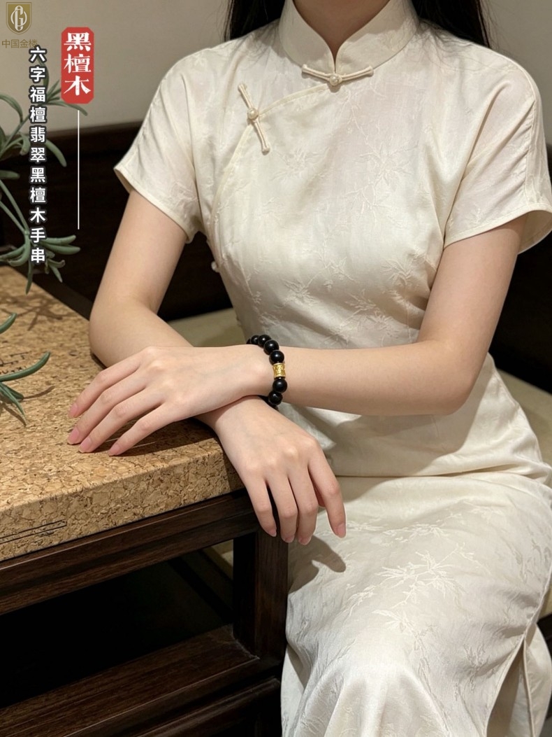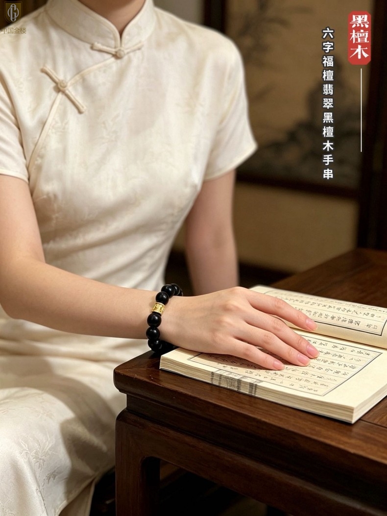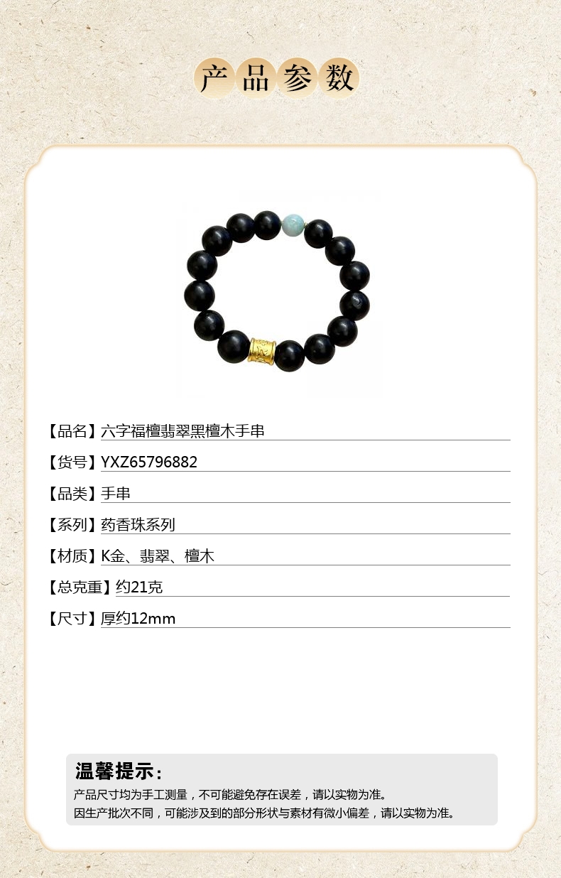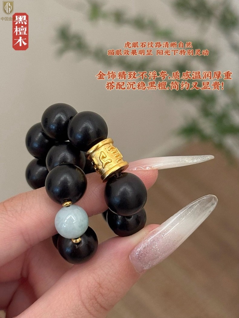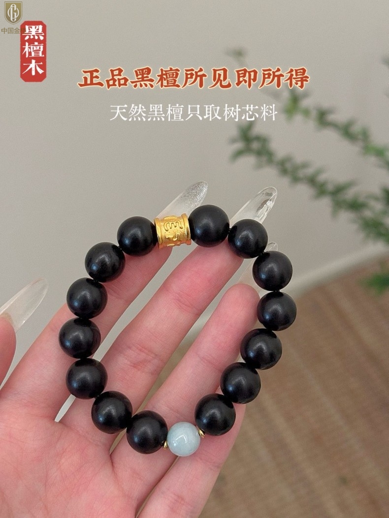【品名】中国金楼六字福檀翡翠黑檀木手串