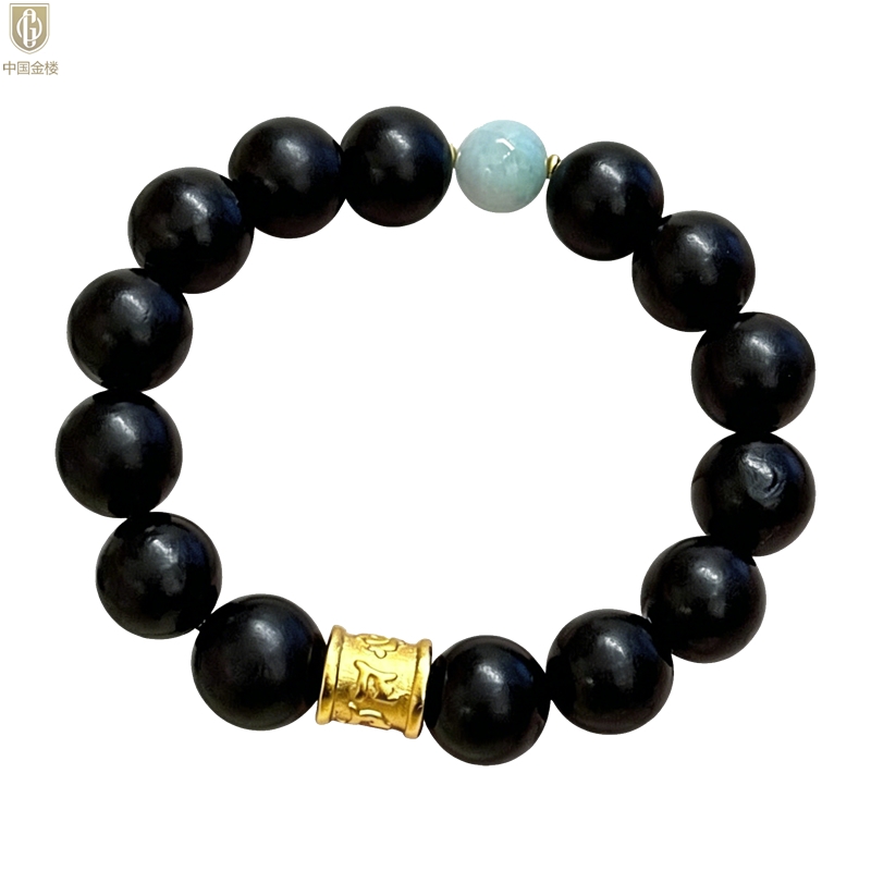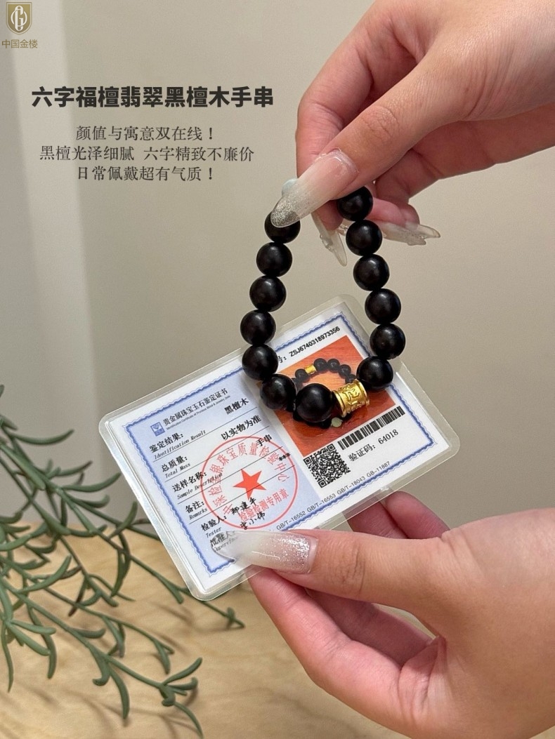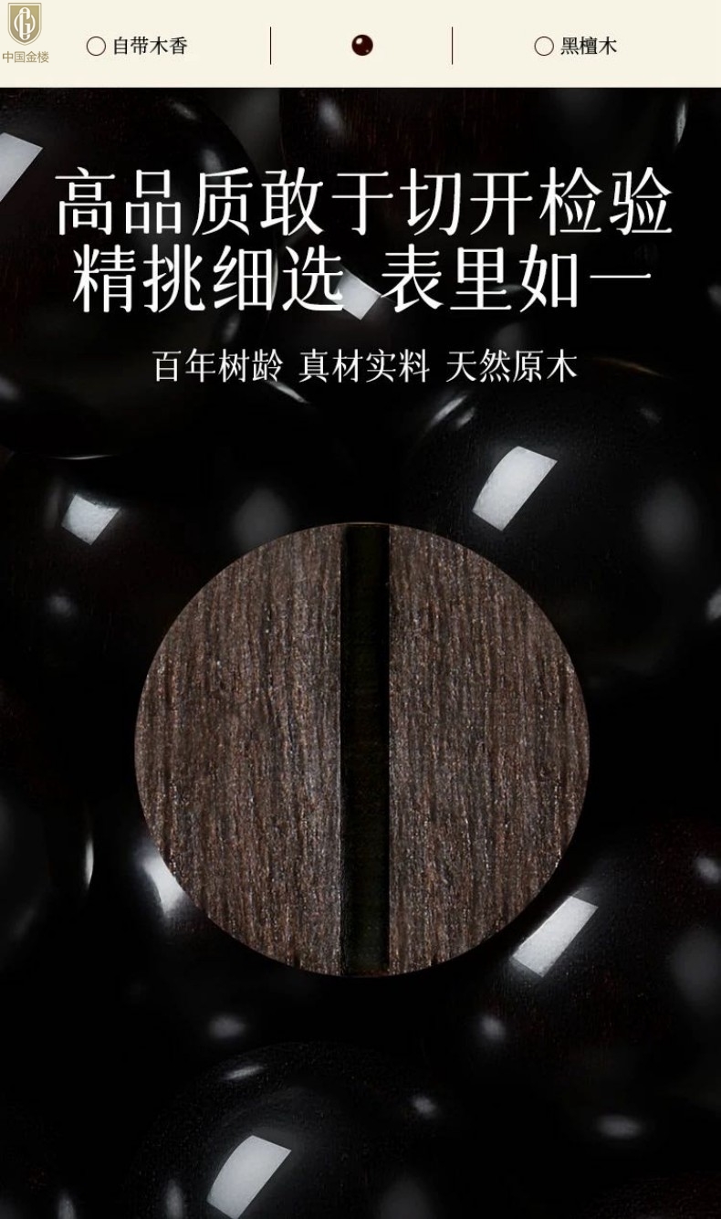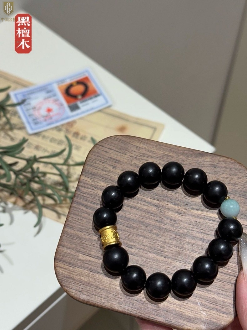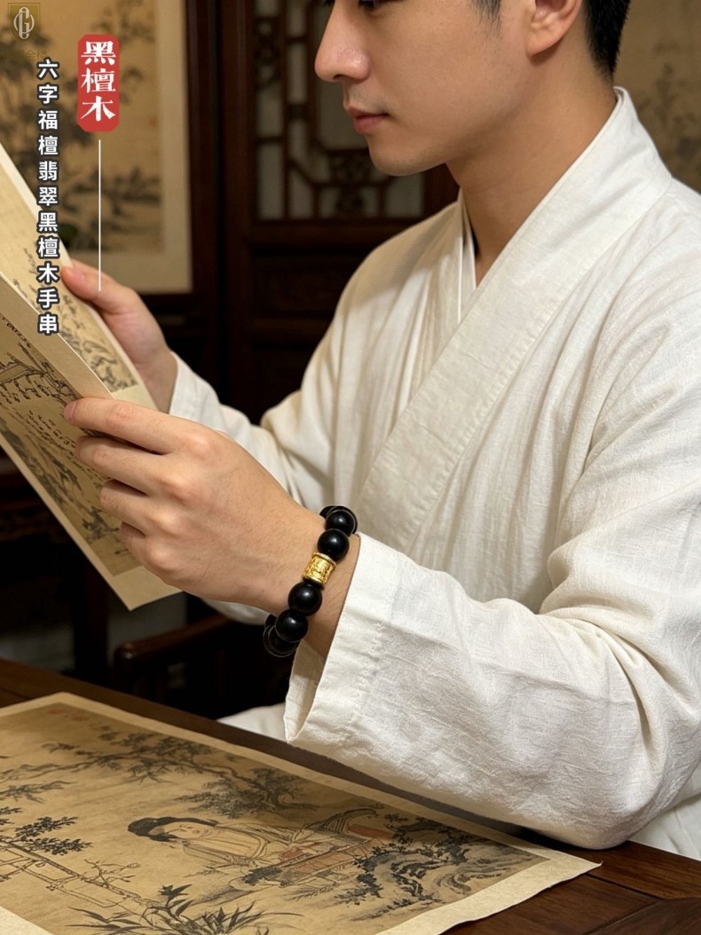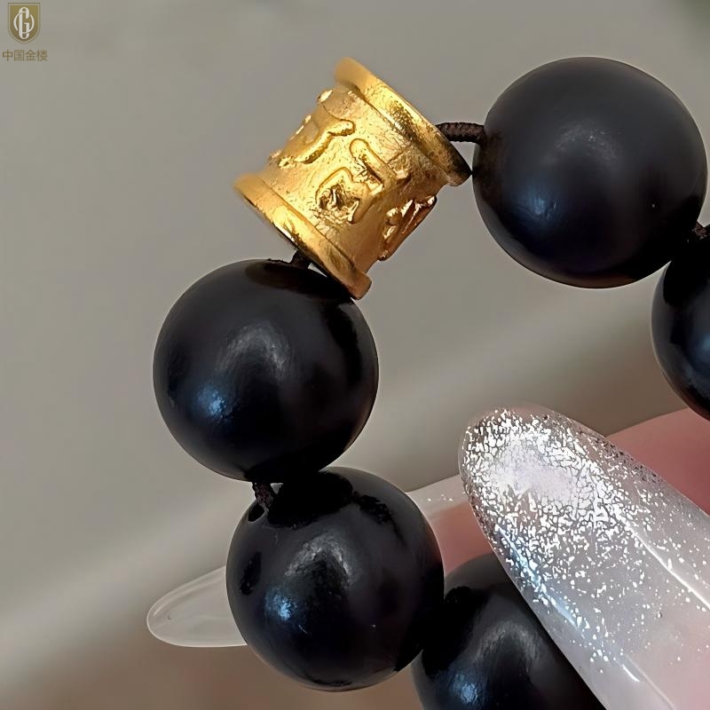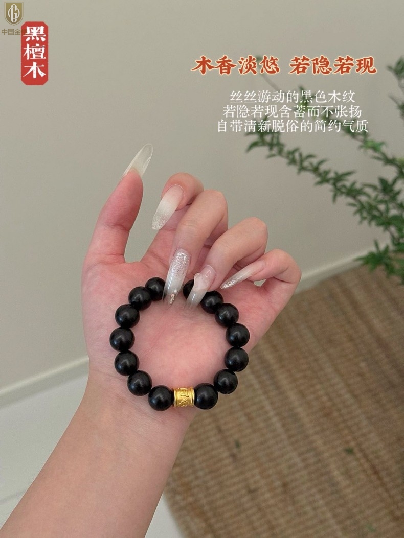 【品名】中国金楼六字福檀翡翠黑檀木手串