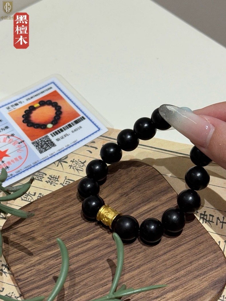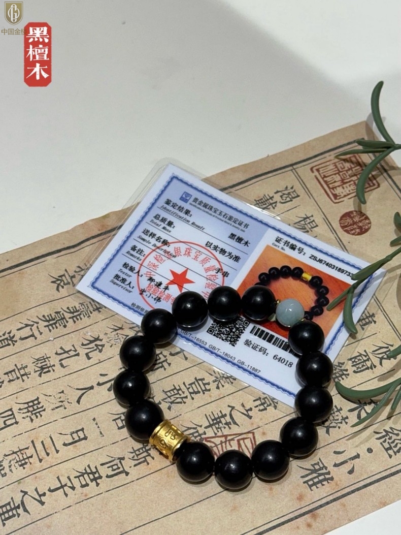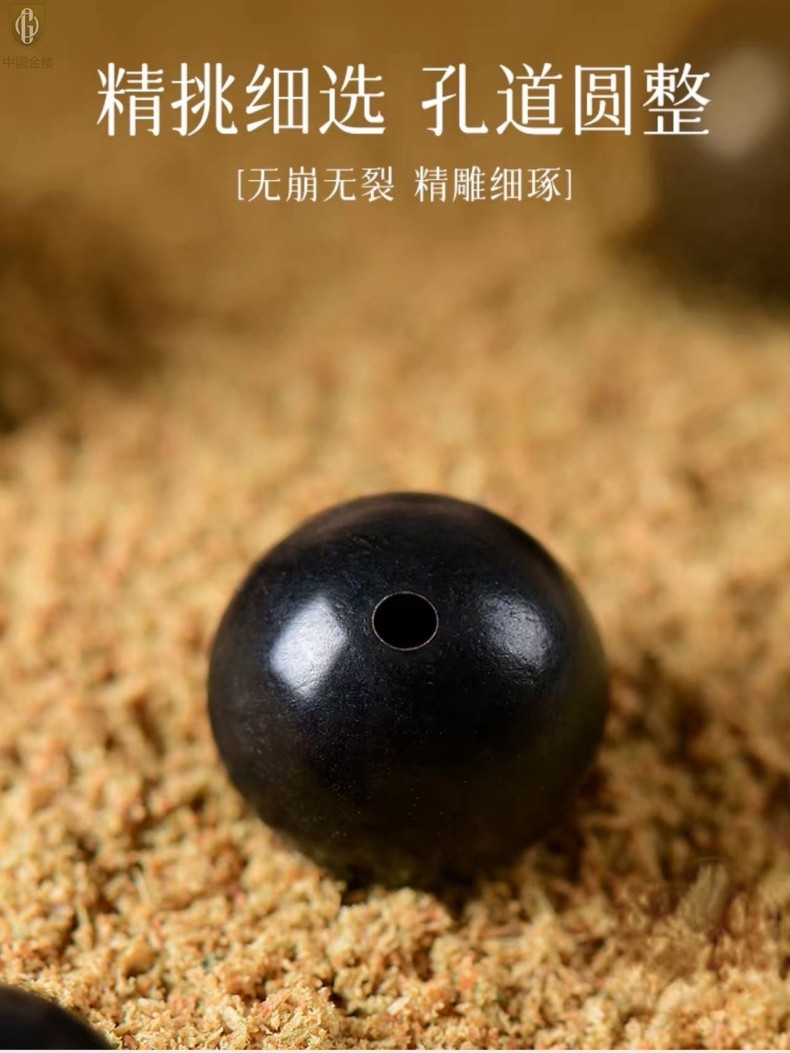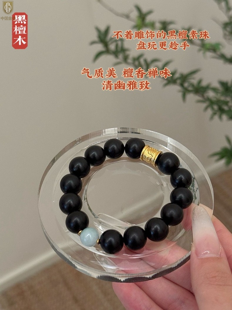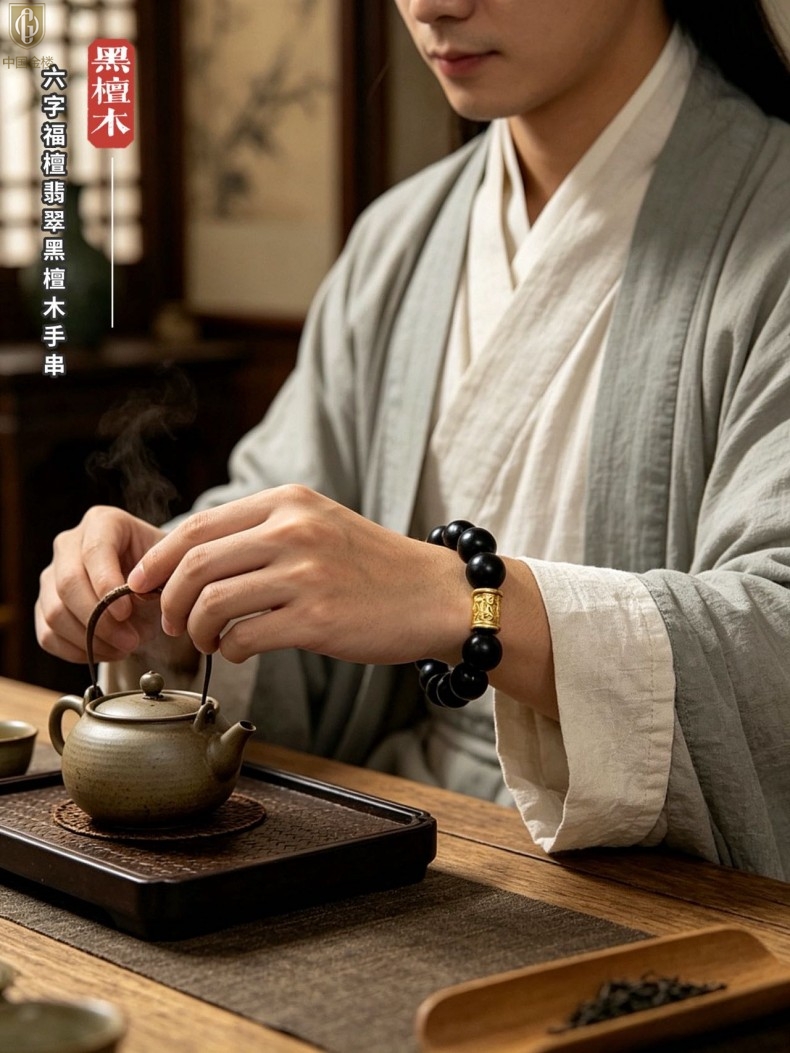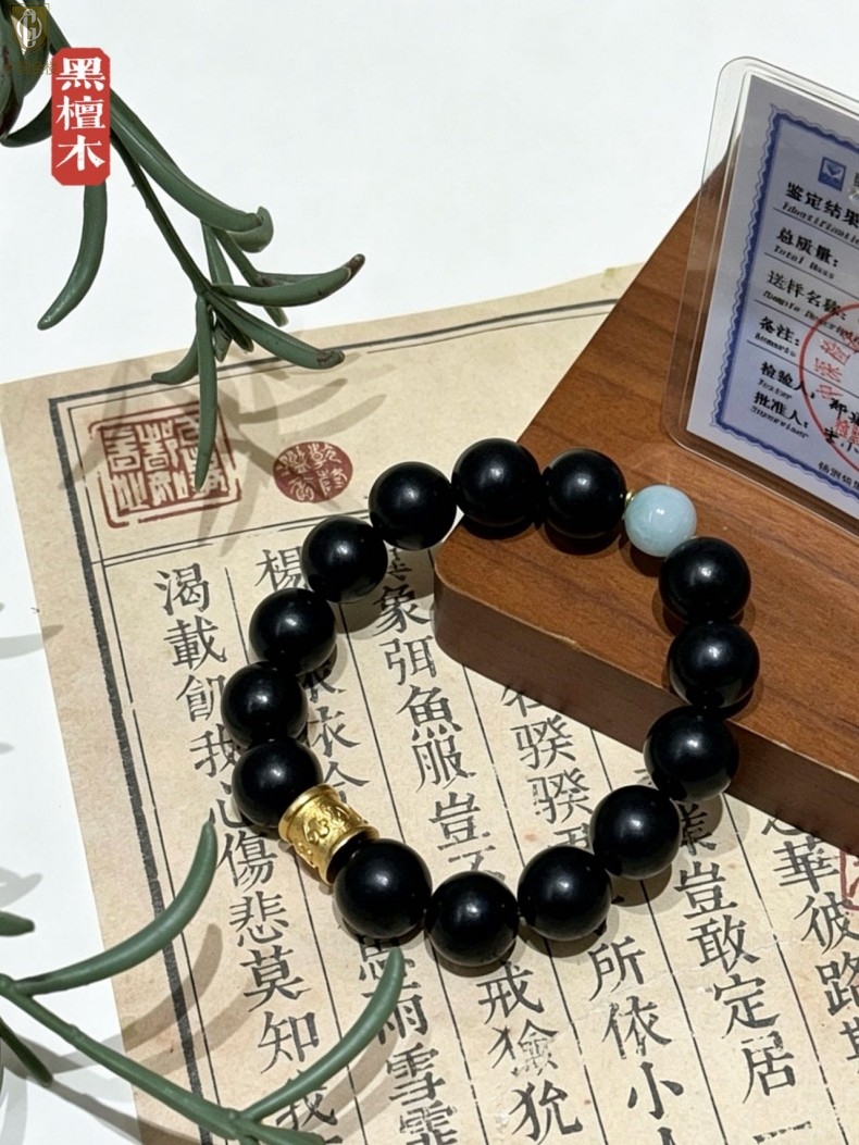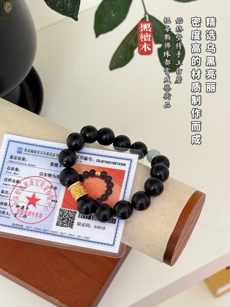 【品名】中国金楼六字福檀翡翠黑檀木手串