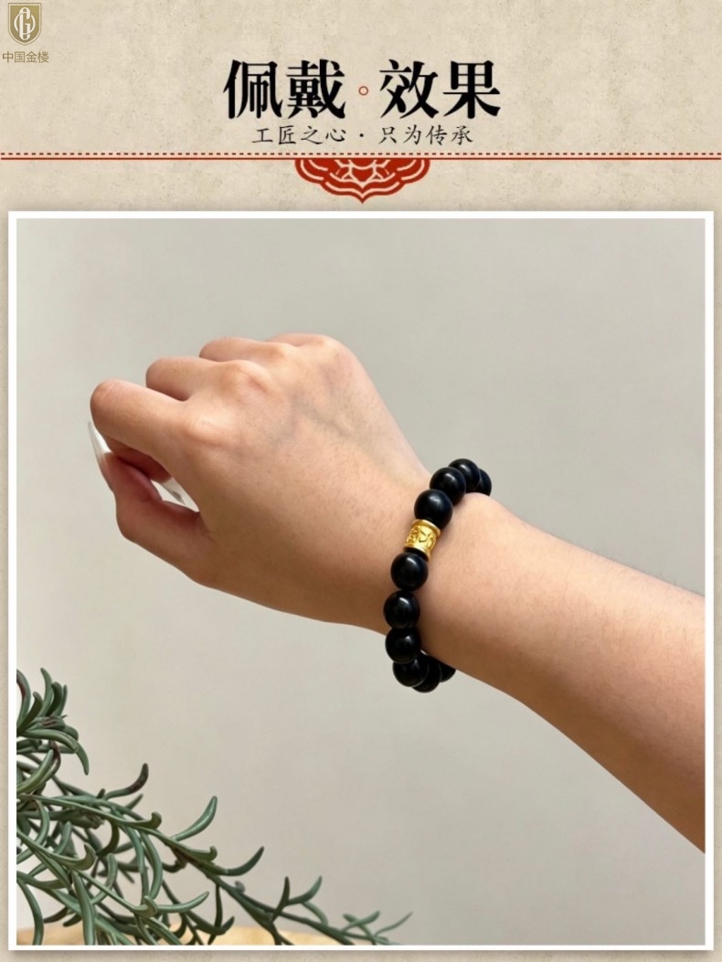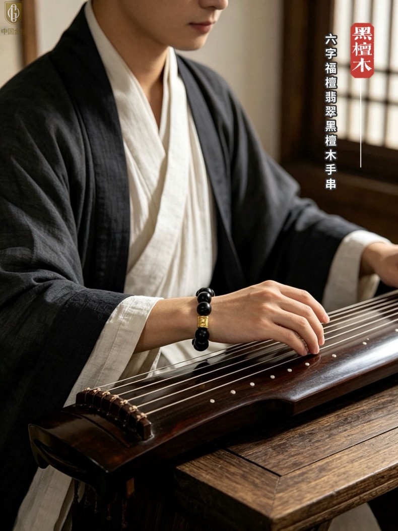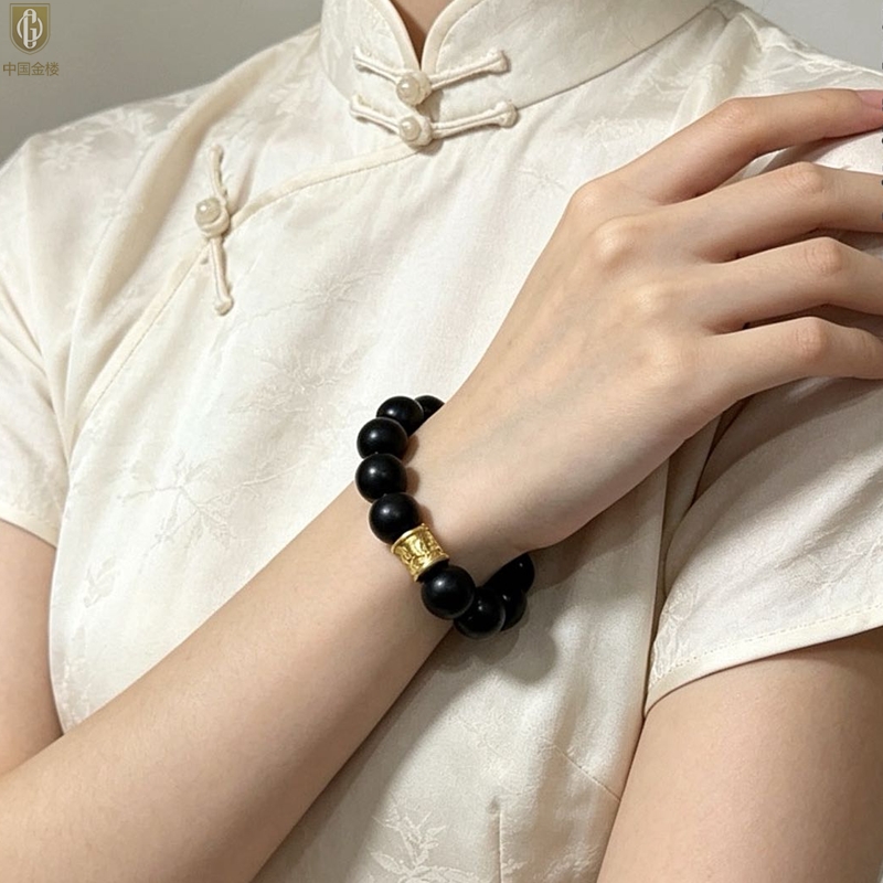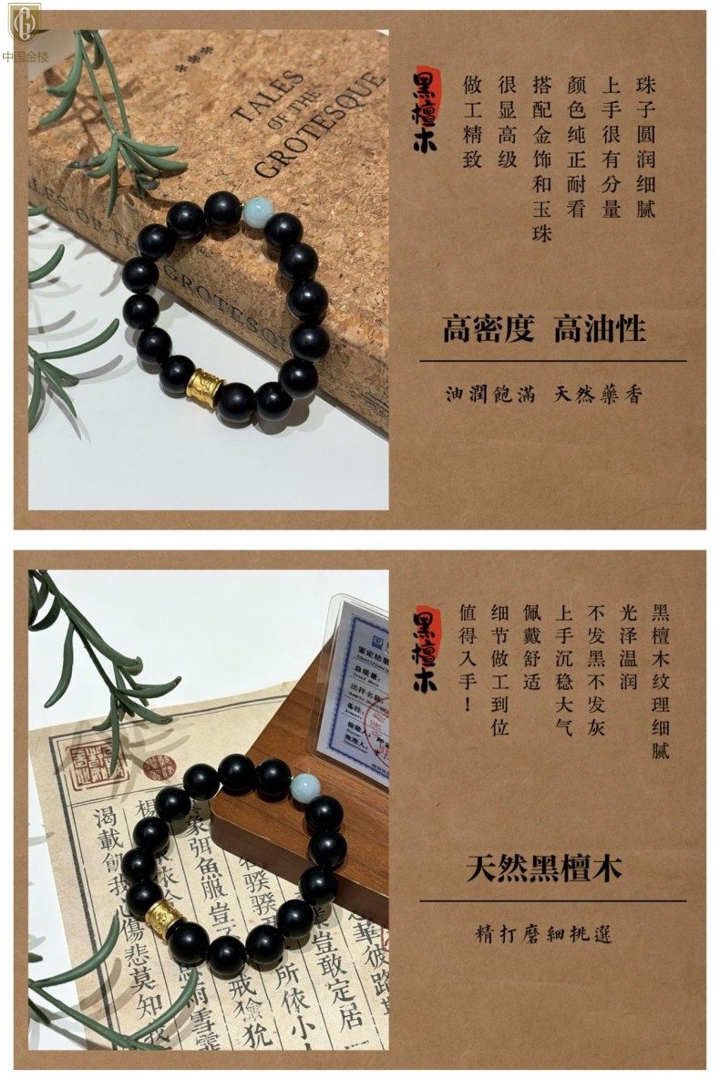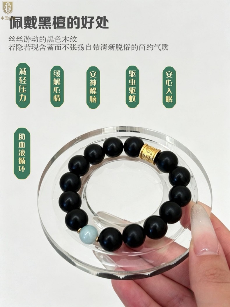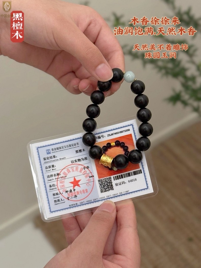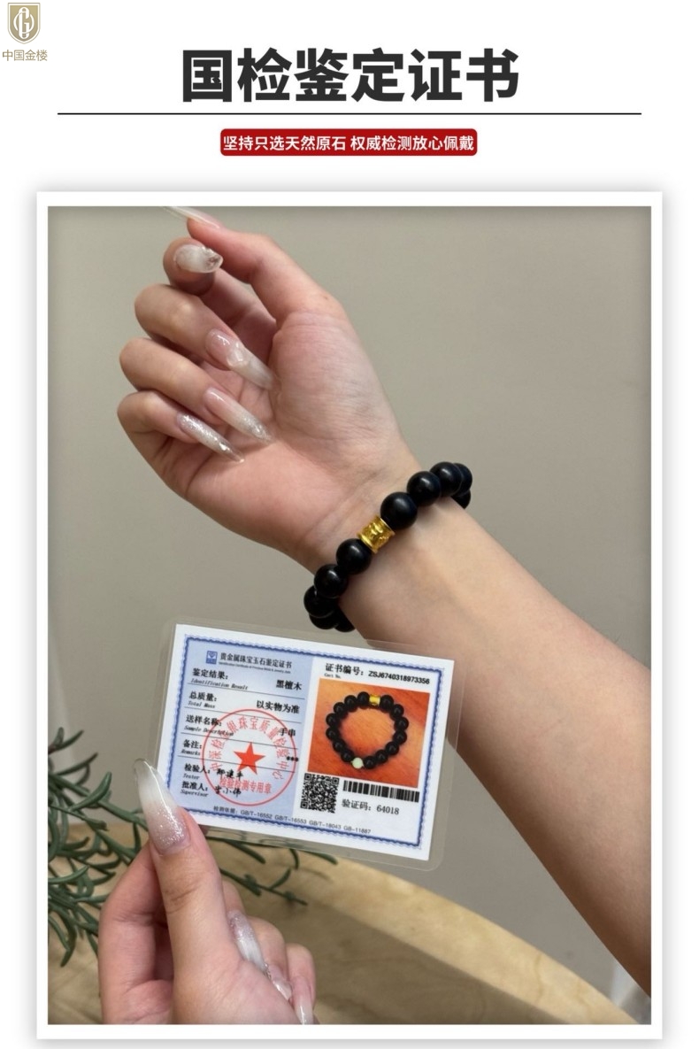【品名】中国金楼六字福檀翡翠黑檀木手串