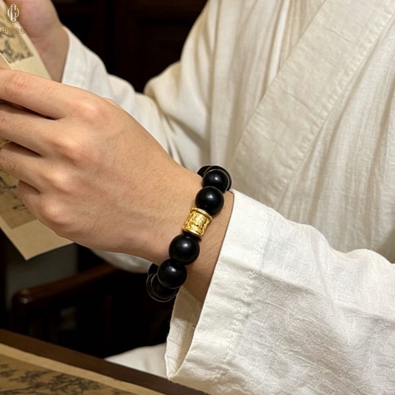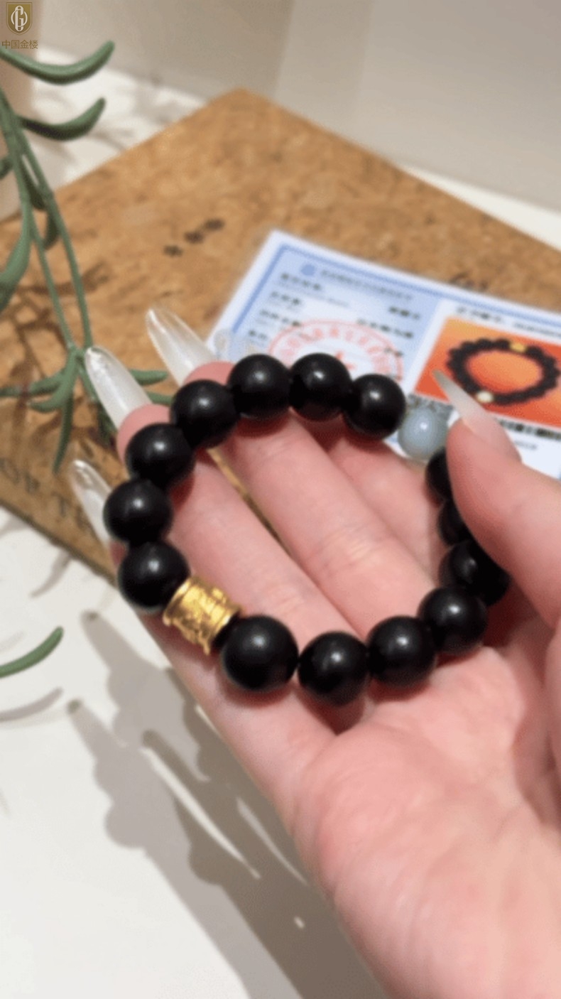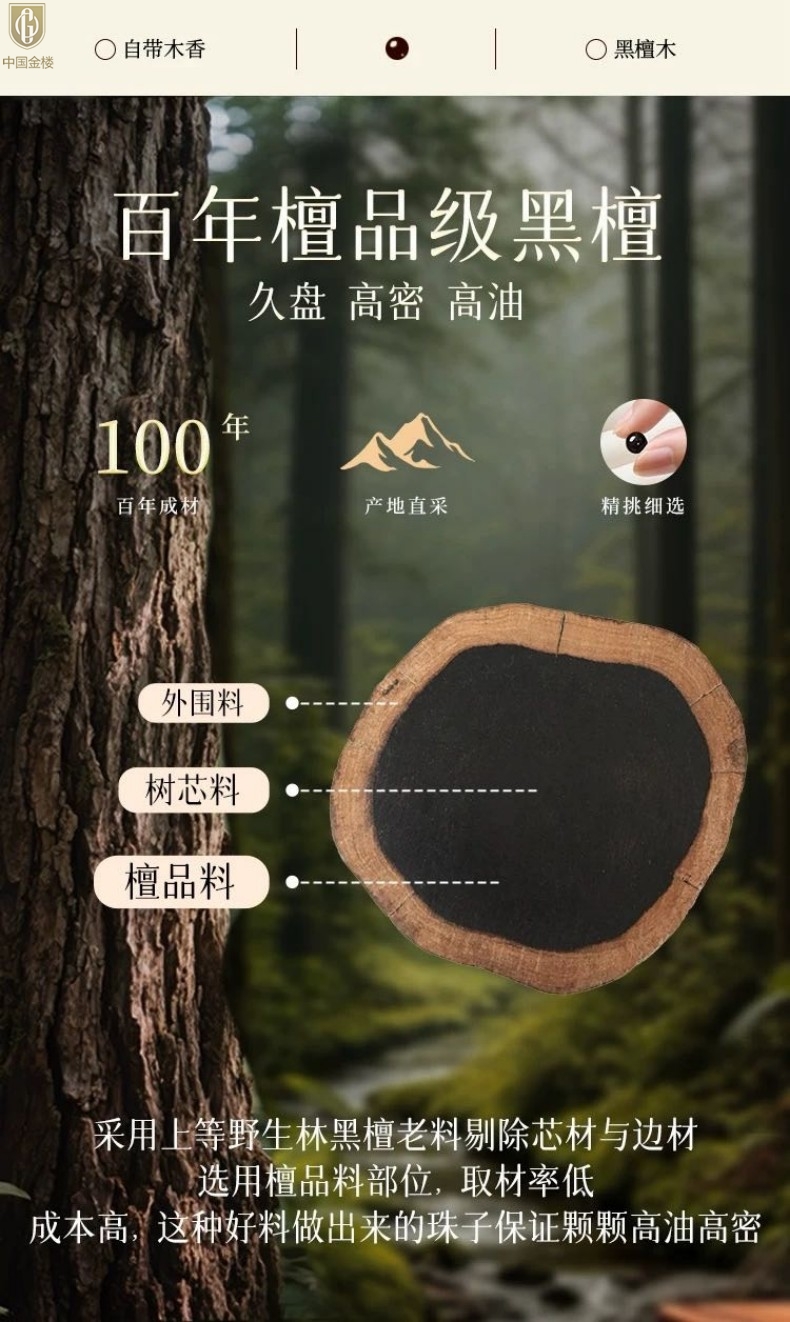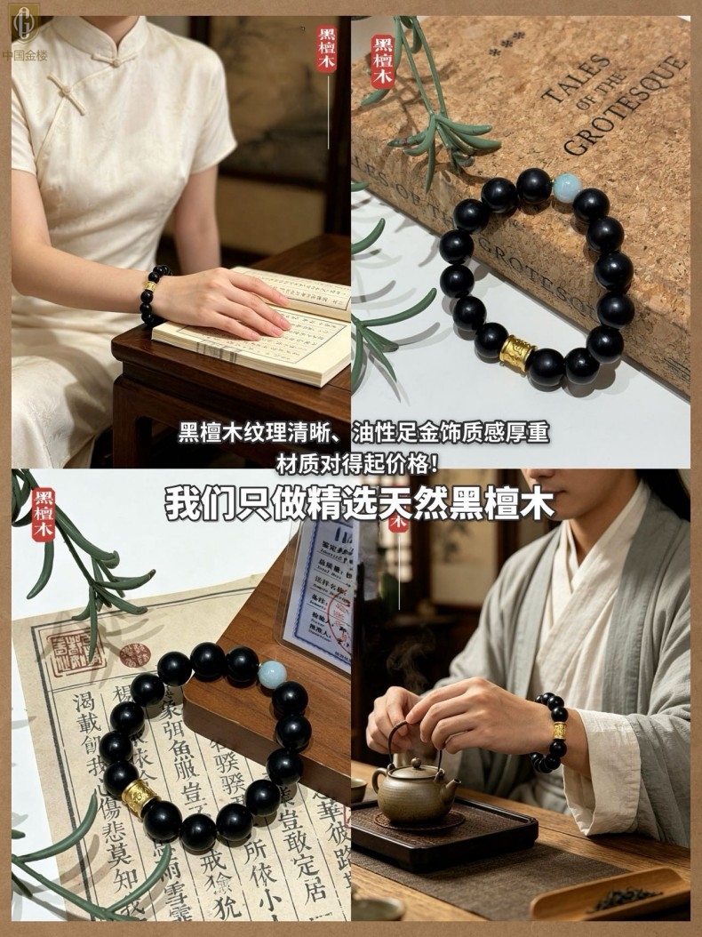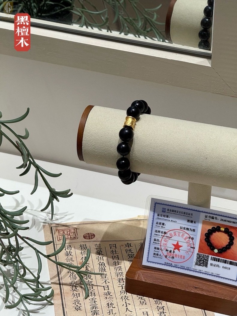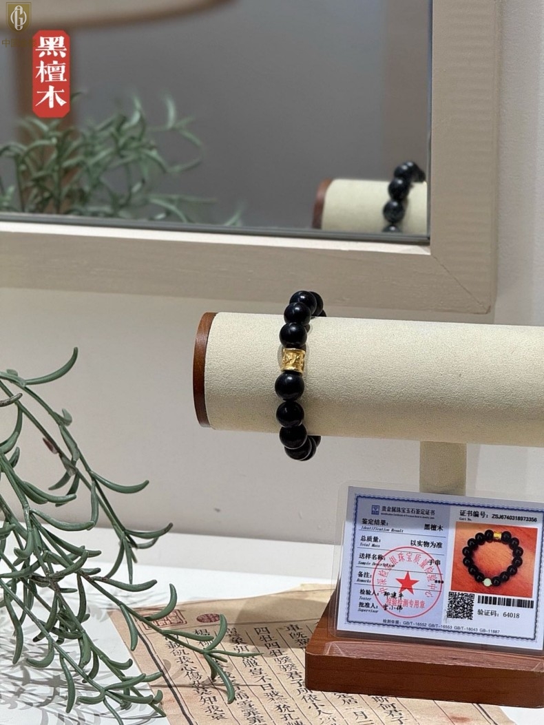【品名】中国金楼六字福檀翡翠黑檀木手串