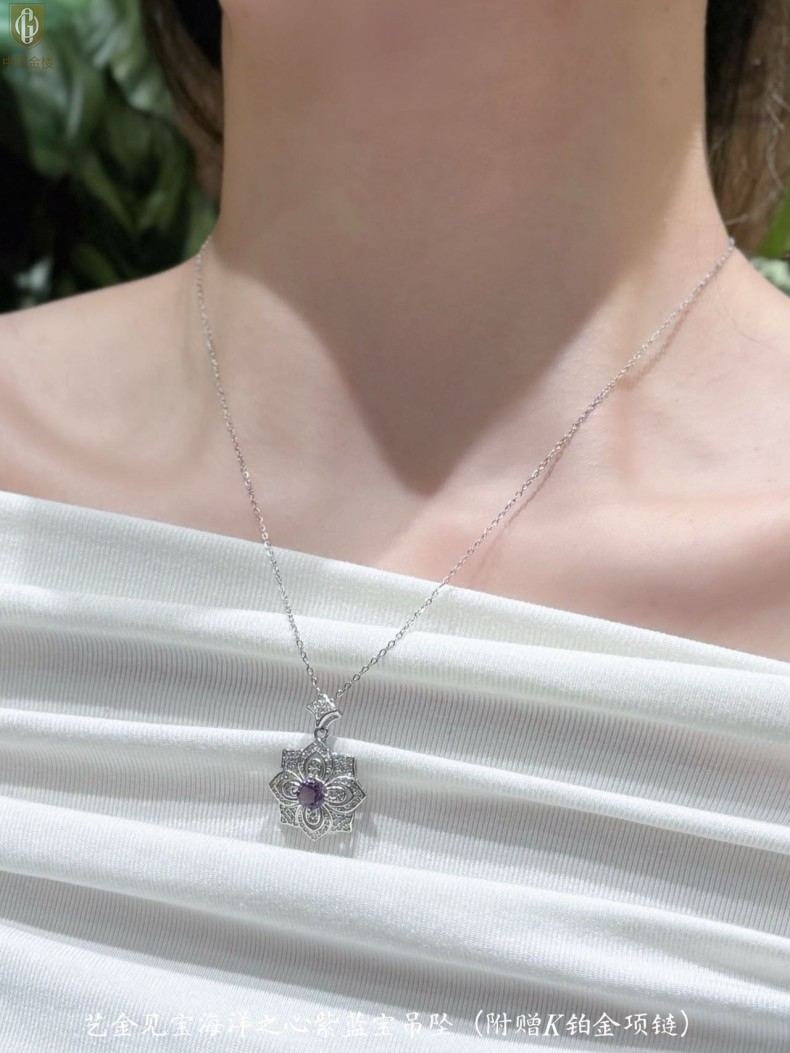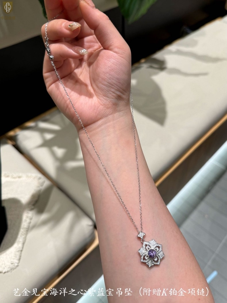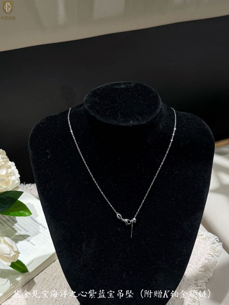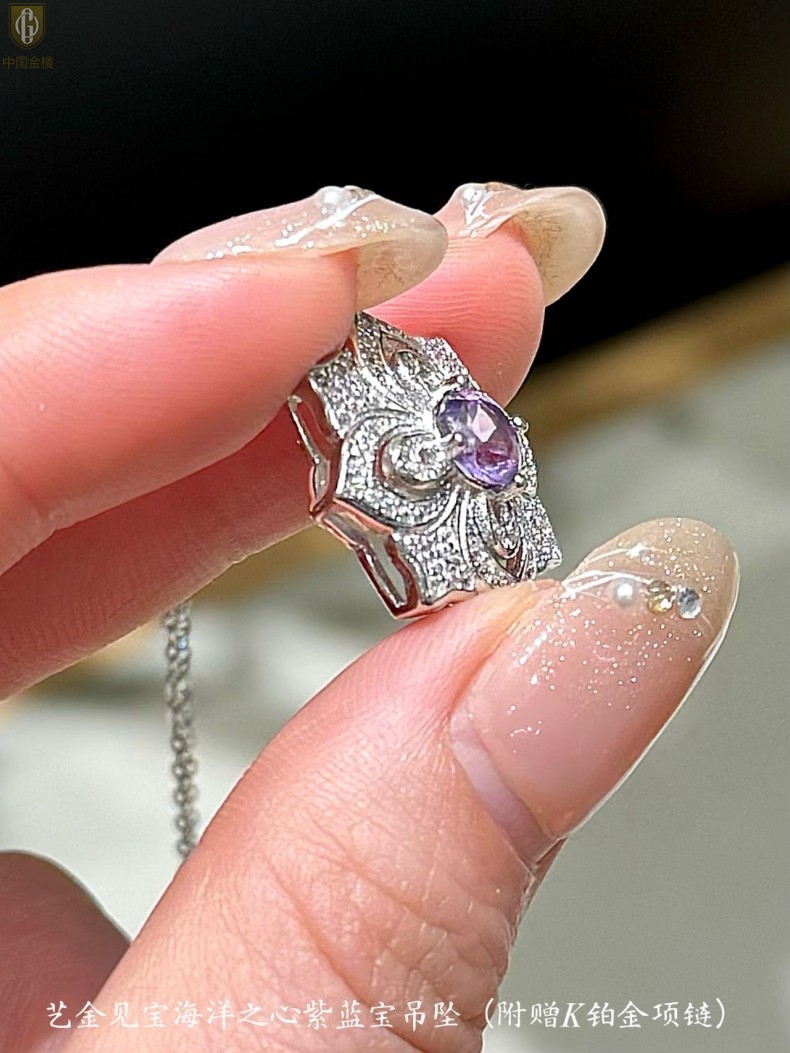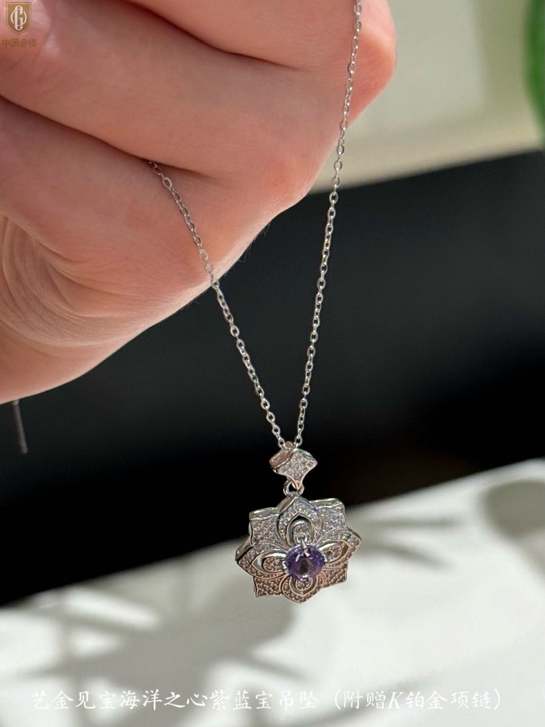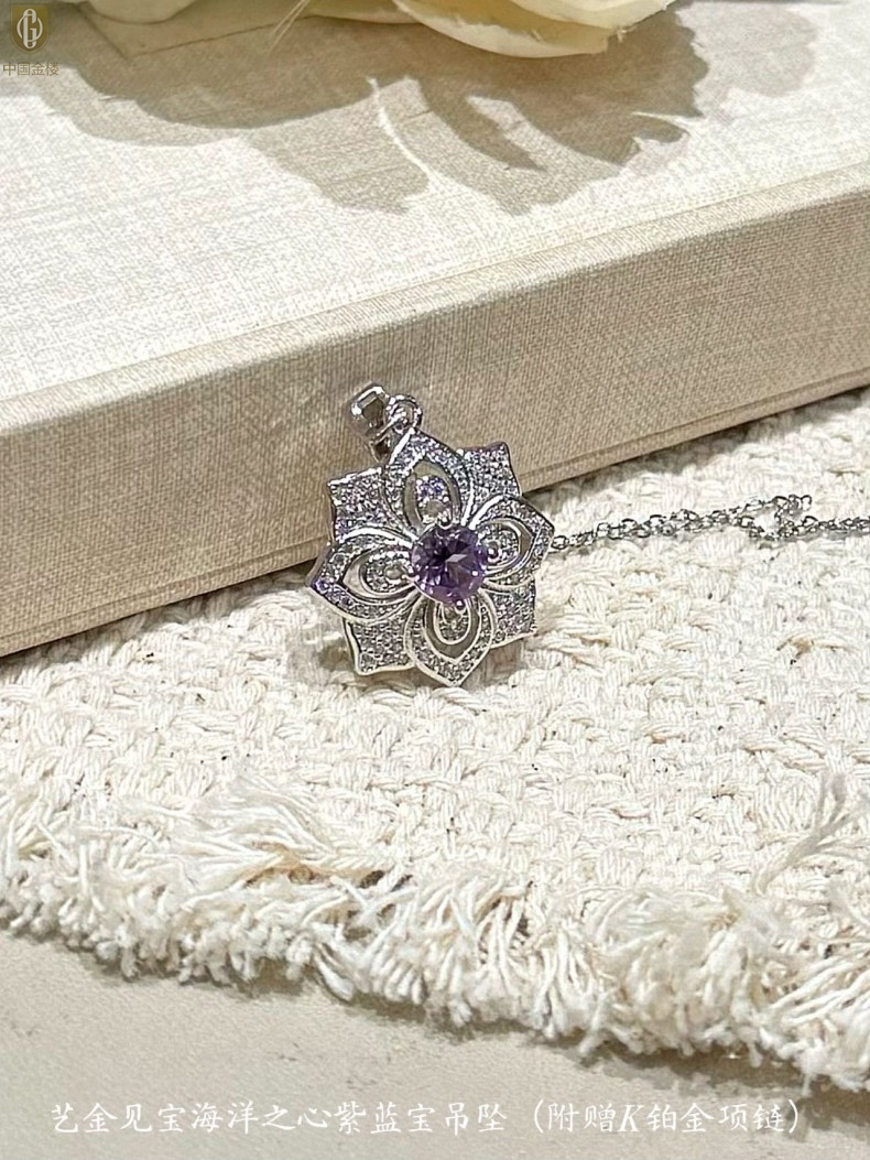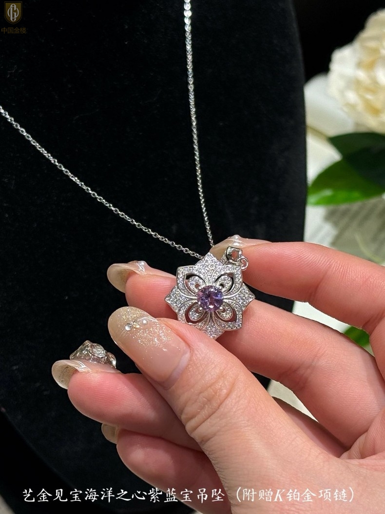 【品名】中国金楼艺金见宝海洋之心紫蓝宝吊坠(附赠K铂金项链)
