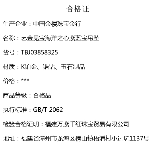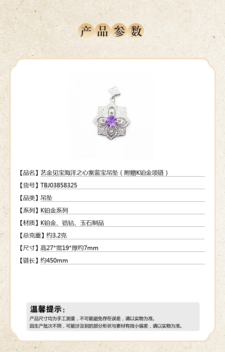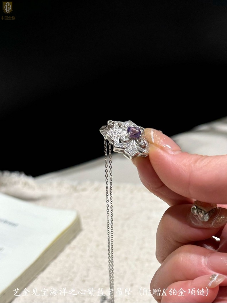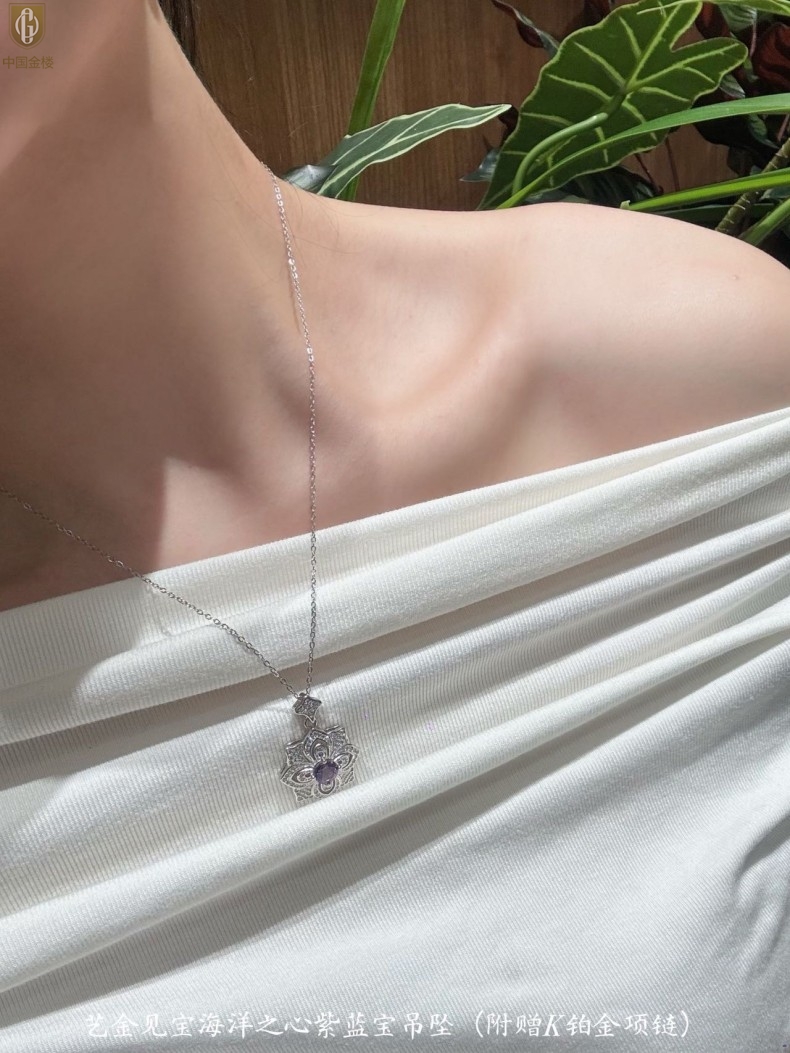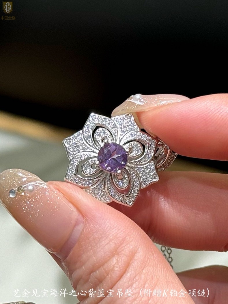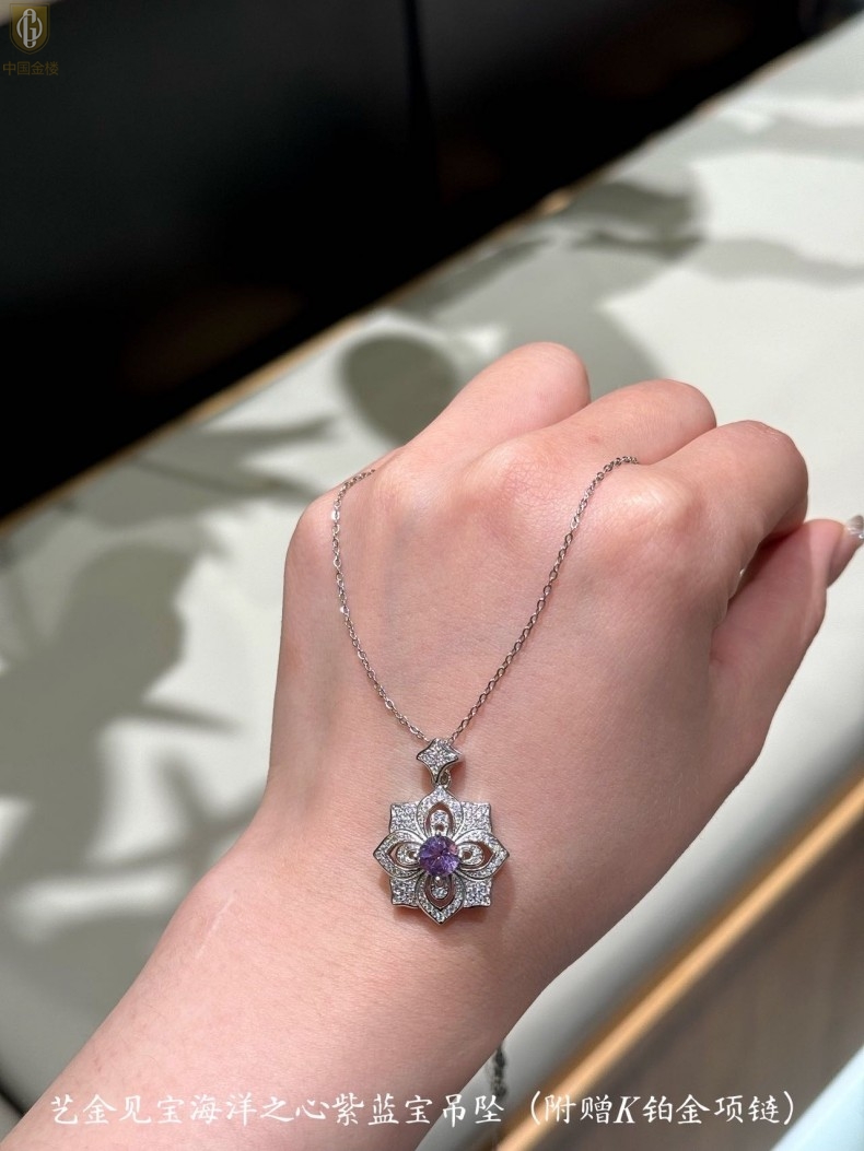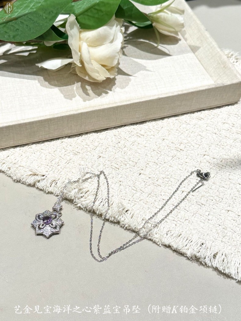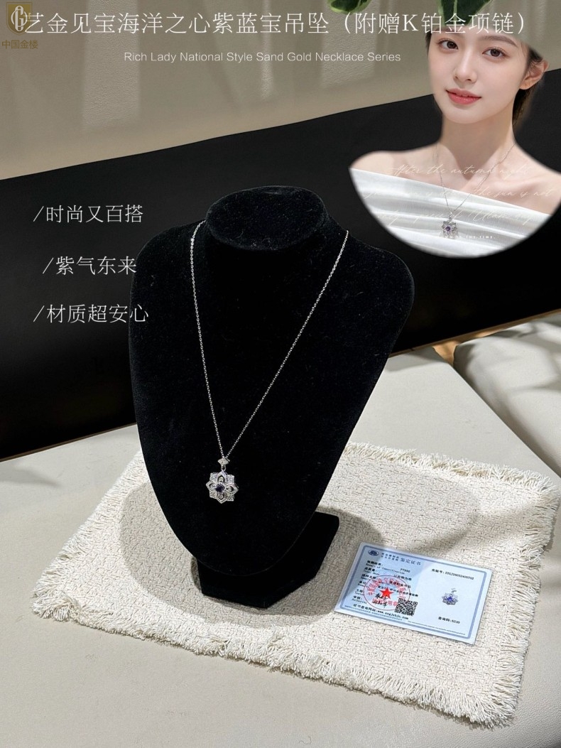 【品名】中国金楼艺金见宝海洋之心紫蓝宝吊坠(附赠K铂金项链)