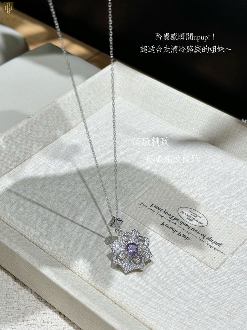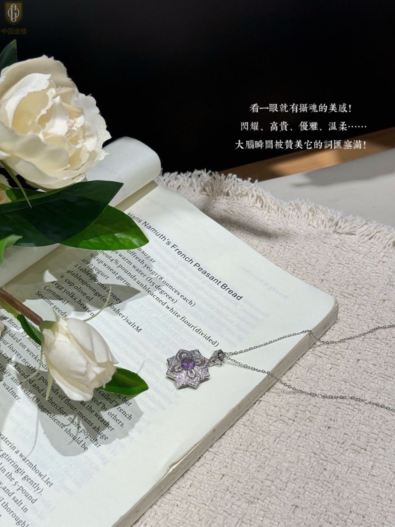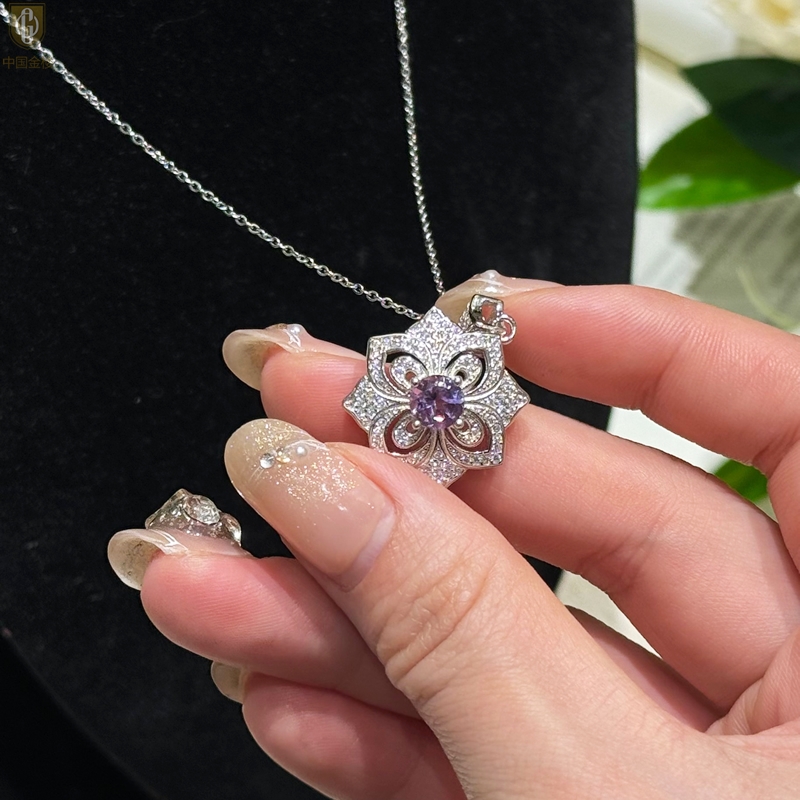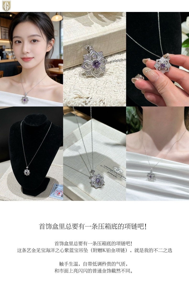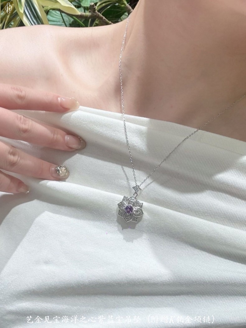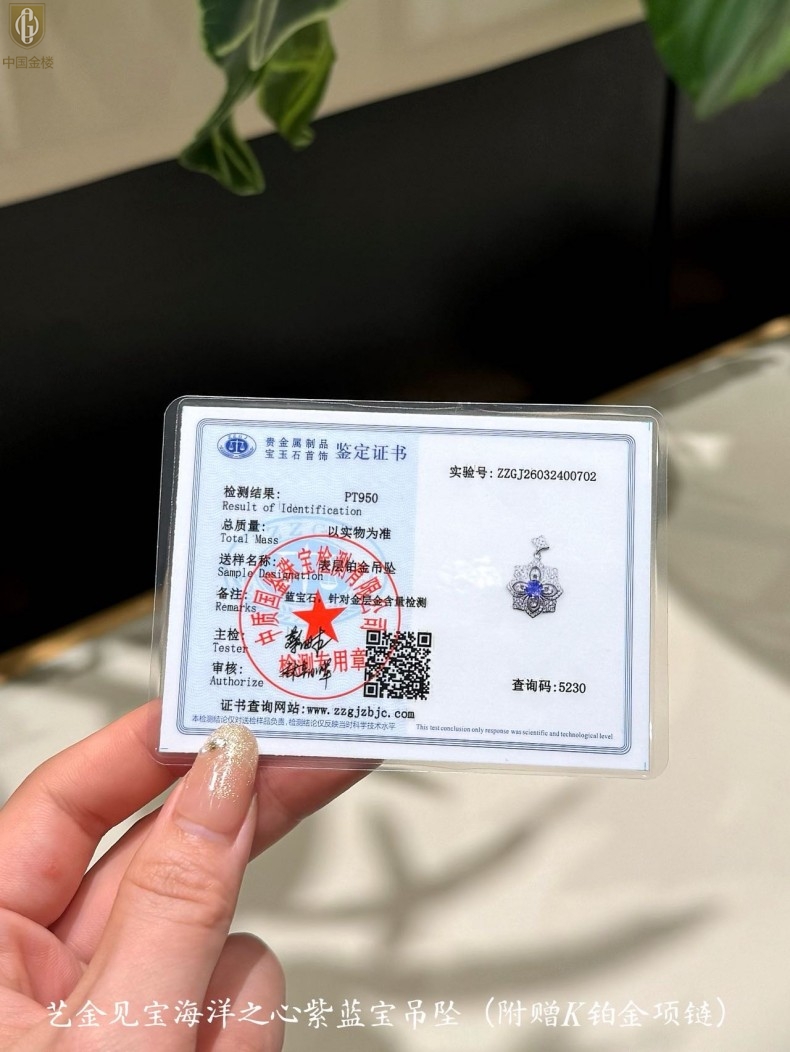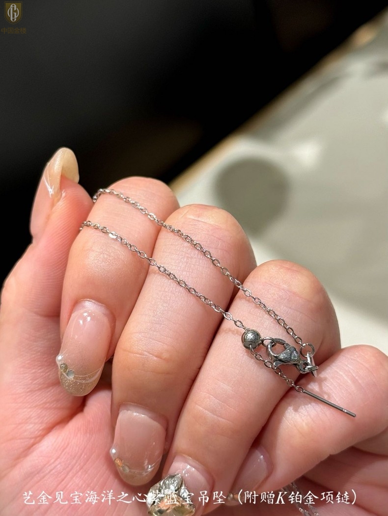 【品名】中国金楼艺金见宝海洋之心紫蓝宝吊坠(附赠K铂金项链)