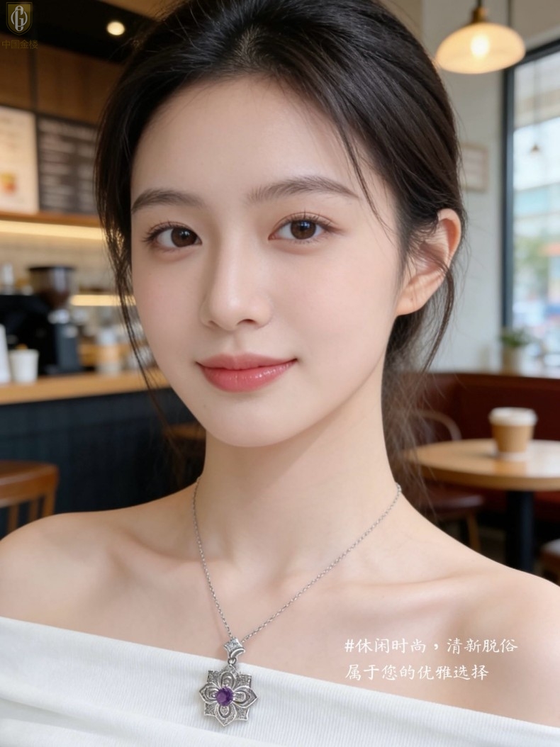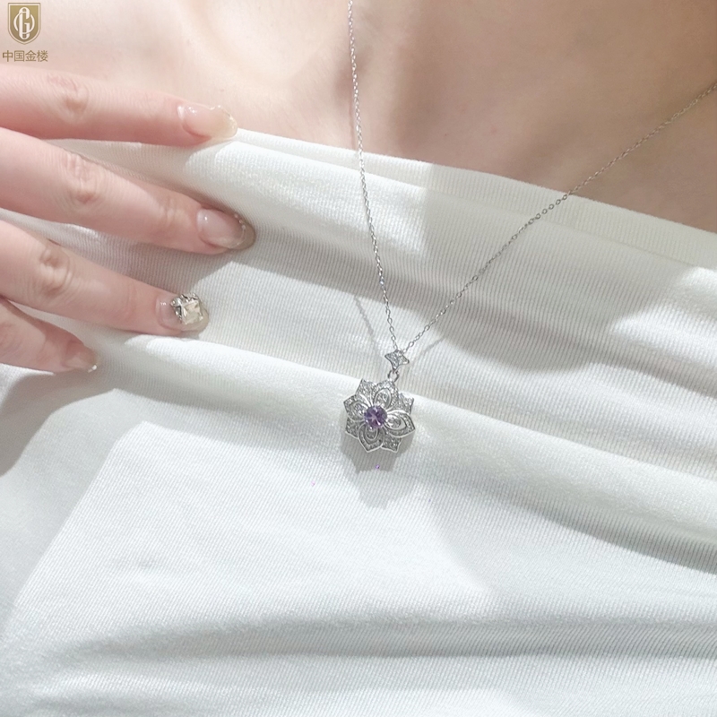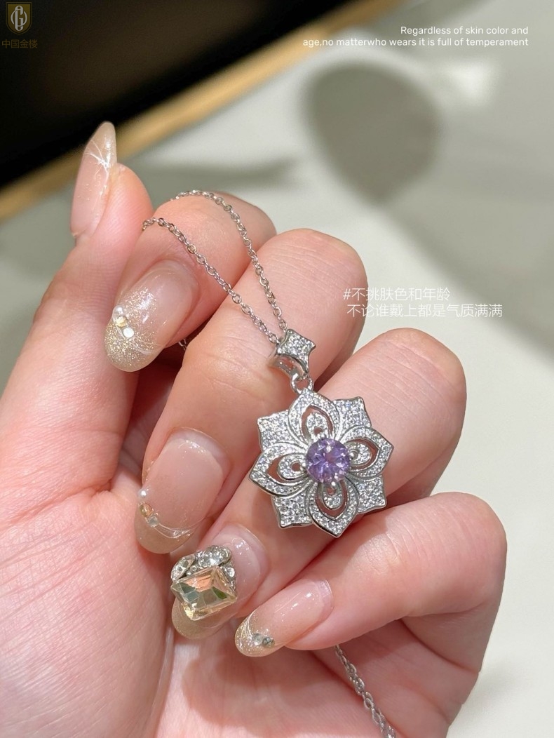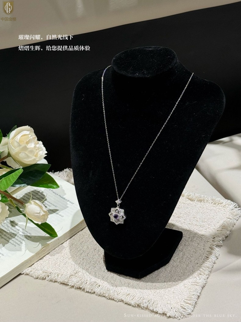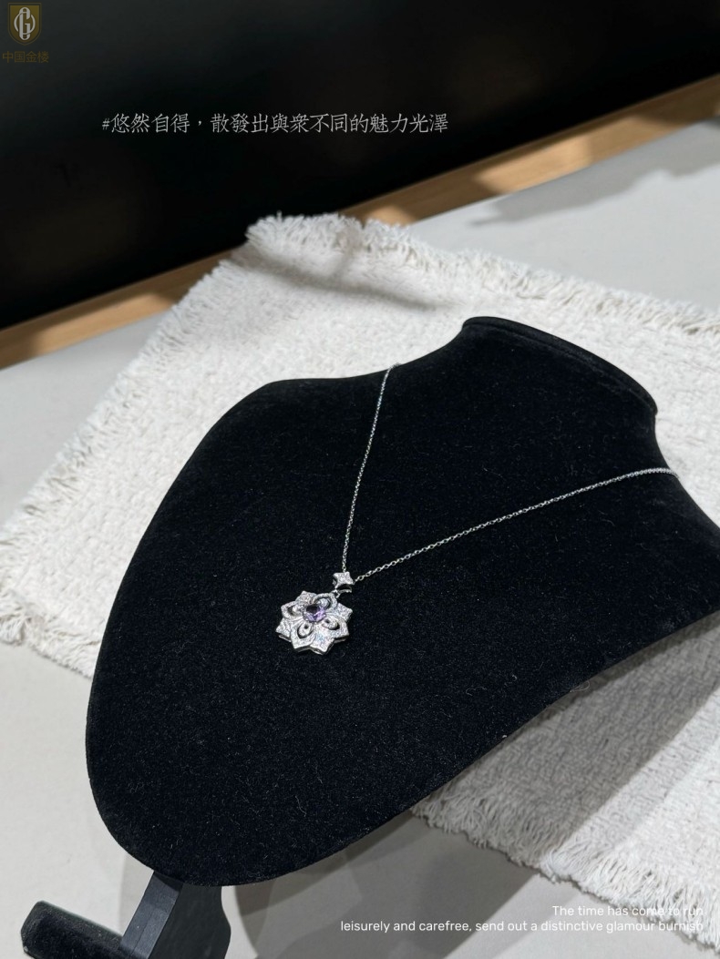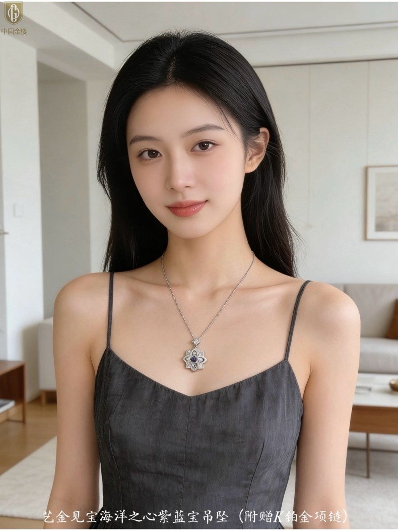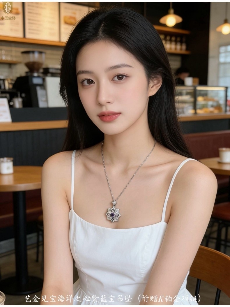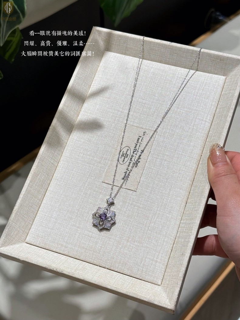 【品名】中国金楼艺金见宝海洋之心紫蓝宝吊坠(附赠K铂金项链)