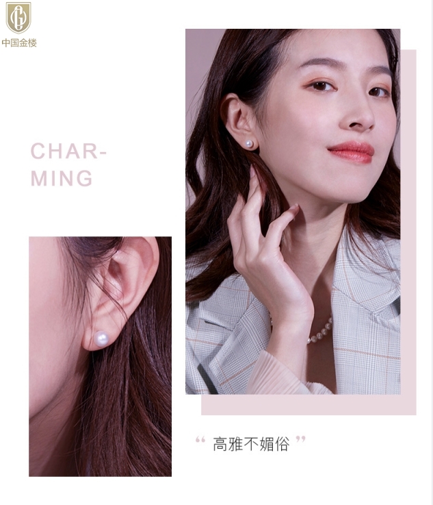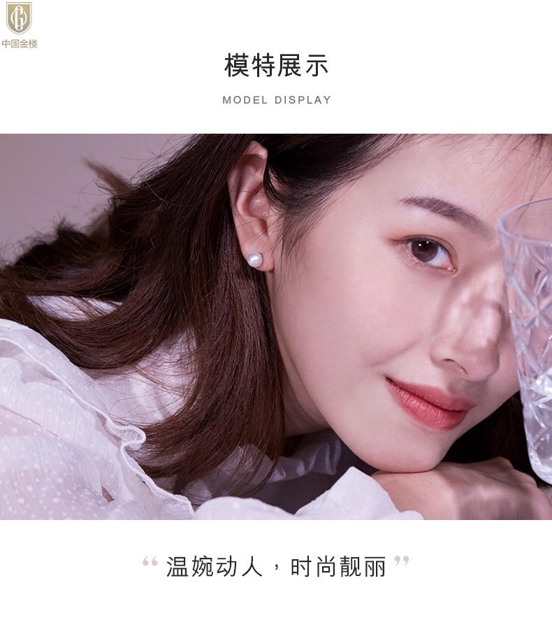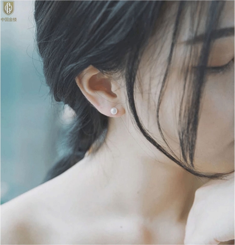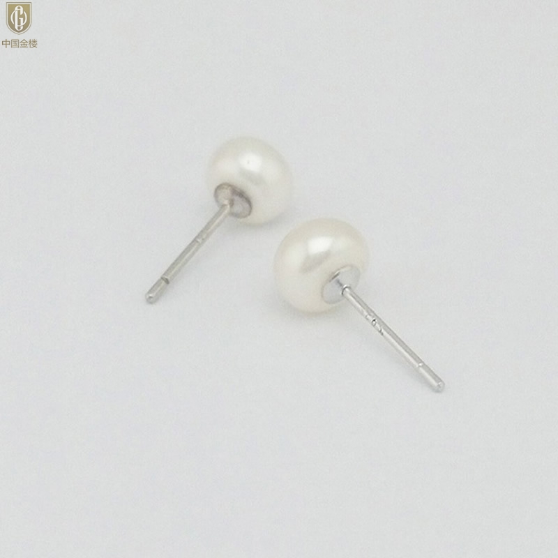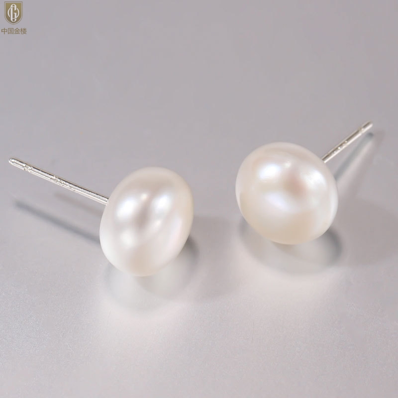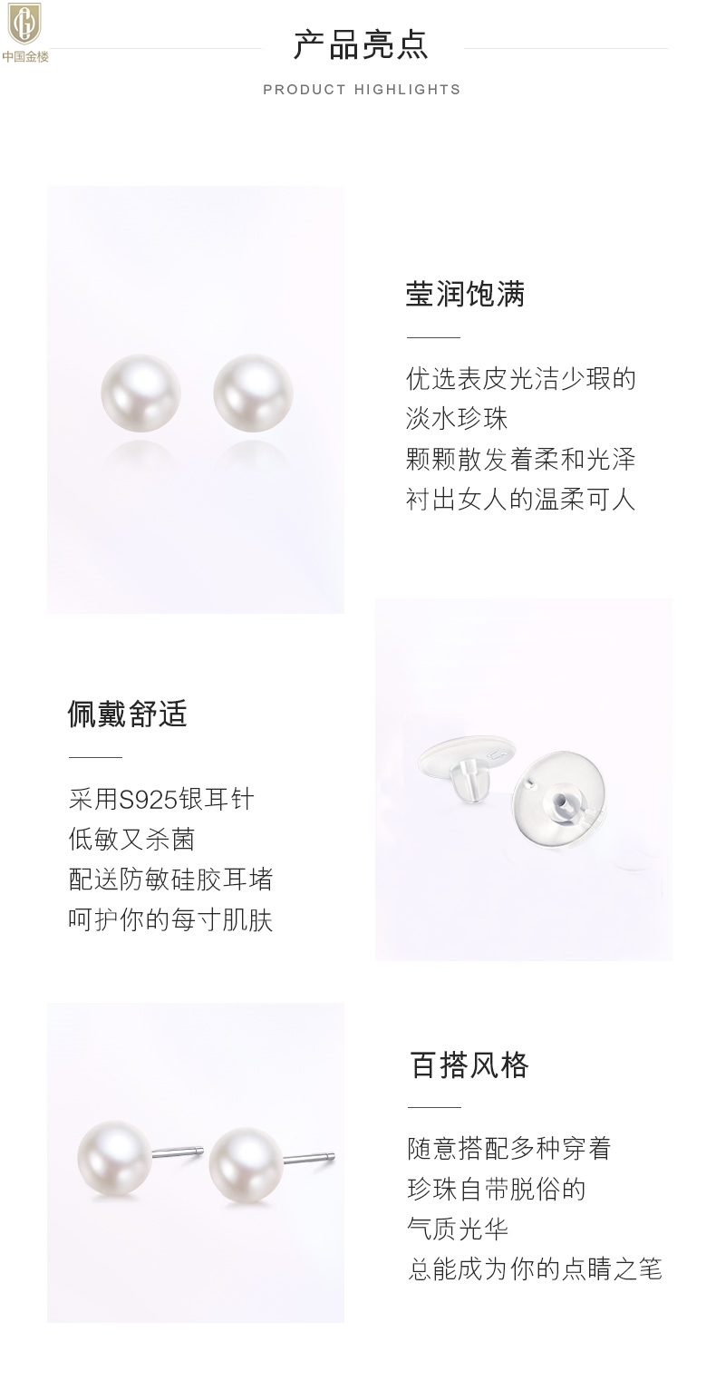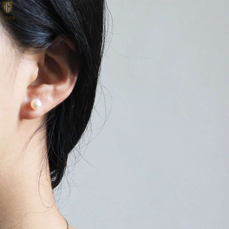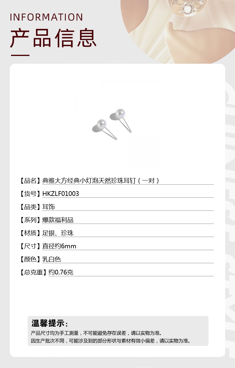 【品名】中国金楼典雅大方经典小灯泡天然珍珠耳钉(一对)