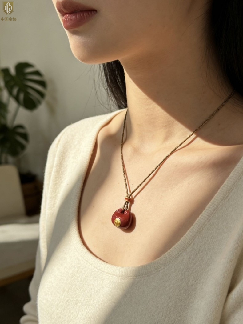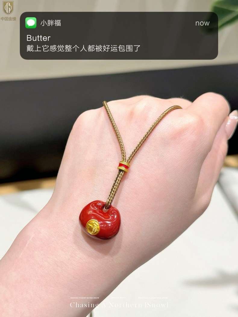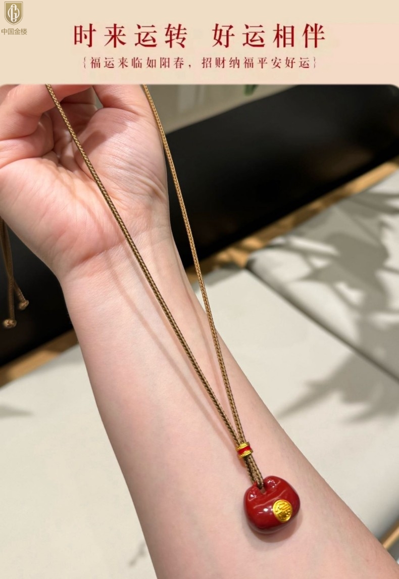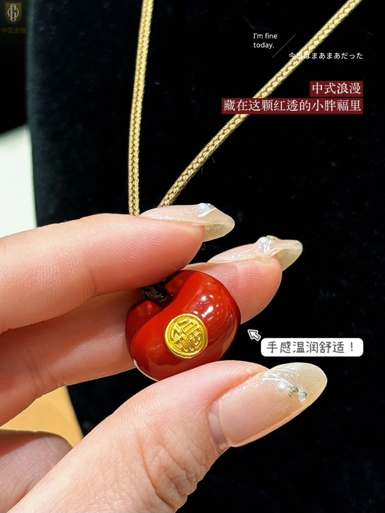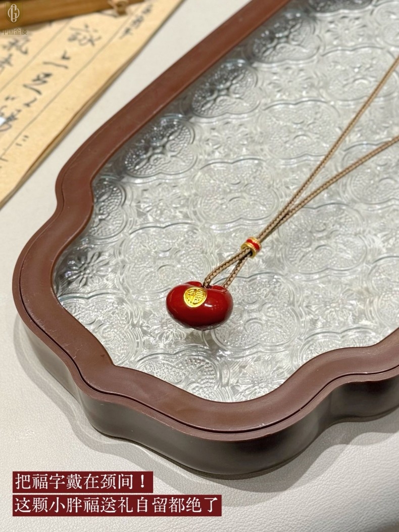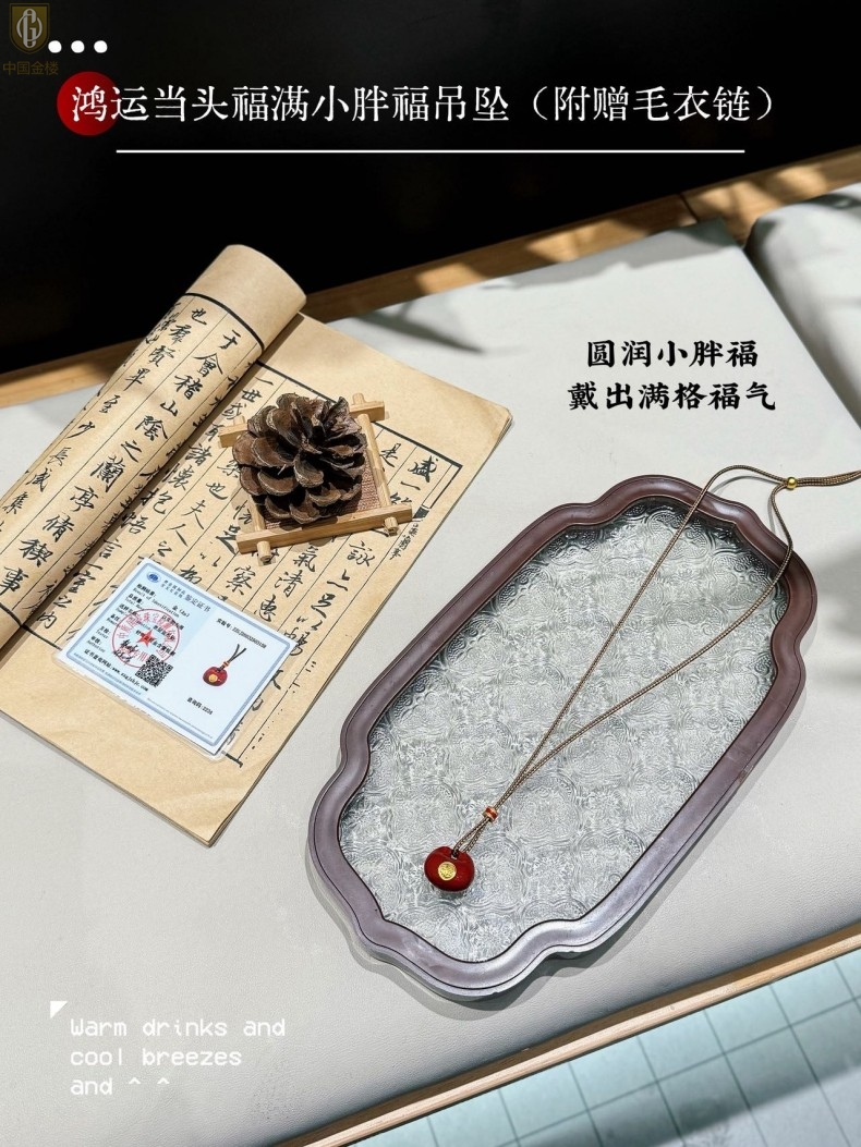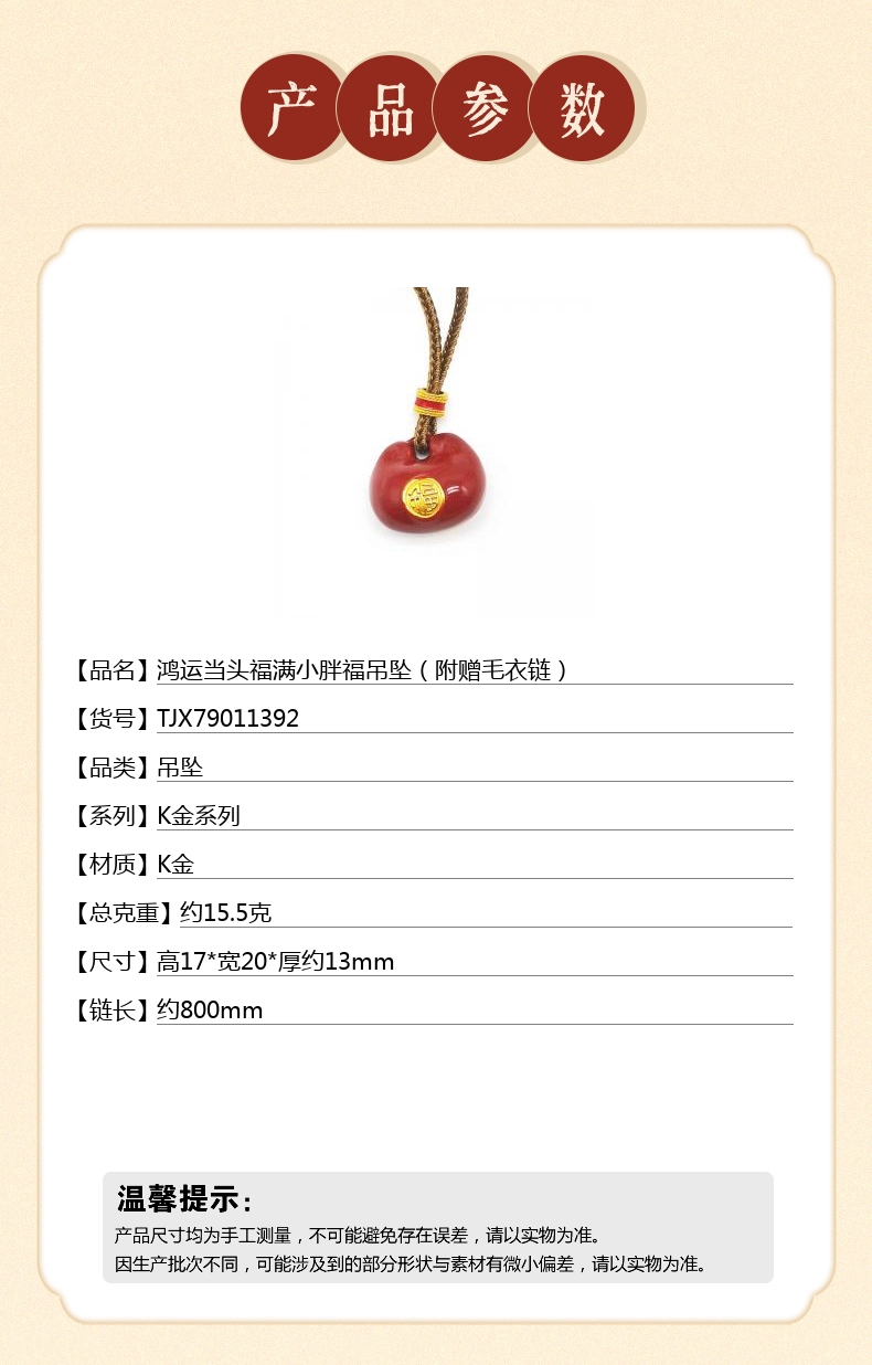 【品名】中国金楼鸿运当头福满小胖福吊坠(附赠毛衣链)