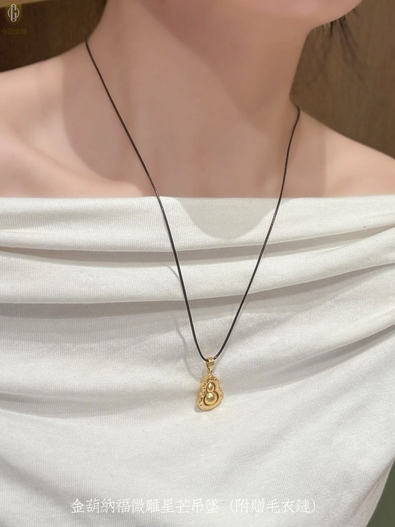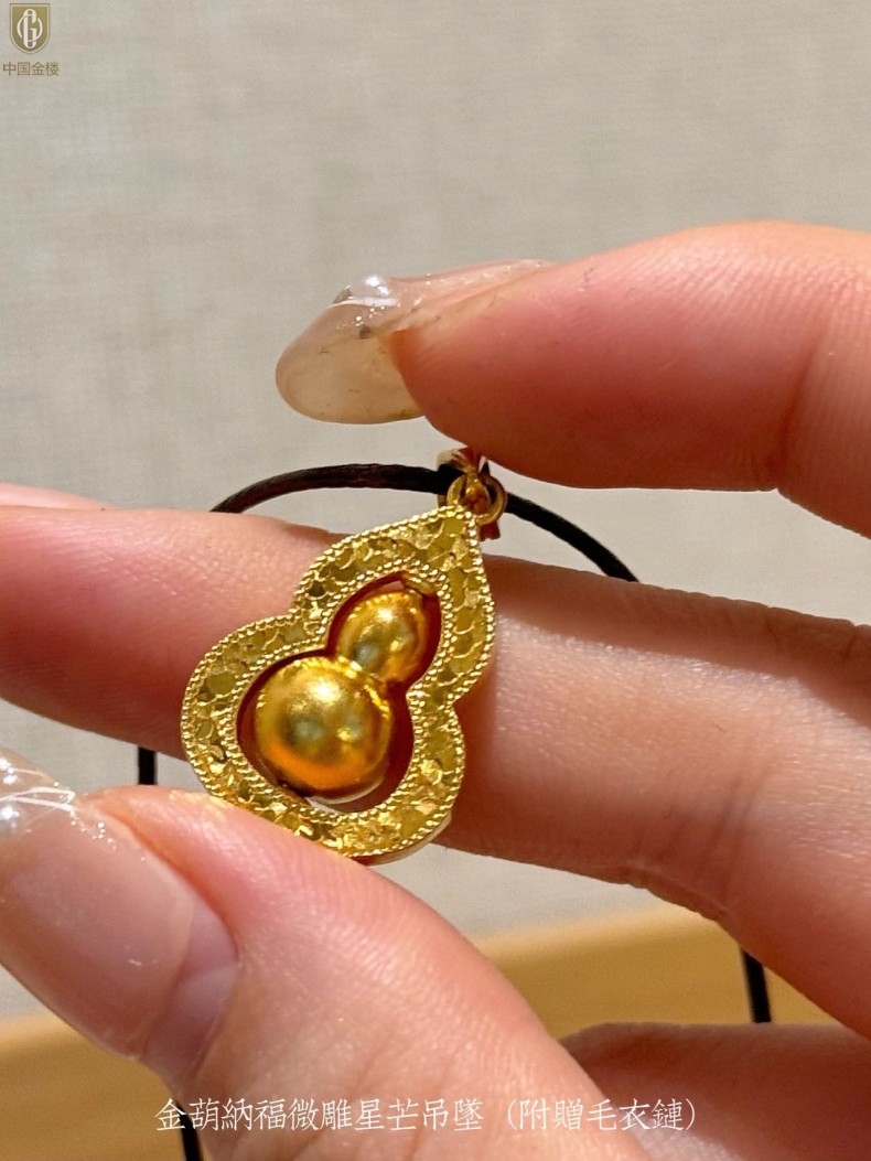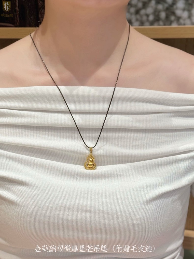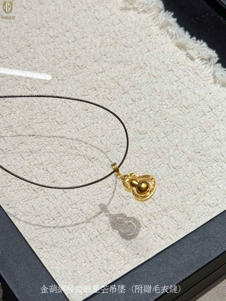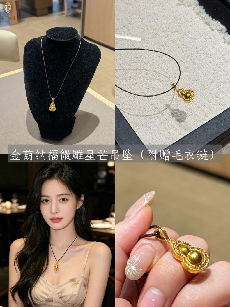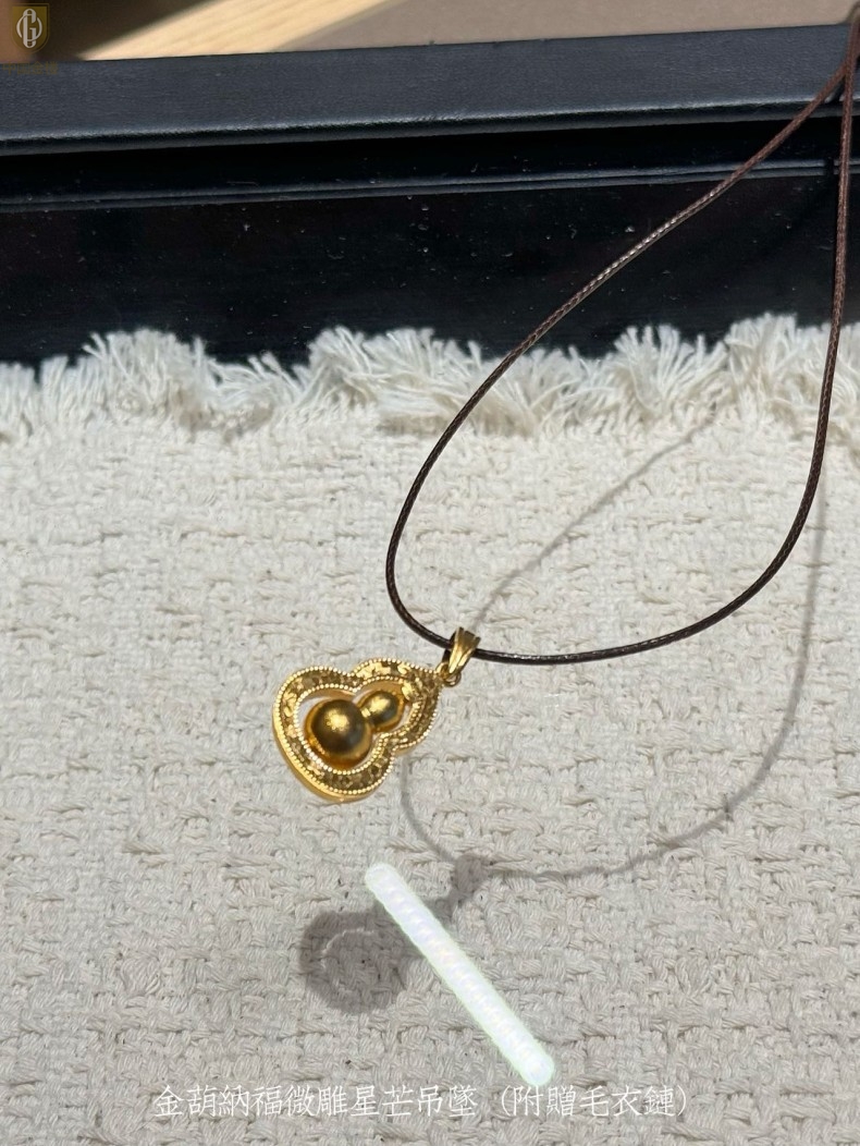 【品名】中国金楼金葫纳福微雕星芒吊坠(附赠毛衣链)