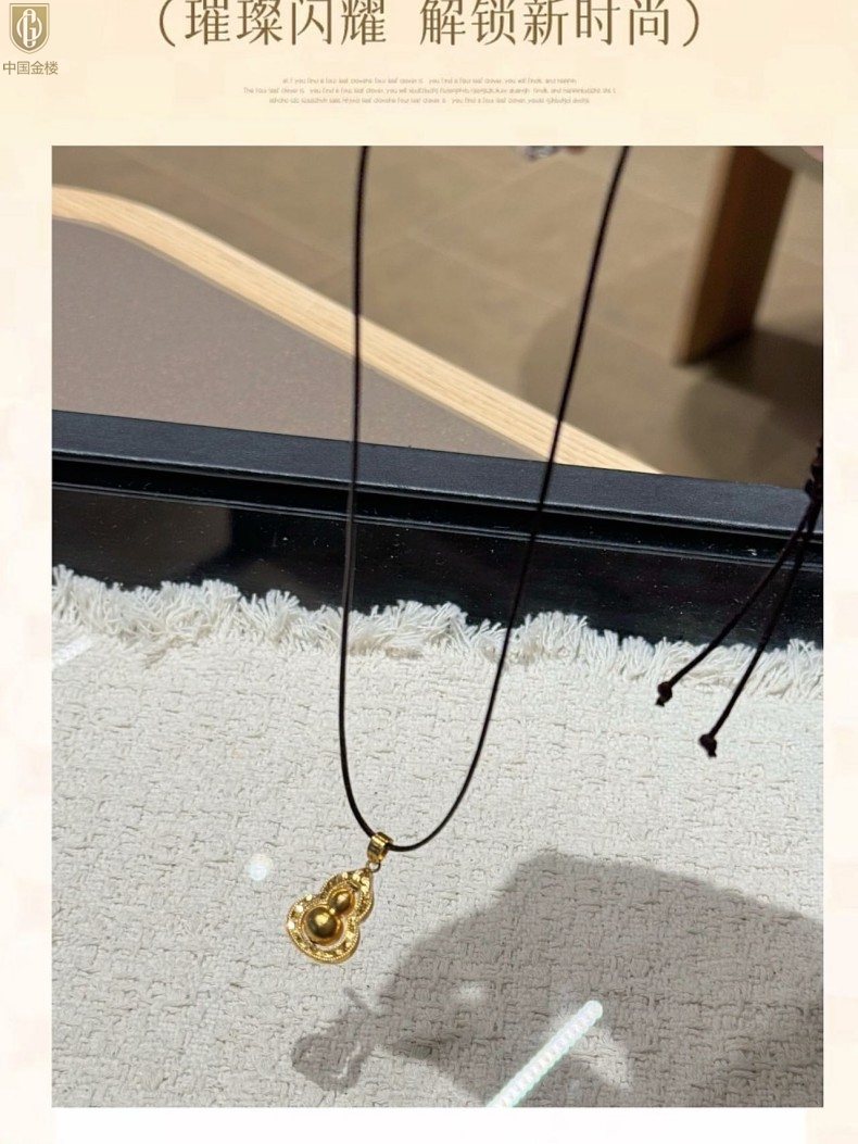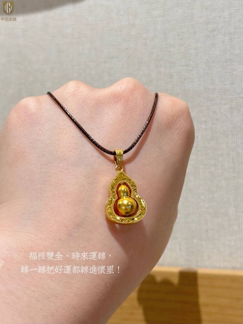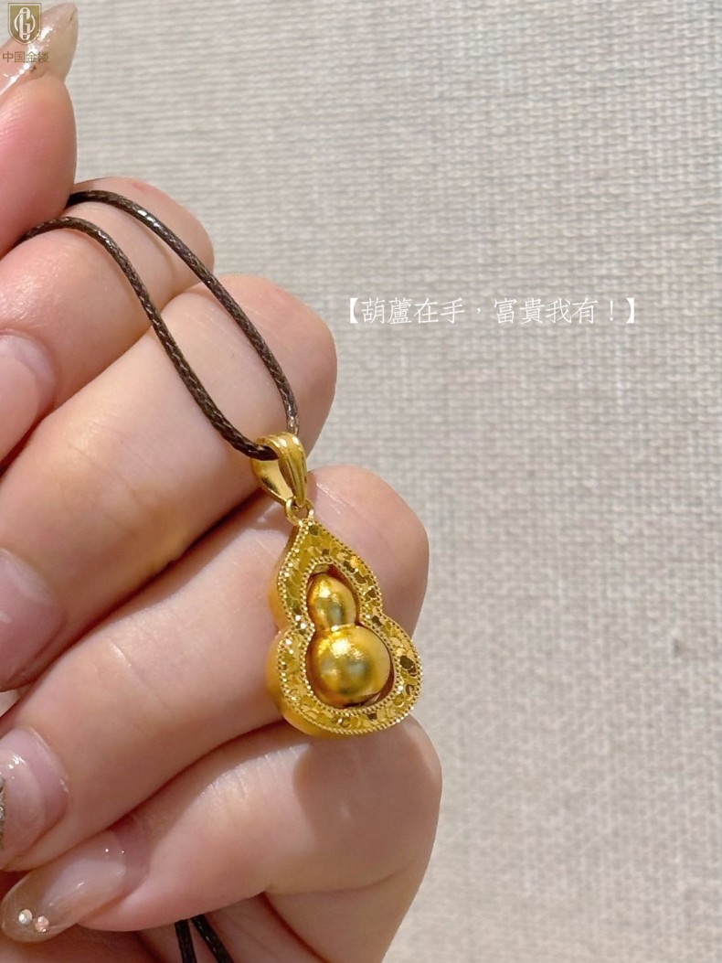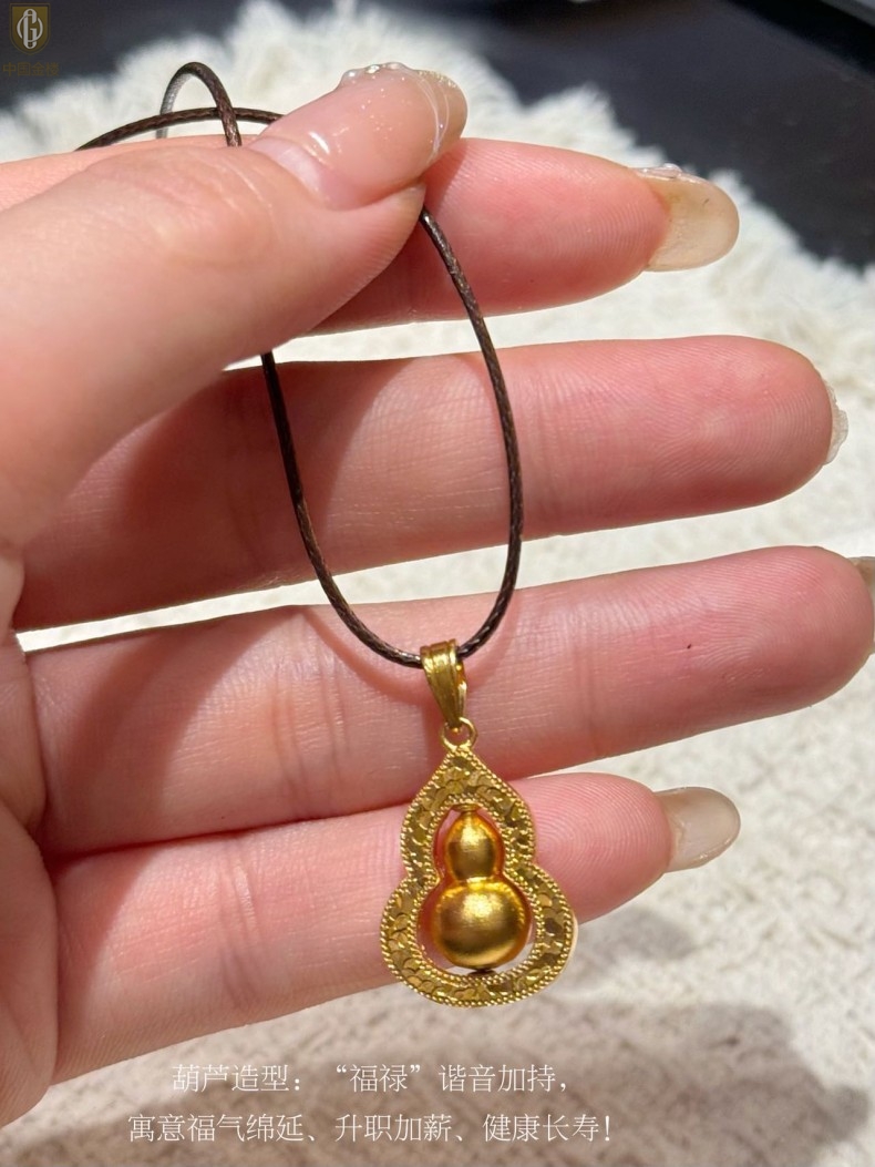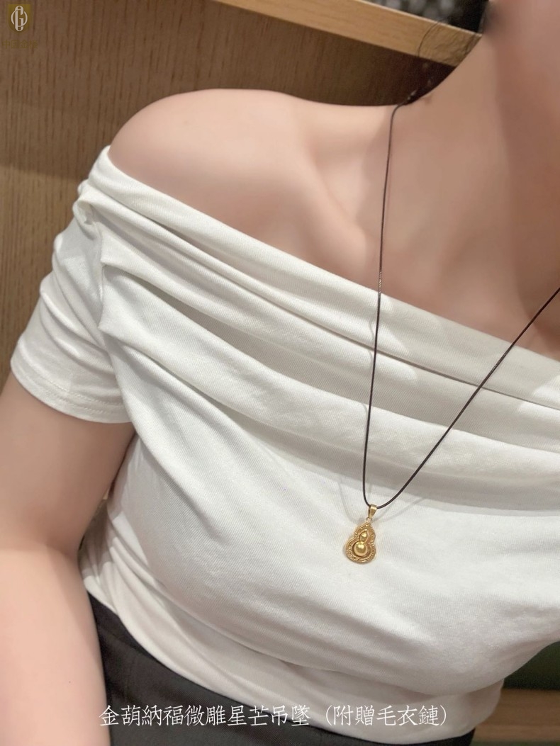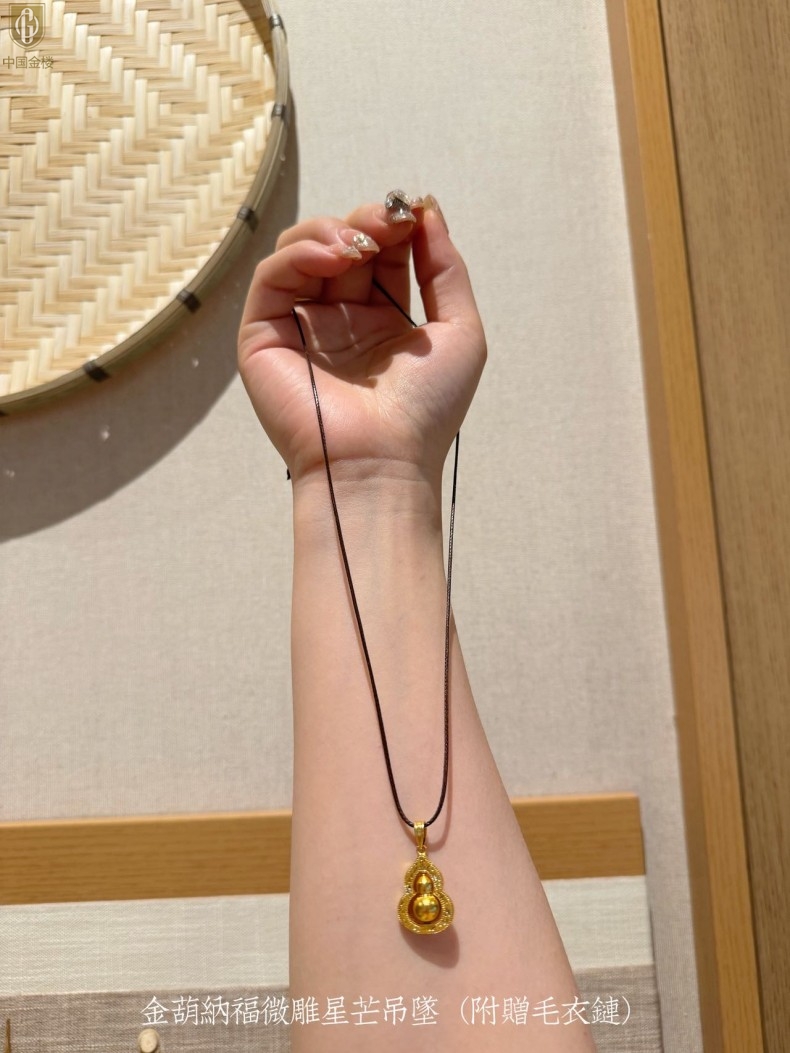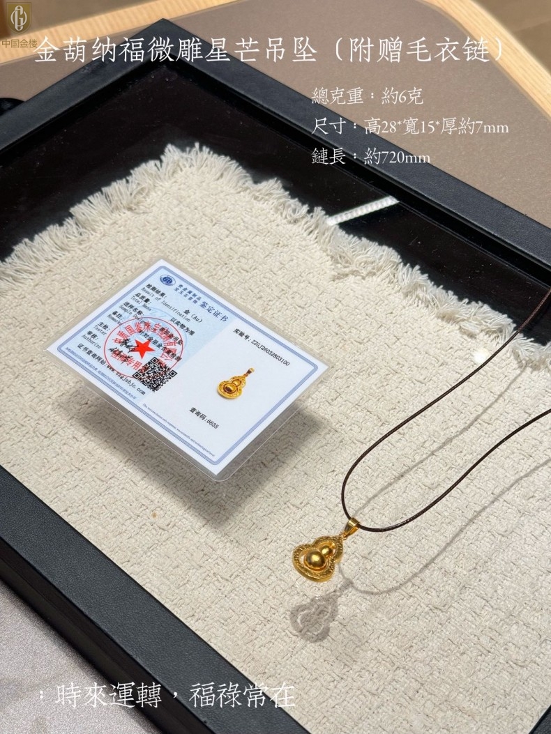【品名】中国金楼金葫纳福微雕星芒吊坠(附赠毛衣链)