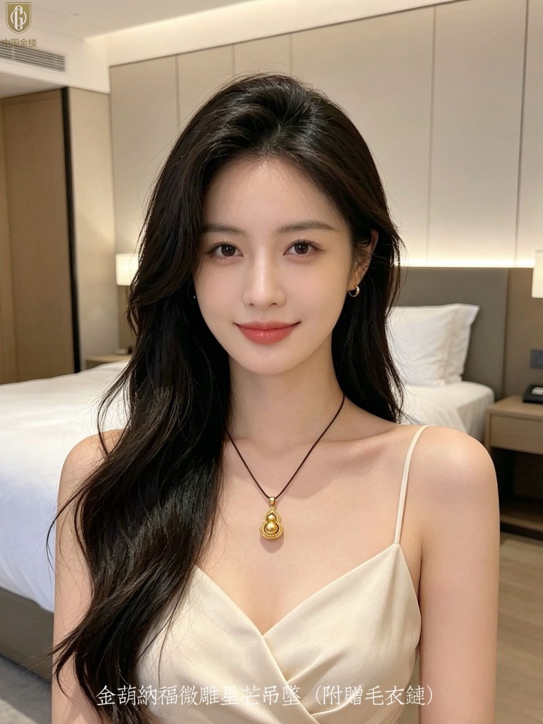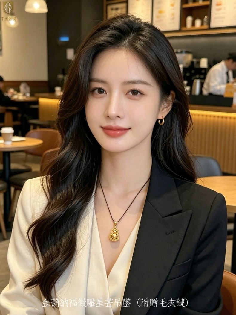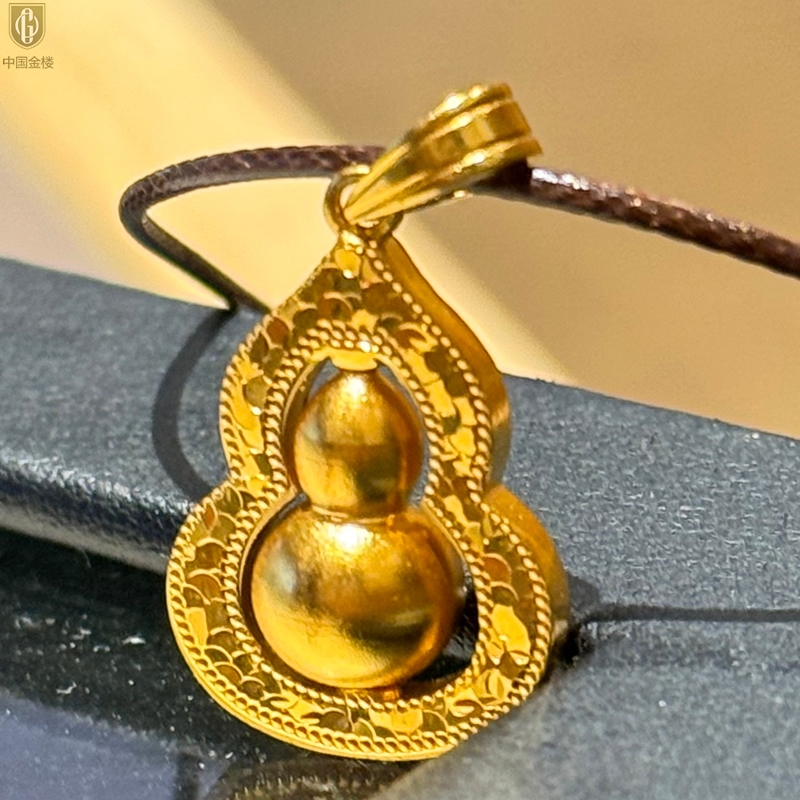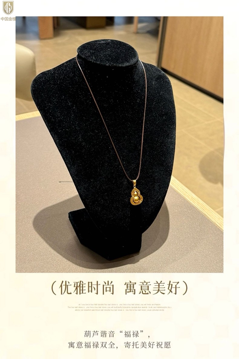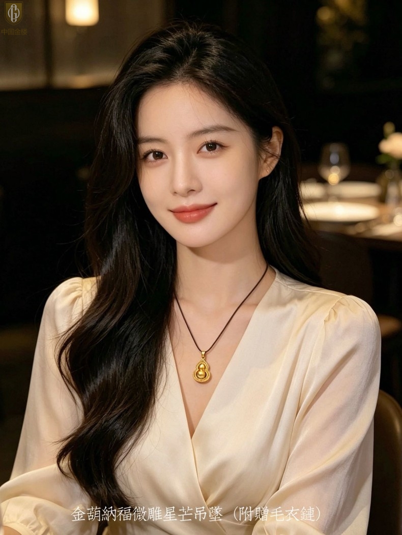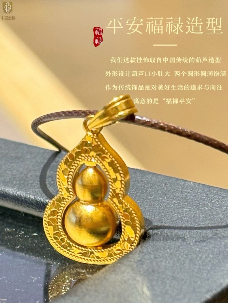 【品名】中国金楼金葫纳福微雕星芒吊坠(附赠毛衣链)