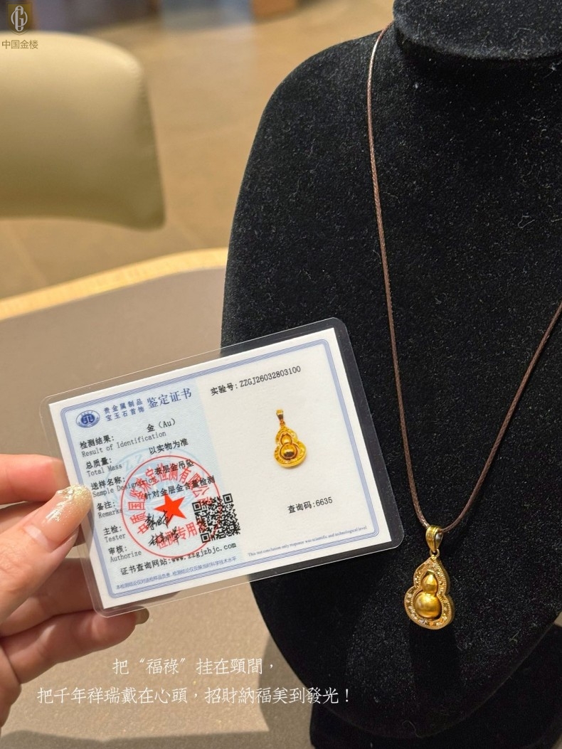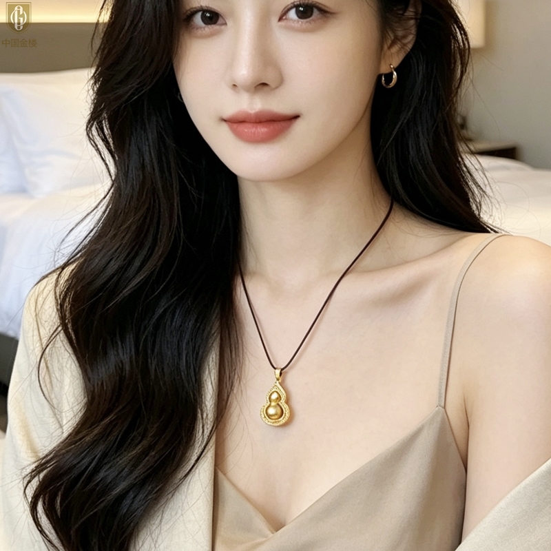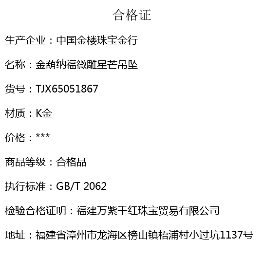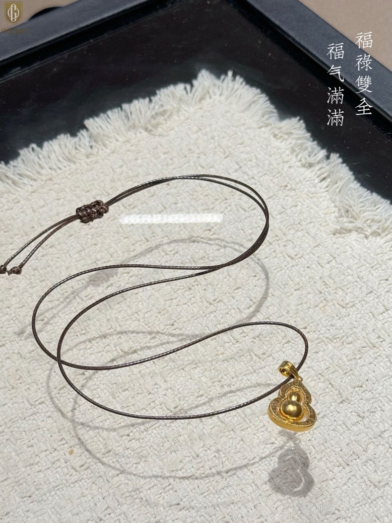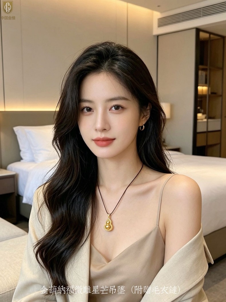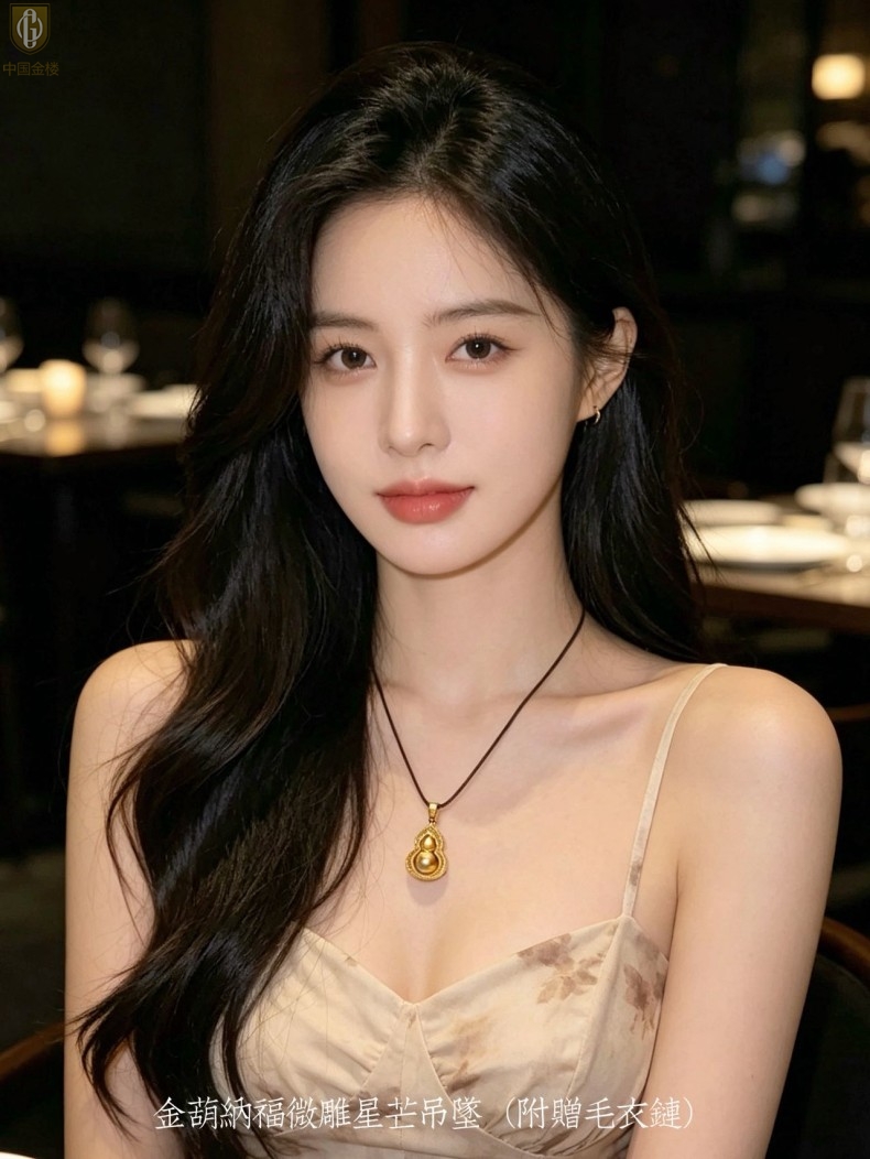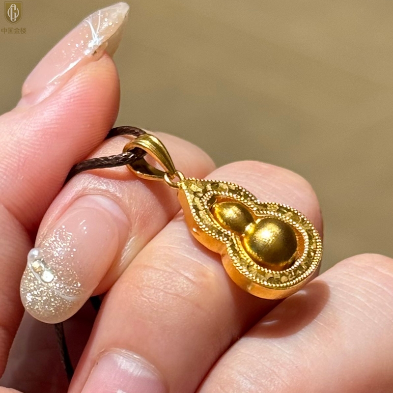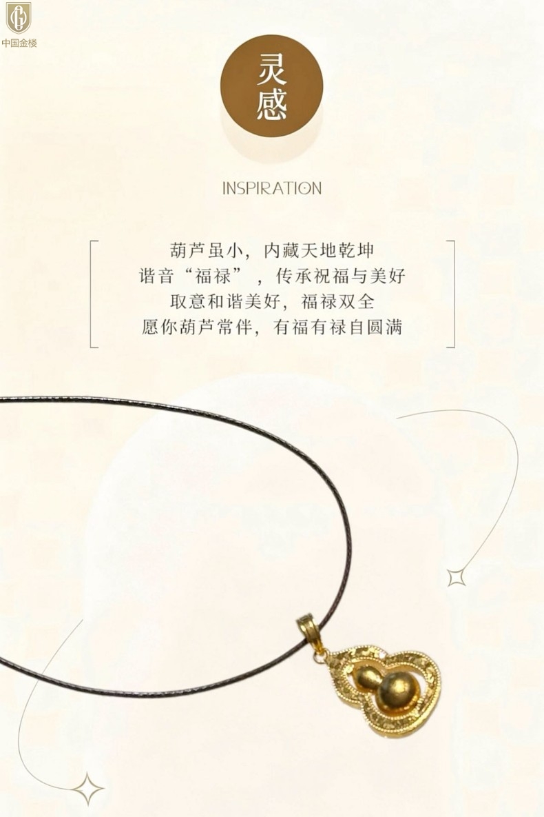 【品名】中国金楼金葫纳福微雕星芒吊坠(附赠毛衣链)